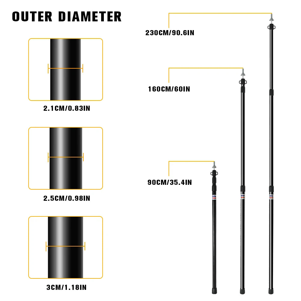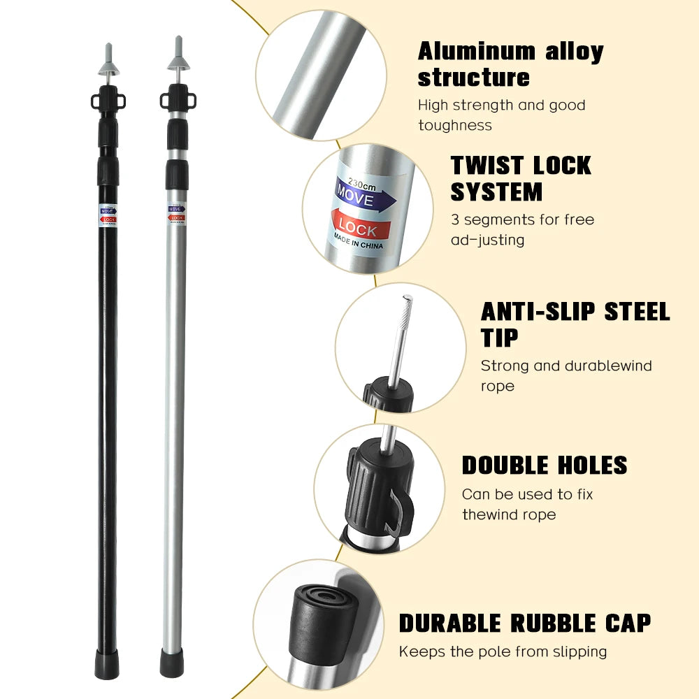 2.3M Adjustable Tent Support Rod Beach Shelter Tarp Awning Pole Aluminum Alloy Tent Pole Accessories For Camping Tent