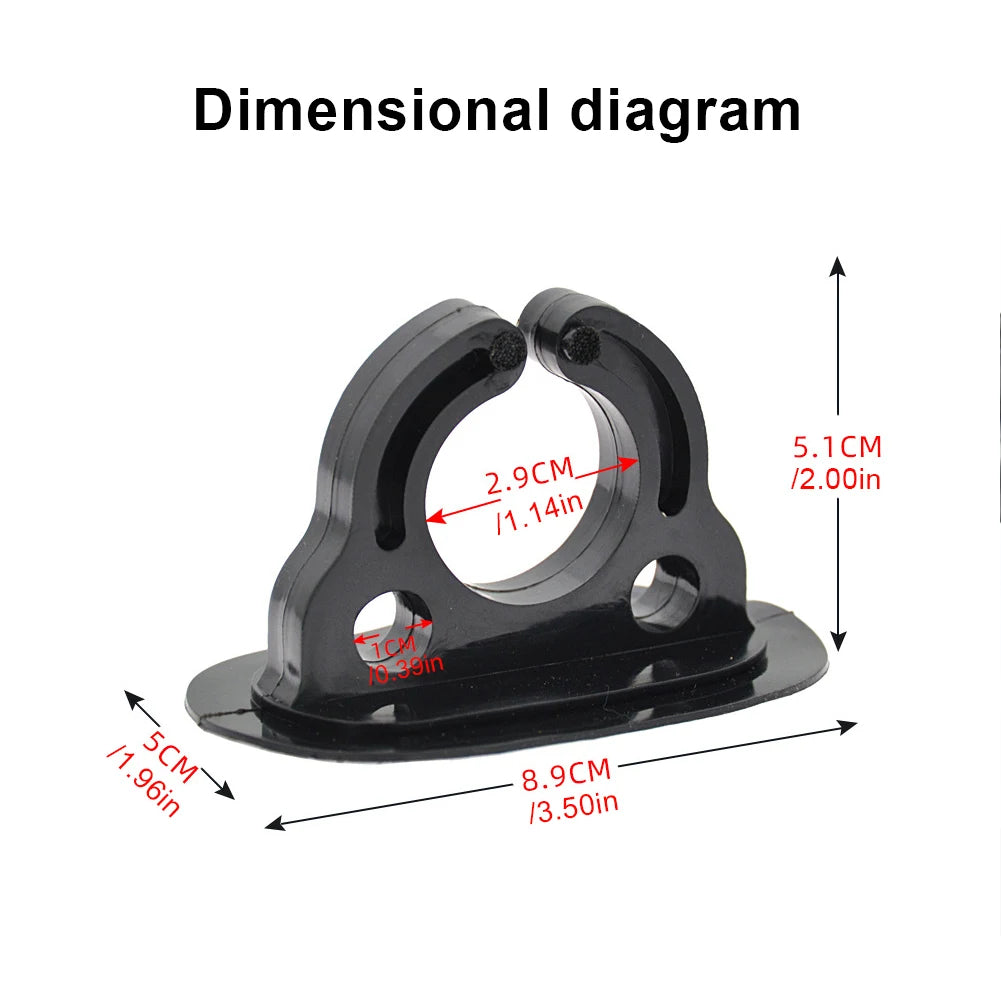 1.Convenient Storage: When the paddle is not in use, it can be securely fixed to the kayak paddle clips on the outer side of the boat, preventing any chance of losing it. This feature ensures that the paddle is always within reach when needed, eliminating the worry of misplacement. Specification: Origin: Mainland China Material: PVC Color: Black Base: 5cm/1.97in * 8.9cm/3.50in Weight: 50g/each