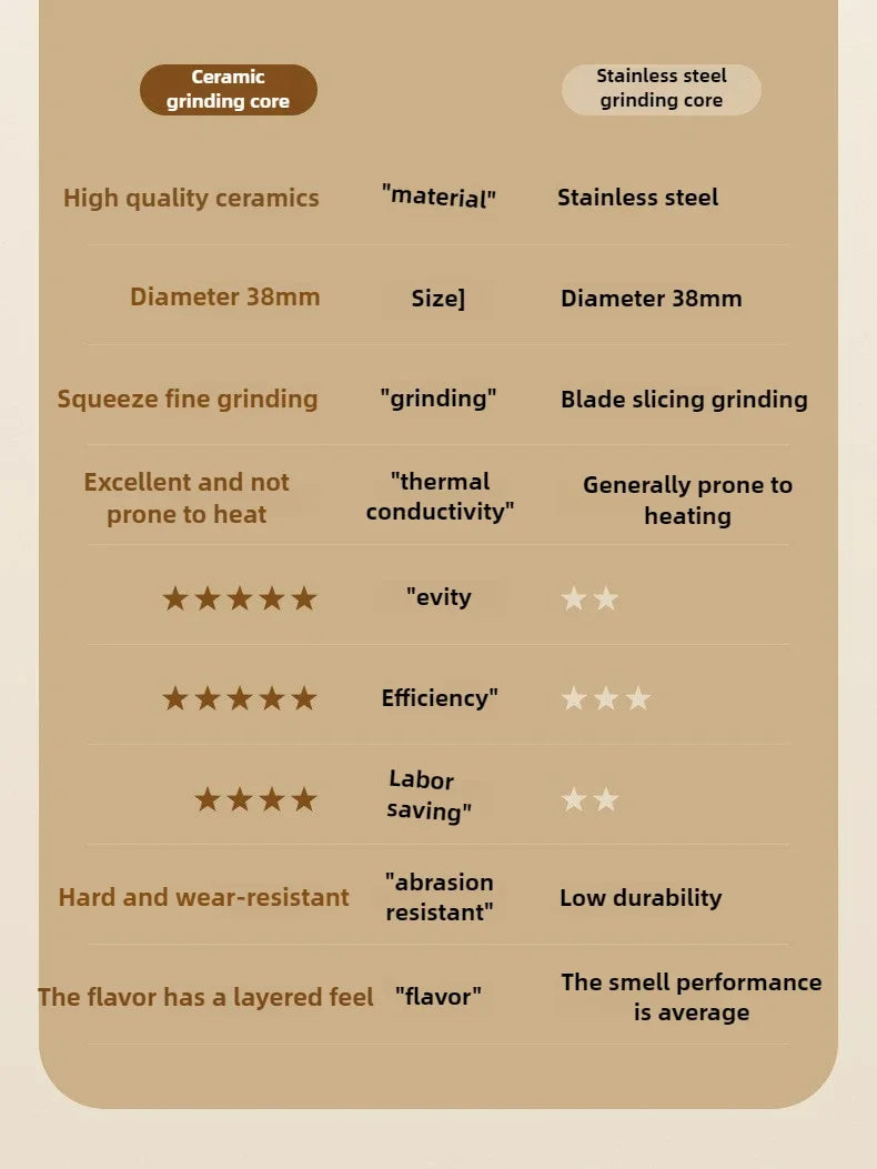 Main materials: ABS+PA+PS+304 stainless steel+ceramic grinding core
