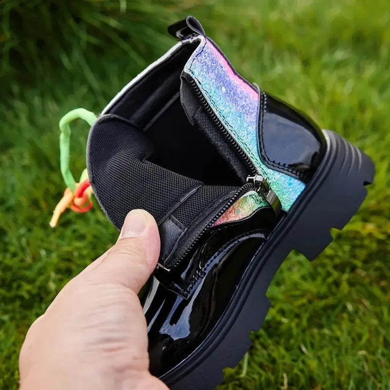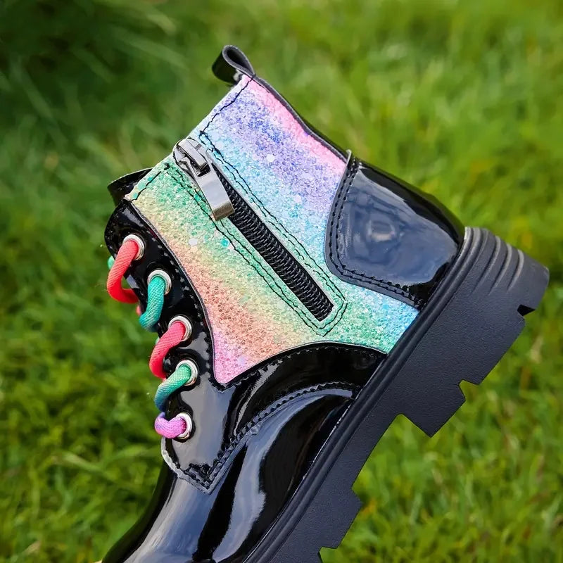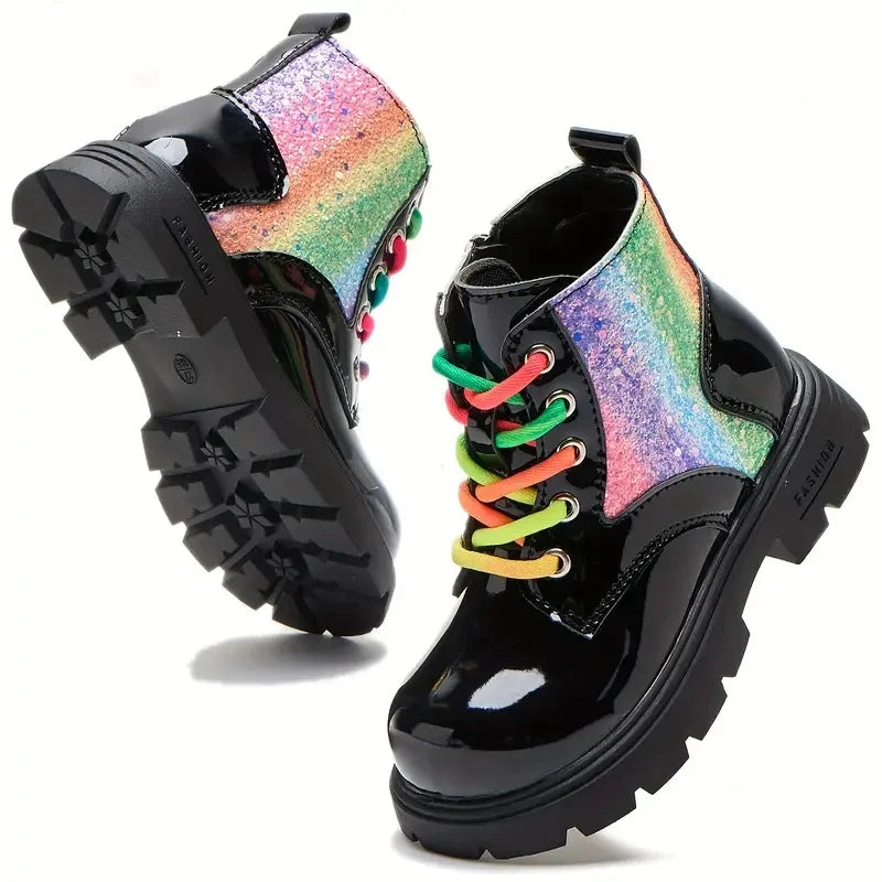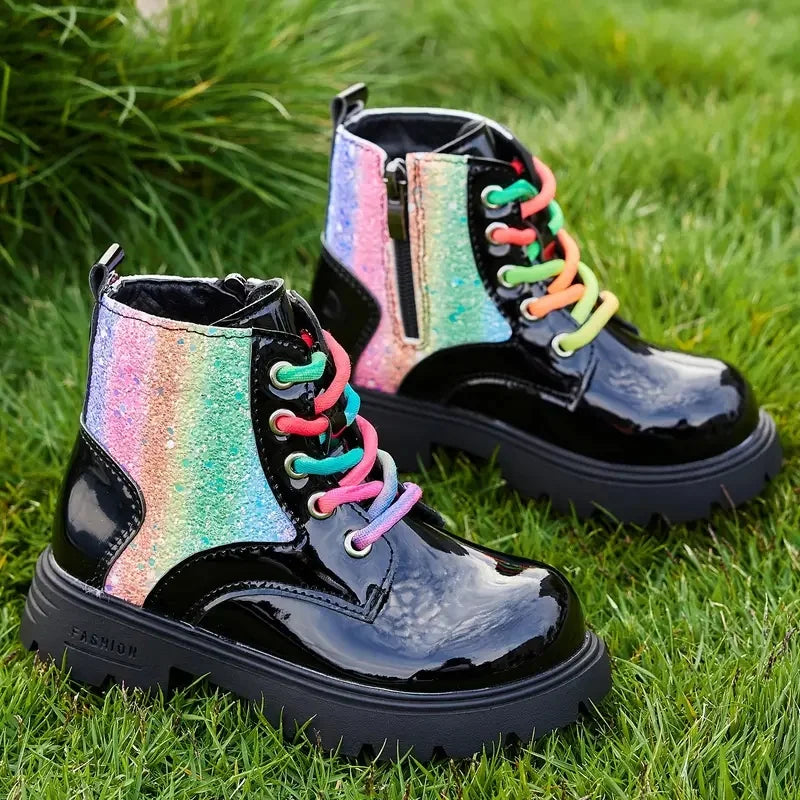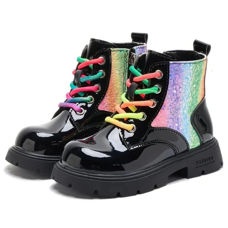 Autumn Winter High-Top Lace-Up Kids Martin Boots for Girls Boys Fashion Leather Boots Soft Bottom Non-slip Children Hiking Shoes