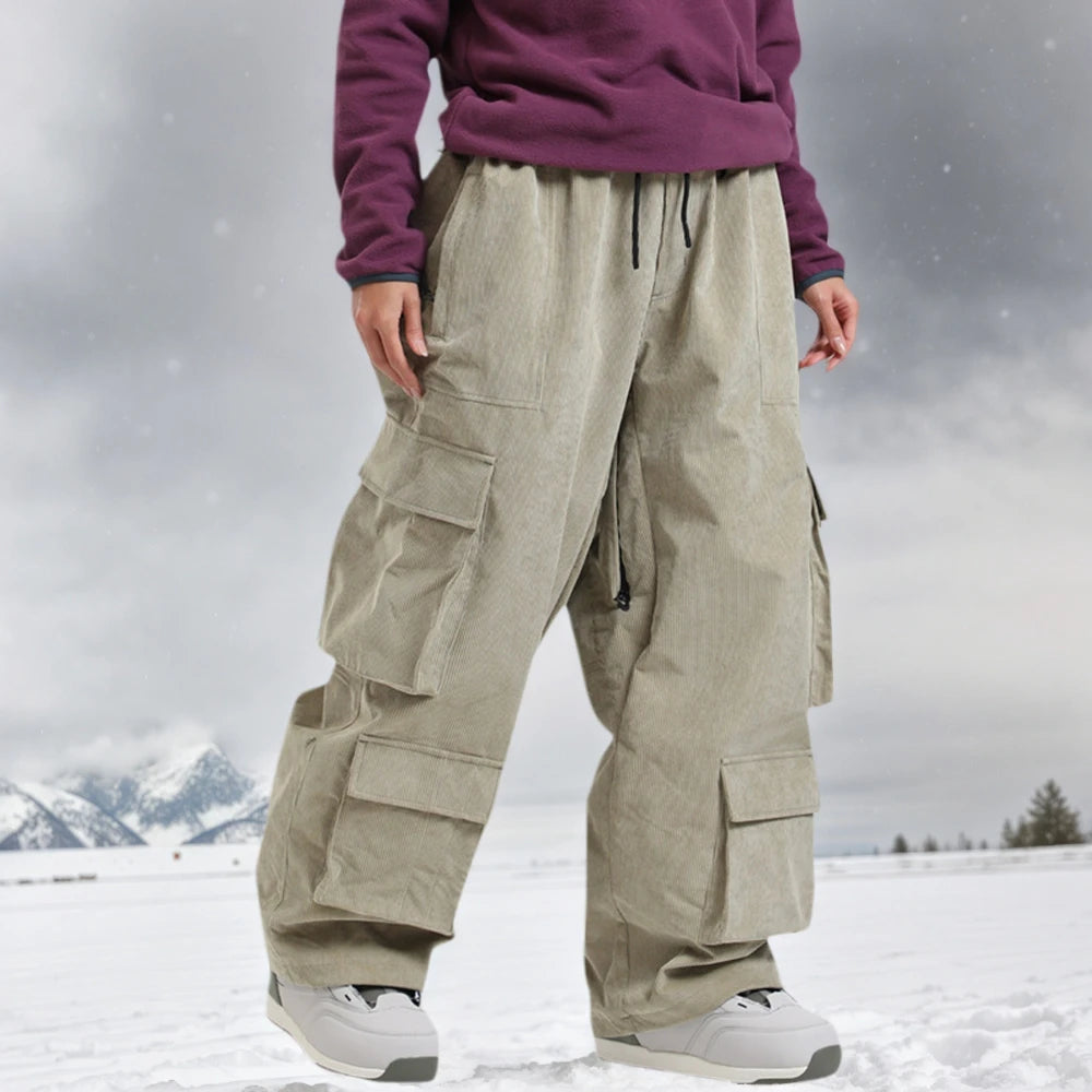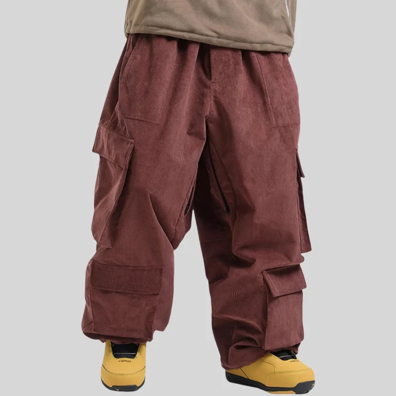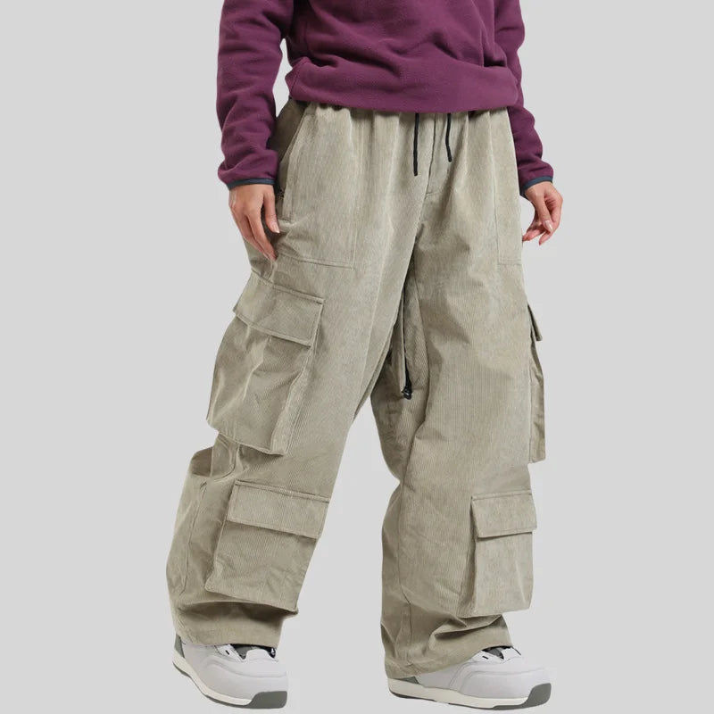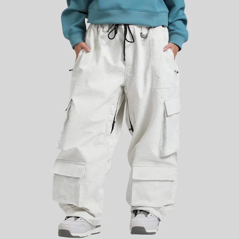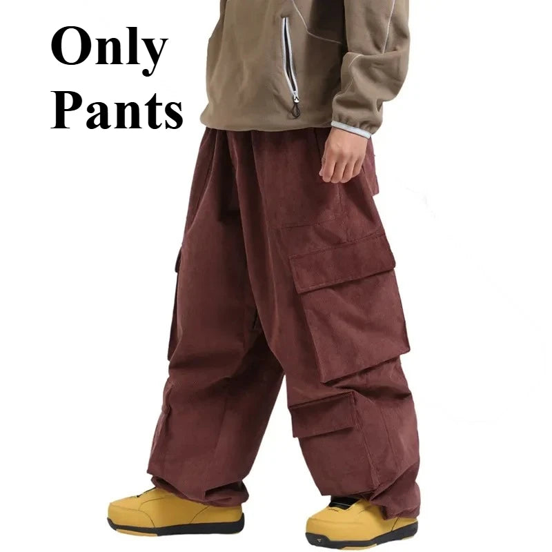 冬季新款滑雪裤女多口袋工装防风防水单板宽松灯芯绒滑雪裤子男士