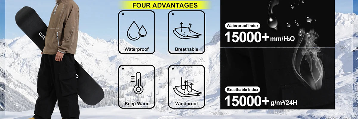 Stay warm, stylish, and protected on the slopes with the Dollplus GSOU SNOW Baggy Snowboard Pants. Designed with a waterproof coefficient of 20,000 and breathable polyester fabric, these ski trousers keep you dry and comfortable during skiing, snowboarding, and other outdoor winter activities.