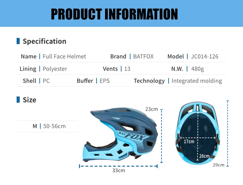 BATFOX Kids Full Face bike helmet Detachable Downhill Children Cycling Motorcycle Skateboard Sports Racing Racing Bicycle helmet