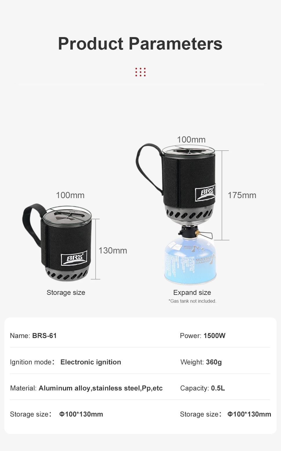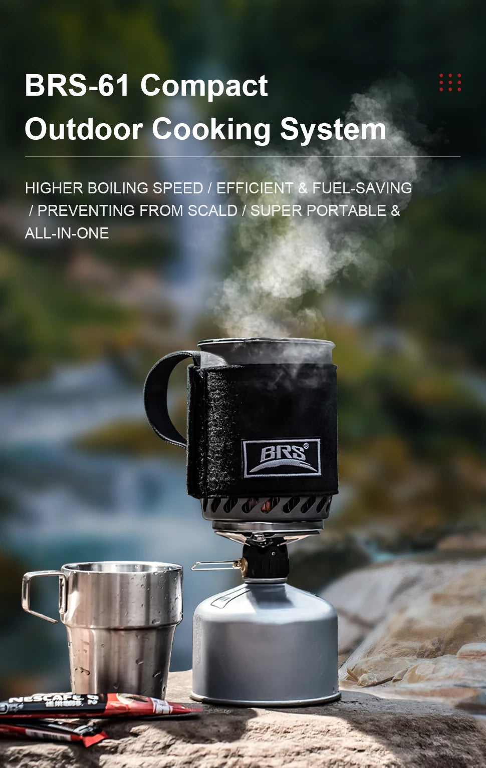 BRS 61 Camping Integrated Heat Collecting Pot Burner Ultralight Portable Hiking Furnace Outdoor Cooking Backpacking Stove System
