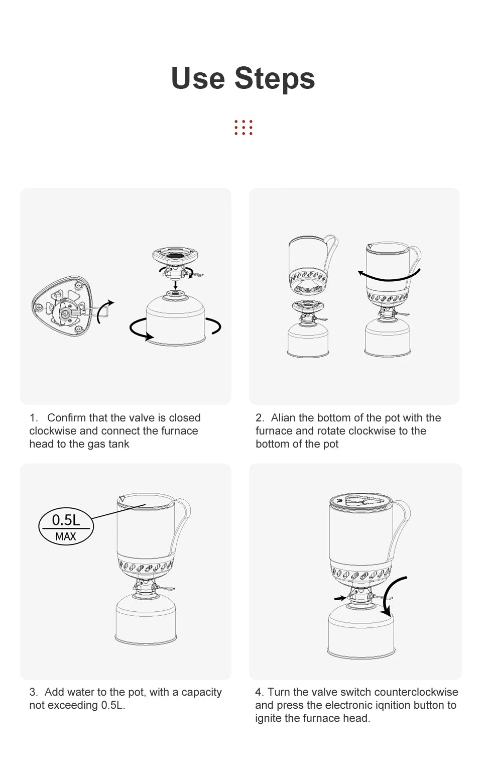 5.Multi-Purpose and Versatile : Enjoy outdoor cooking with free adjustment of firepower using our Jet Boiler Camping Stove Kit; perfect for meeting your different culinary needs. Equipped with a regulating valve for even cooking.
