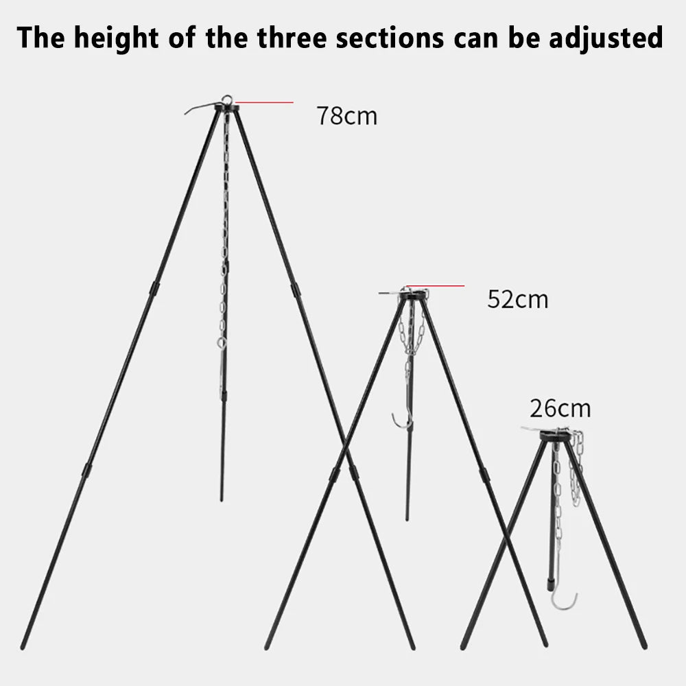Camping Campfire Tripod for Hanging Pot Outdoor Cookware Picnic Cooking Pot Grill Rack Barbecue Support Aluminum Alloy Tripod