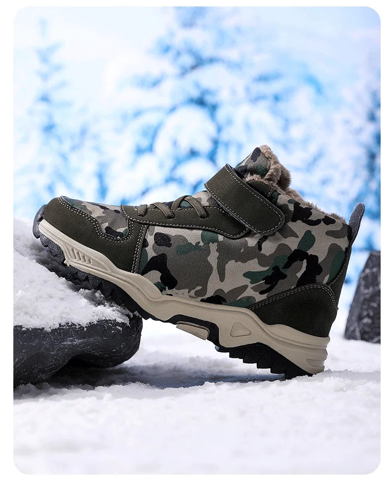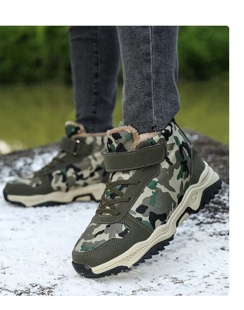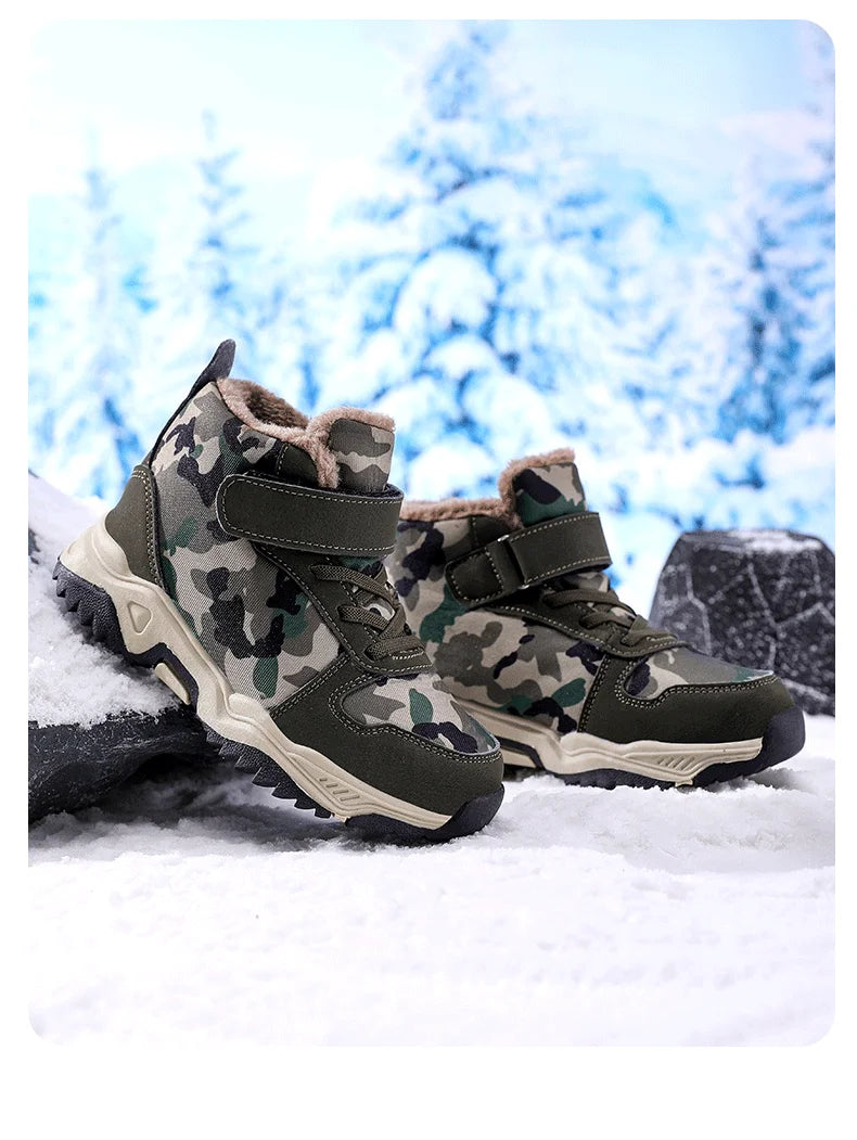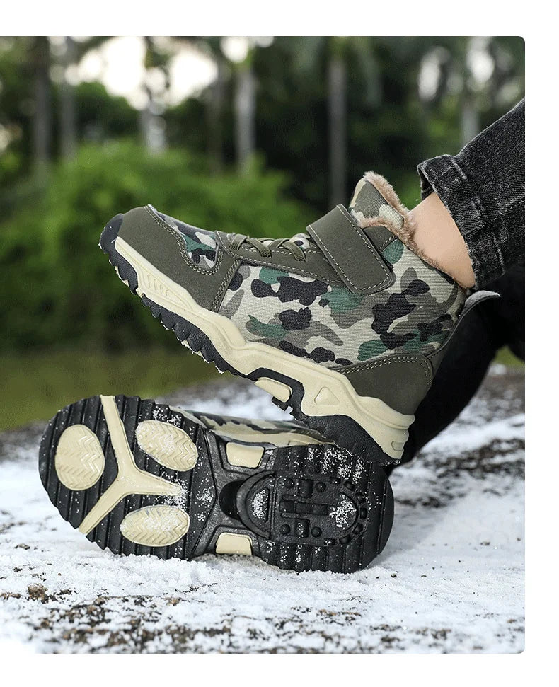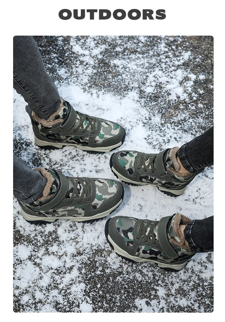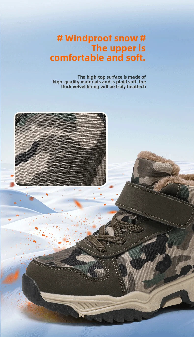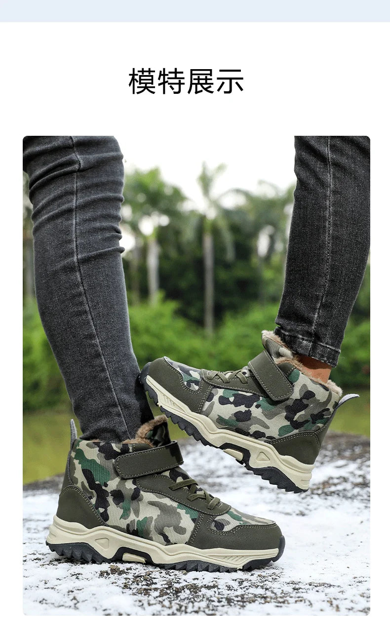 Children Snow Boots Winter Warm Boots Kids Shoes Girls And Boys Camouflage Shoes Non-Slip Rubber Sole Outdoor Hiking Boots