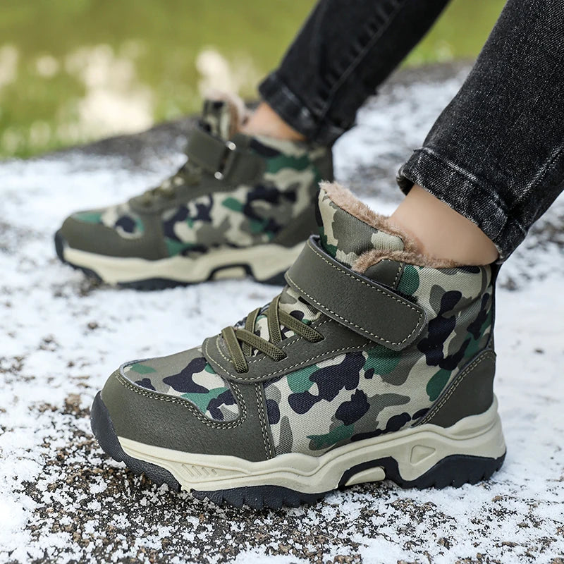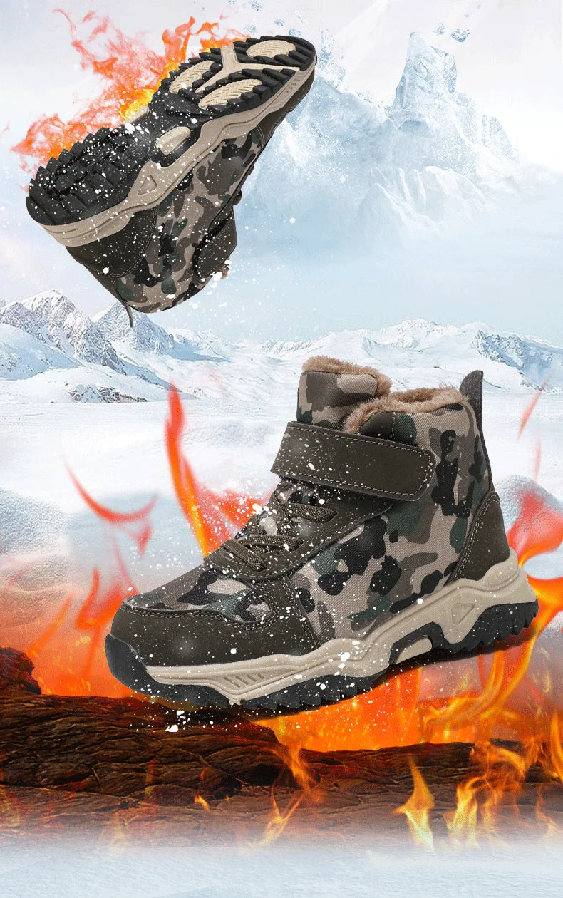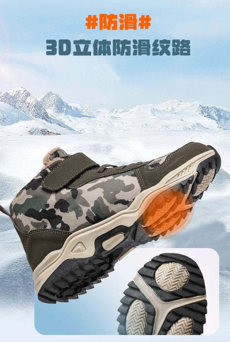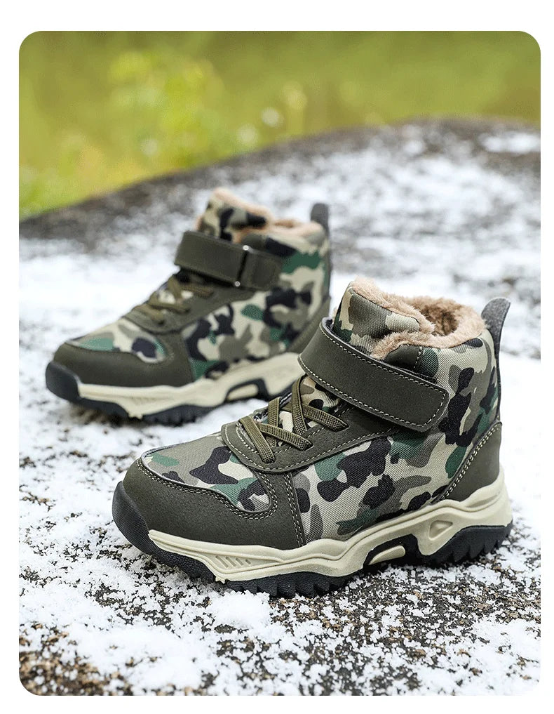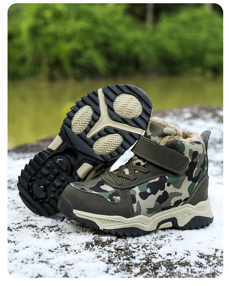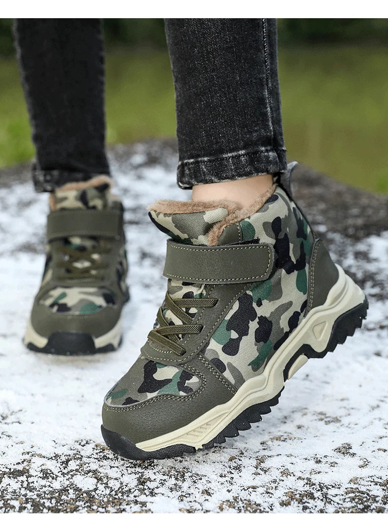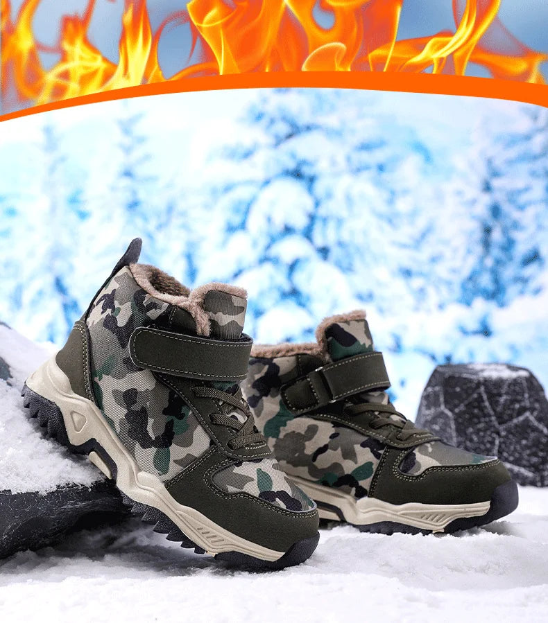 Children Snow Boots Winter Warm Boots Kids Shoes Girls And Boys Camouflage Shoes Non-Slip Rubber Sole Outdoor Hiking Boots