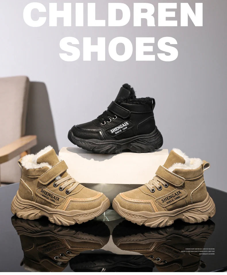 Children's Snow Boots Winter Thikcen Warm Plush Boys Sport Shoes Girls Non-slip Sneakers Student Shoes Kids Outdoor Hiking Boots