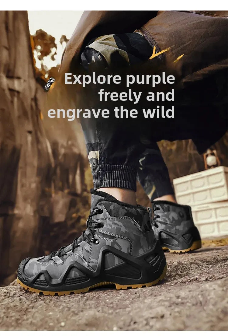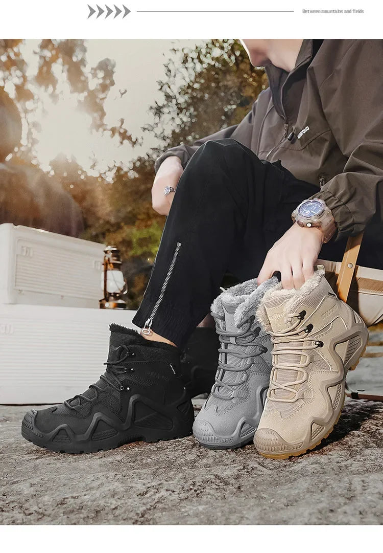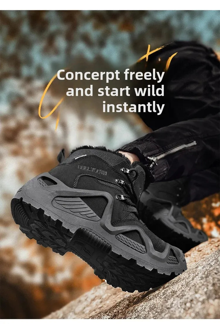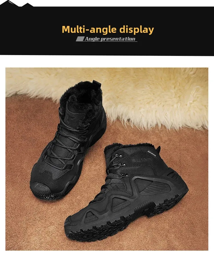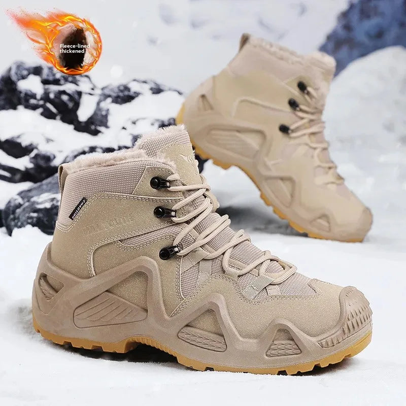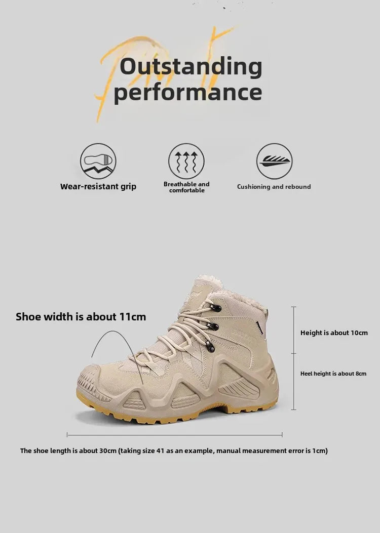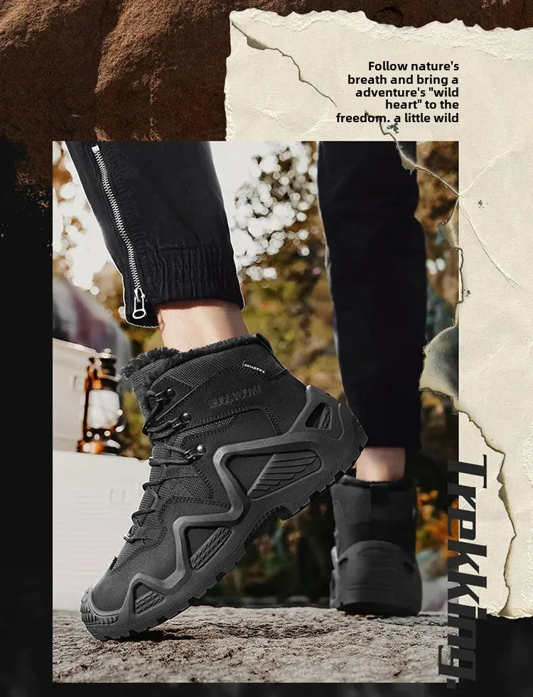 Cross-Border Autumn/Winter High-Top Men's Outdoor Non-Slip Climbing Boots Plus Size Thickened Warm Cotton Shoes Fleece-Lined