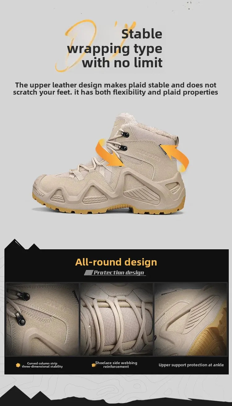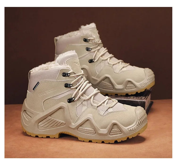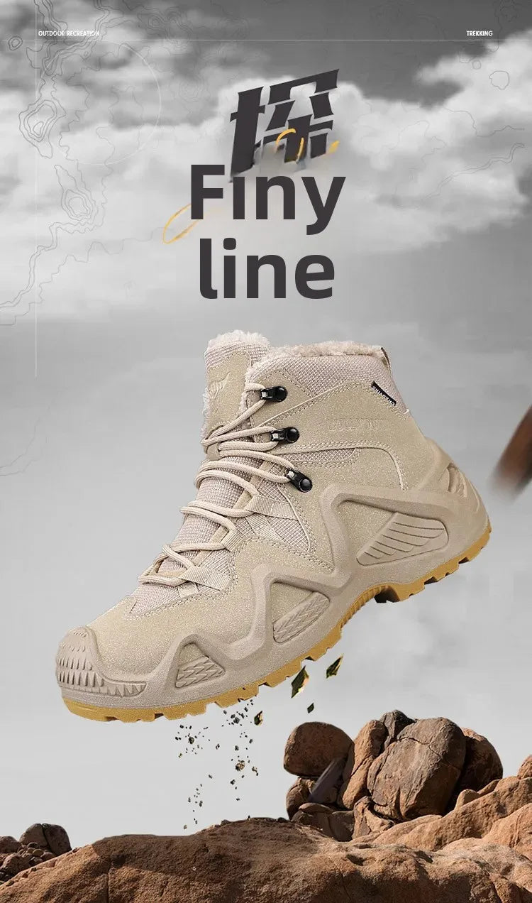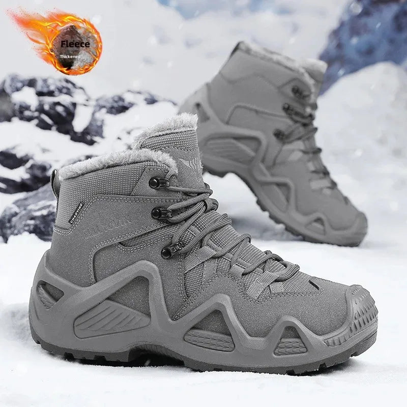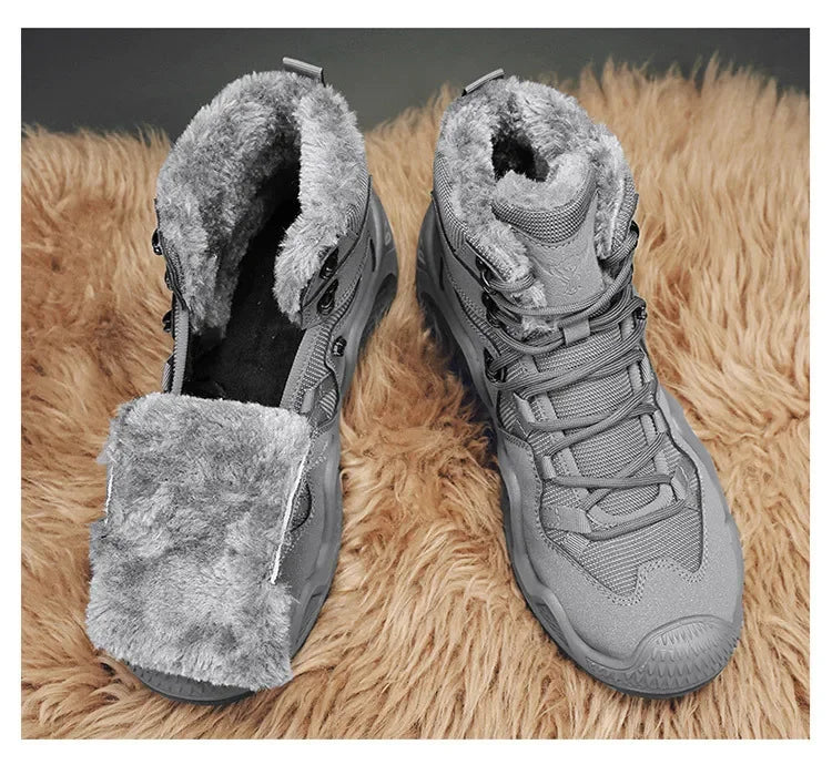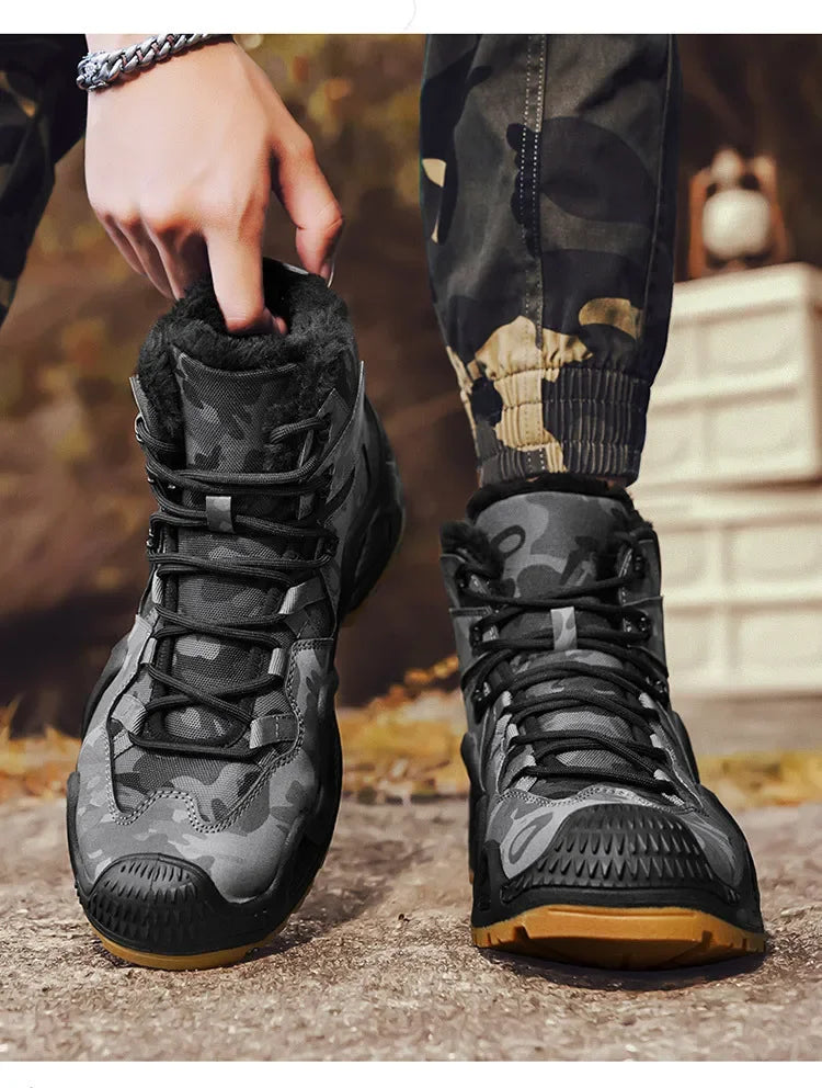 Cross-Border Autumn/Winter High-Top Men's Outdoor Non-Slip Climbing Boots Plus Size Thickened Warm Cotton Shoes Fleece-Lined