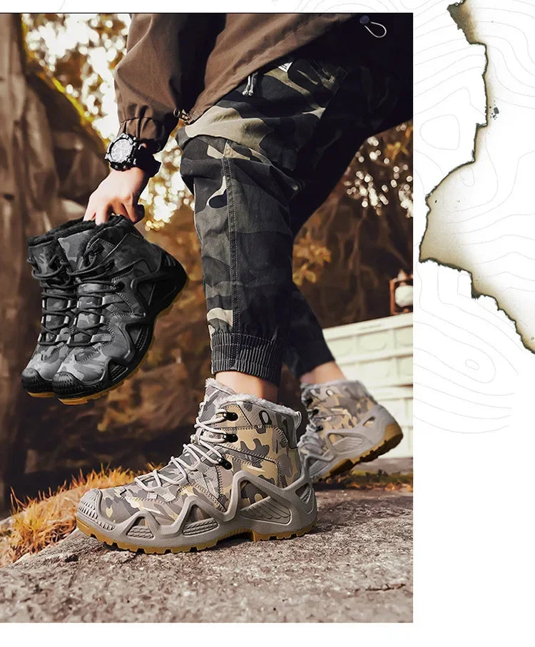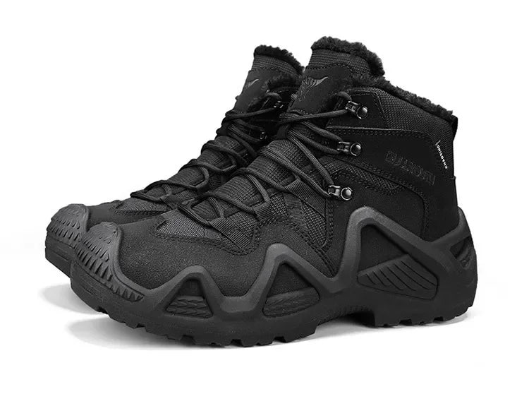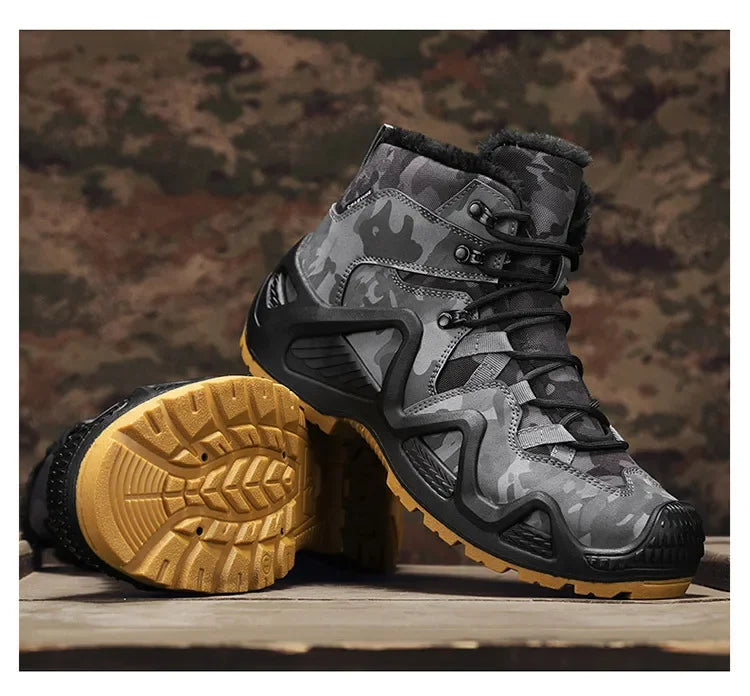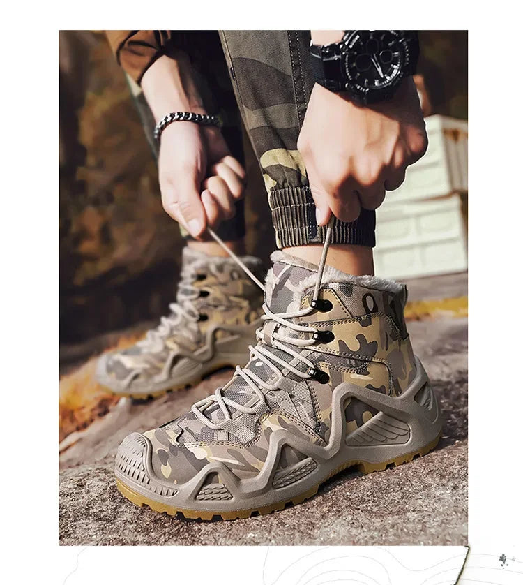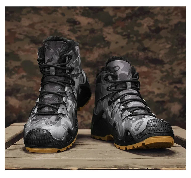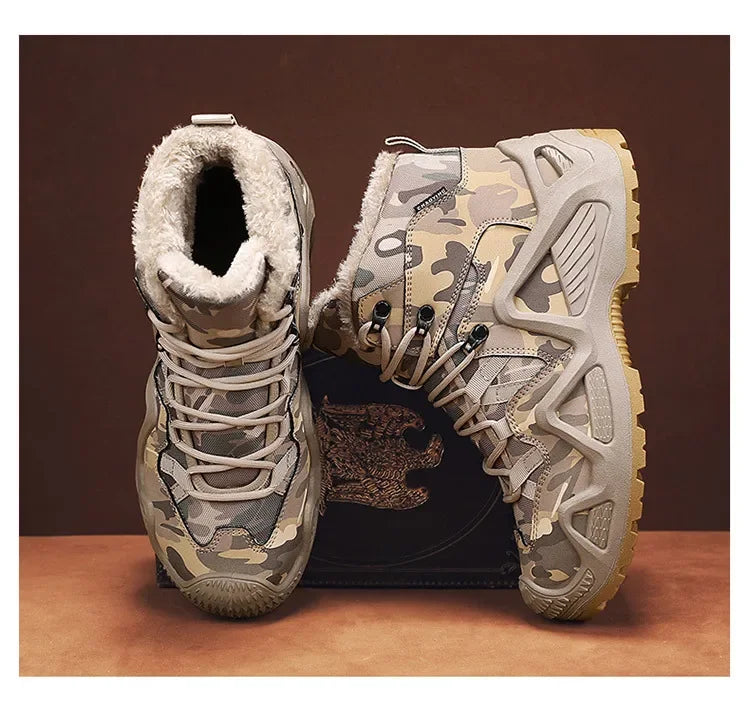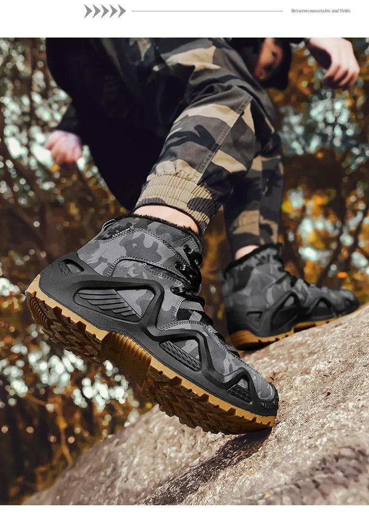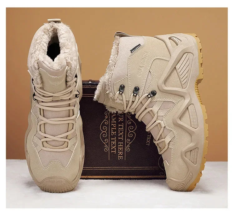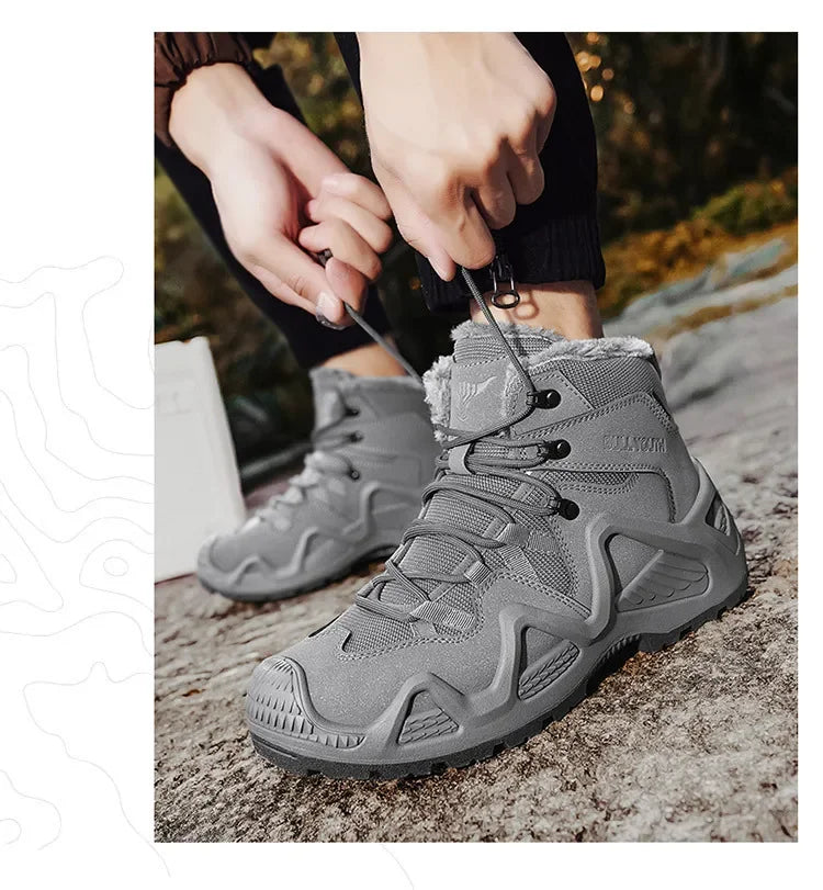 Cross-Border Autumn/Winter High-Top Men's Outdoor Non-Slip Climbing Boots Plus Size Thickened Warm Cotton Shoes Fleece-Lined