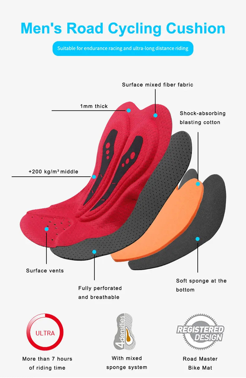 • 5D Gel Pad :The 5D gel pad provides maximum comfort and protection during long rides.