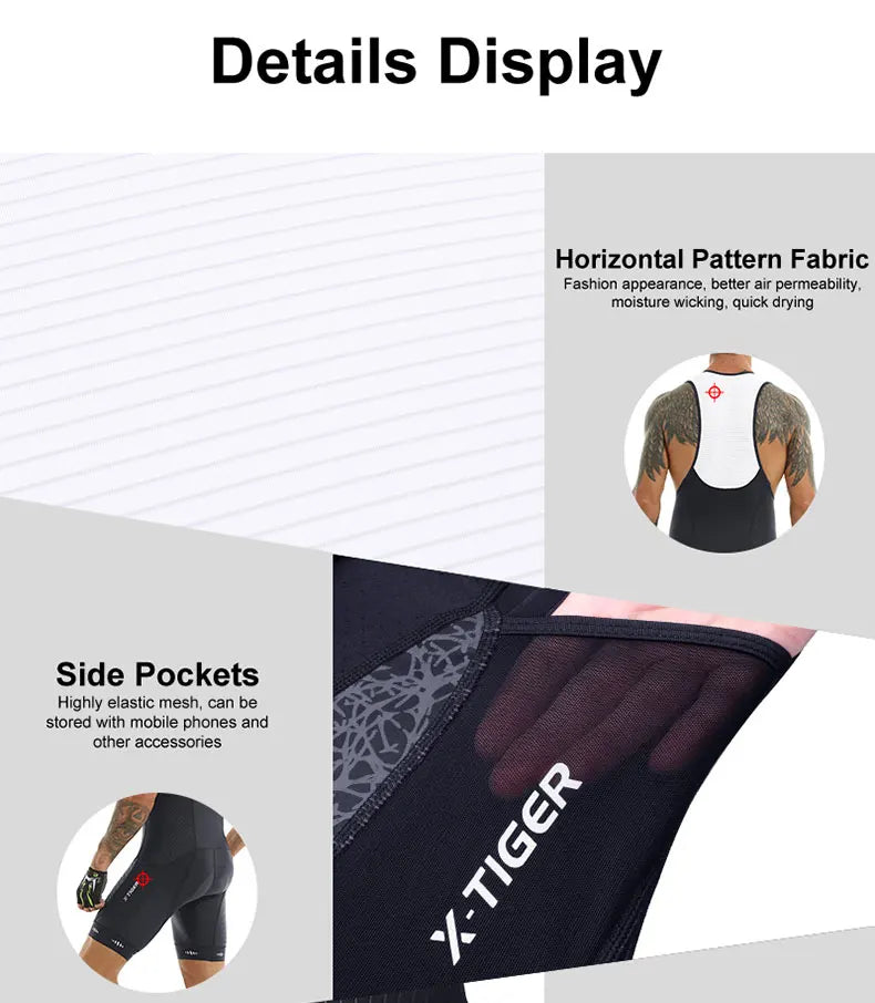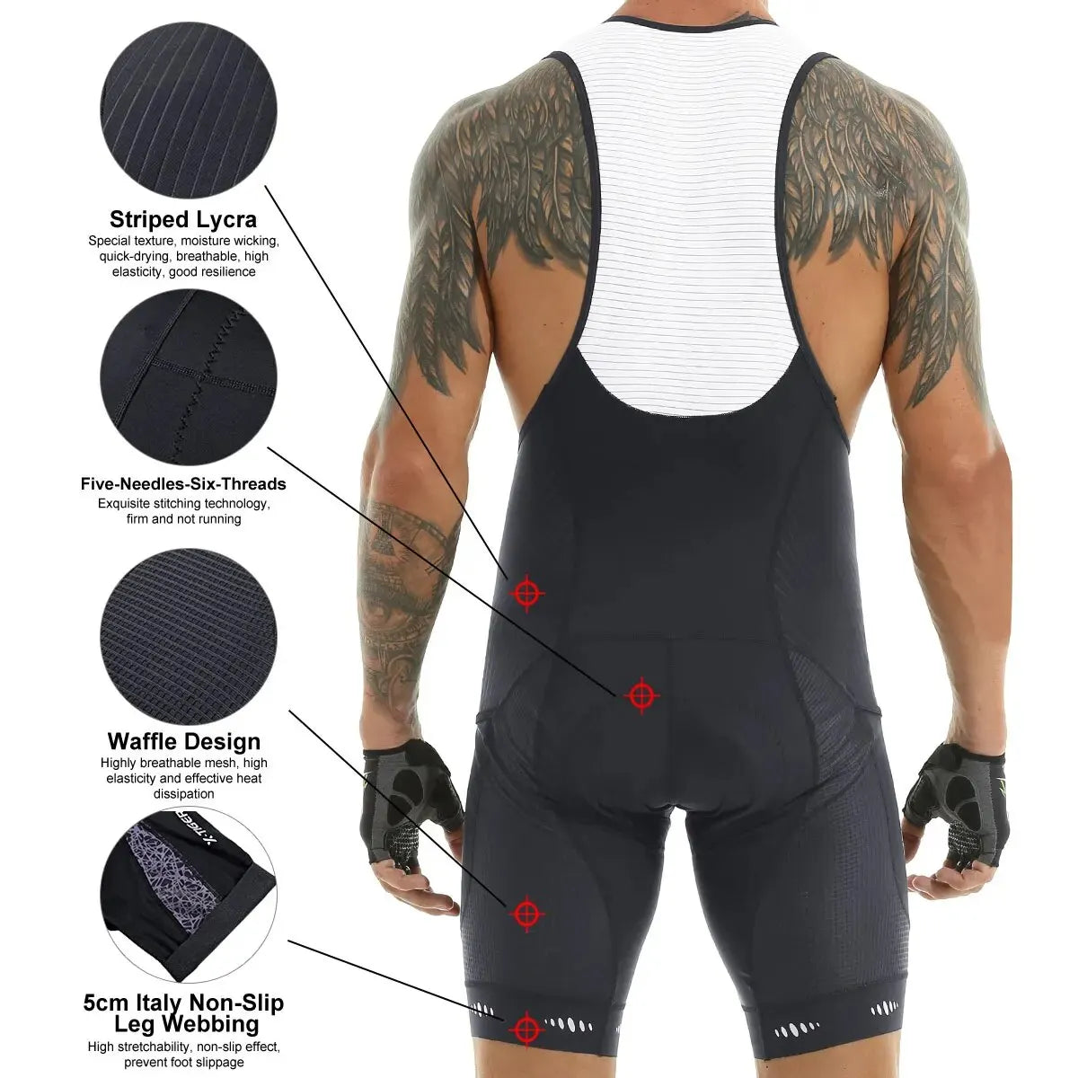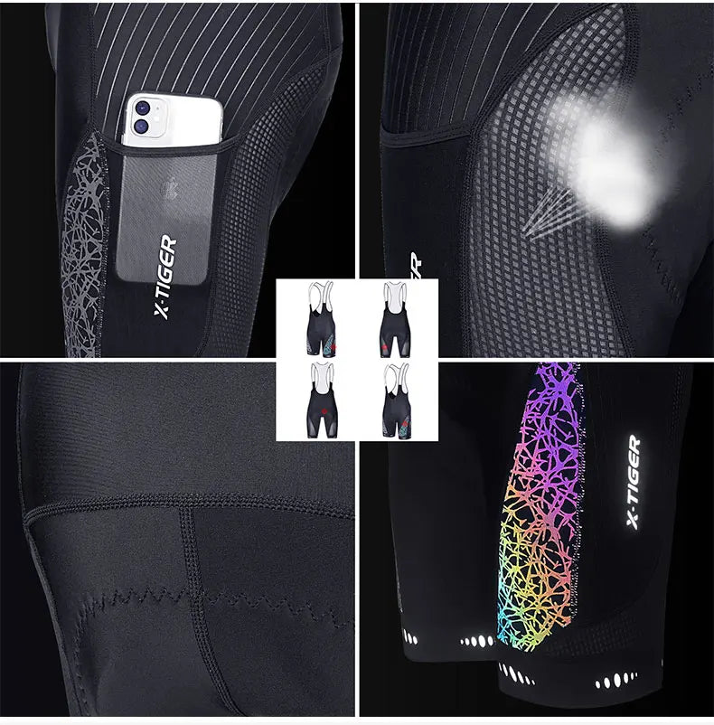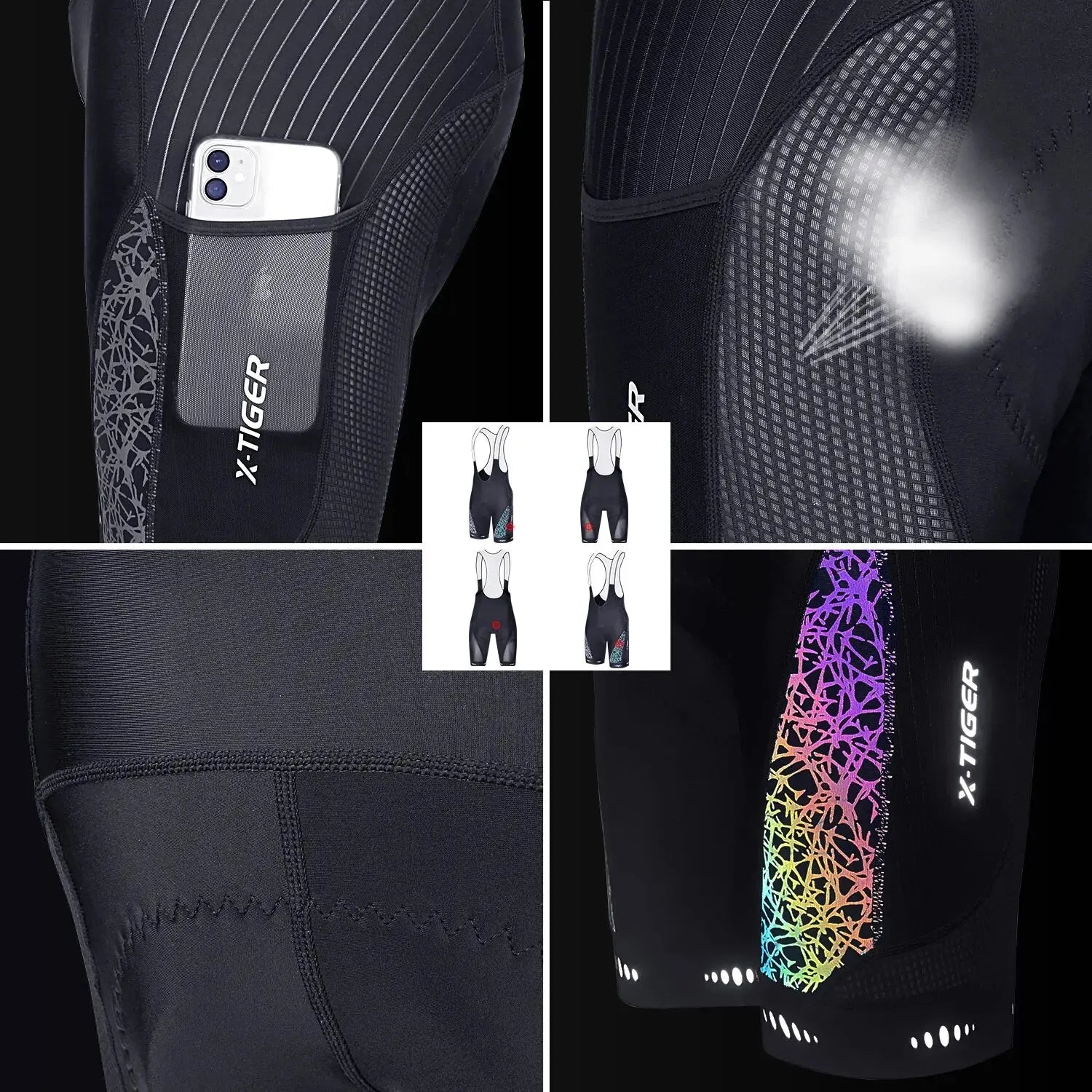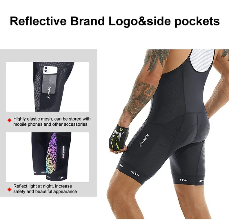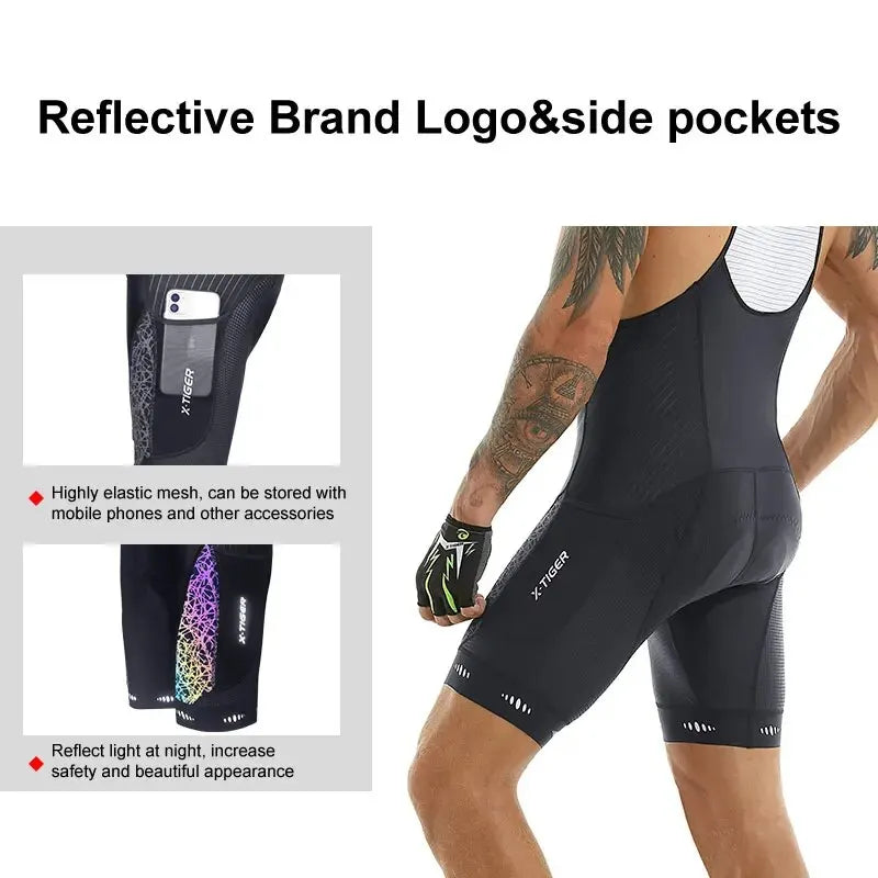 Cycling Bib Shorts 5D Gel Pad Mountain Bike Shorts Bretelle Pockets Outdoor Breathable UPF50+ Bike Tight Bicycle Shorts
