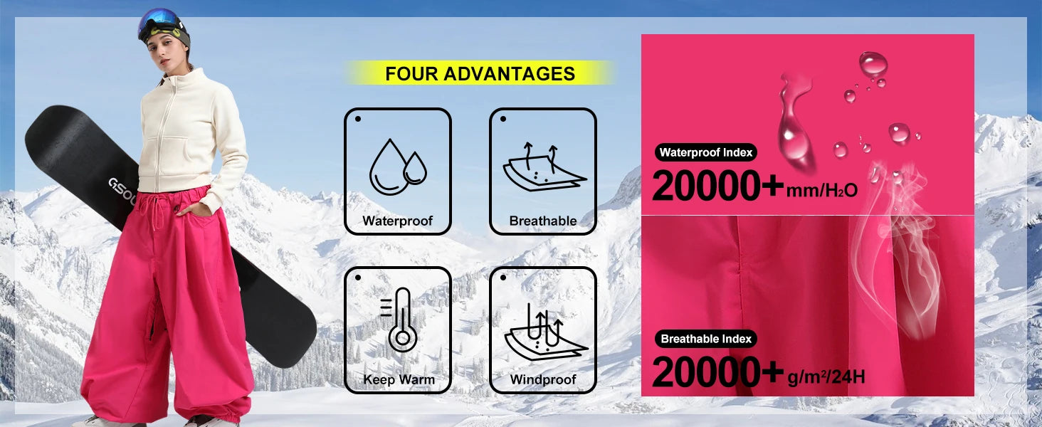 GSOU SNOW Plus Size Winter Ski Trousers Super Baggy Men Snowboard Clothes Women Snow Pants Outdoor Sports Winterproof Breathable