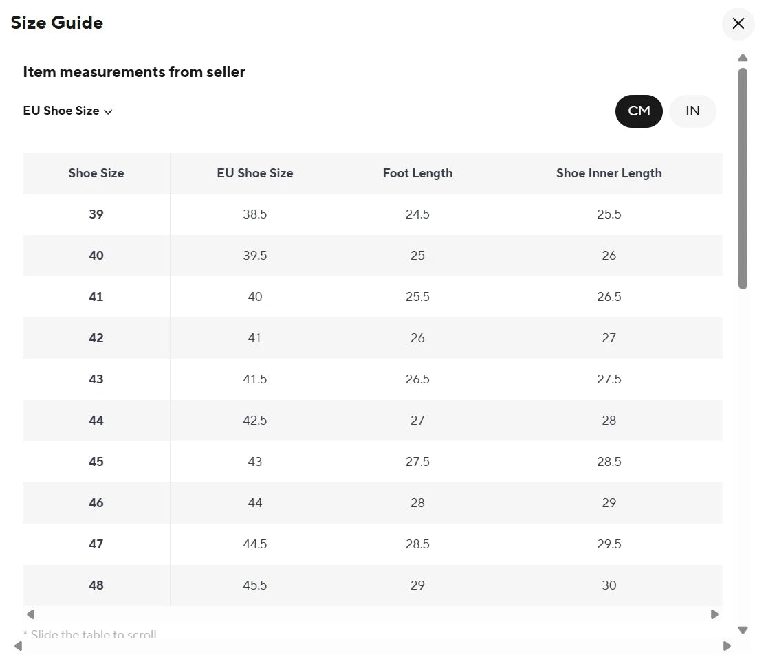size_info: {"sizeInfoList":[{"countrySizeMap":{"EU":"38.5","BR":"36.5","JP":"24.5","UK":"5.5","KR":"245","MX":"24.5","US":"6.5"},"length":{"cm":"24.5","inch":"9.65"},"size":"39","vid":200000364},{"countrySizeMap":{"EU":"39.5","BR":"37.5","JP":"25","UK":"6.5","KR":"250","MX":"25","US":"7.5"},"length":{"cm":"25","inch":"9.84"},"size":"40","vid":100013888},{"countrySizeMap":{"EU":"40","BR":"38","JP":"25.5","UK":"7","KR":"255","MX":"25.5","US":"8"},"length":{"cm":"25.5","inch":"10.04"},"size":"41","vid":100010483},{"countrySizeMap":{"EU":"41","BR":"39","JP":"26","UK":"7.5","KR":"260","MX":"26","US":"8.5"},"length":{"cm":"26","inch":"10.24"},"size":"42","vid":200000337},{"countrySizeMap":{"EU":"41.5","BR":"39.5","JP":"26.5","UK":"8","KR":"265","MX":"26.5","US":"9"},"length":{"cm":"26.5","inch":"10.43"},"size":"43","vid":200000338},{"countrySizeMap":{"EU":"42.5","BR":"40.5","JP":"27","UK":"8.5","KR":"270","MX":"27","US":"9.5"},"length":{"cm":"27","inch":"10.63"},"size":"44","vid":100010487},{"countrySizeMap":{"EU":"43","BR":"41","JP":"27.5","UK":"9.5","KR":"275","MX":"27.5","US":"10.5"},"length":{"cm":"27.5","inch":"10.83"},"size":"45","vid":3116},{"countrySizeMap":{"EU":"44","BR":"42","JP":"28","UK":"10","KR":"280","MX":"28","US":"11"},"length":{"cm":"28","inch":"11.02"},"size":"46","vid":200000899},{"countrySizeMap":{"EU":"44.5","BR":"42.5","JP":"28.5","UK":"10.5","KR":"285","MX":"28.5","US":"11.5"},"length":{"cm":"28.5","inch":"11.22"},"size":"47","vid":200000339},{"countrySizeMap":{"EU":"45.5","BR":"43.5","JP":"29","UK":"11","KR":"290","MX":"29","US":"12"},"length":{"cm":"29","inch":"11.42"},"size":"48","vid":200000900}]}