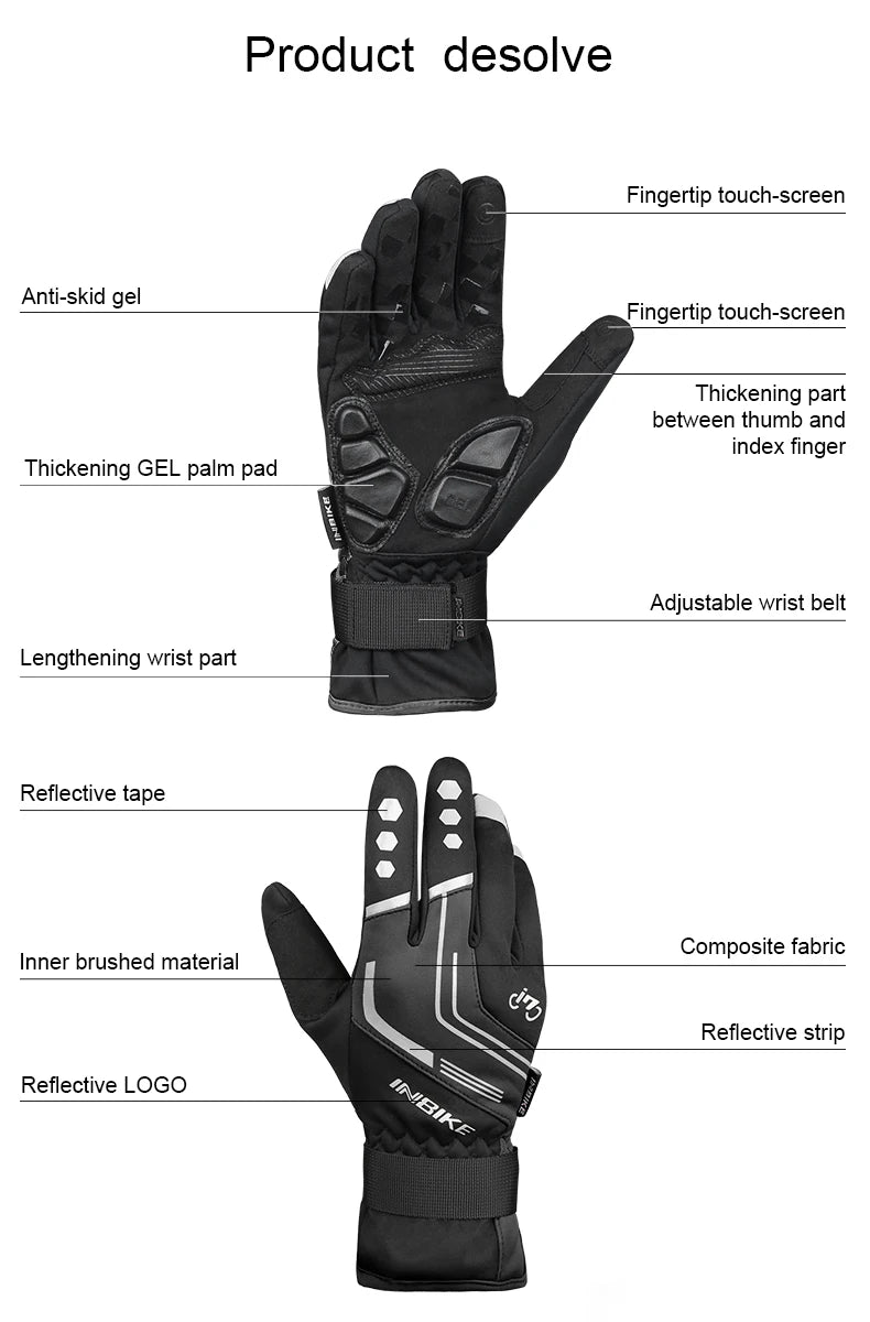 This INBIKE Winter gloves is made of stretch triple-layer composite windproof & waterproof fabric to keep your hands warmth and dryness.