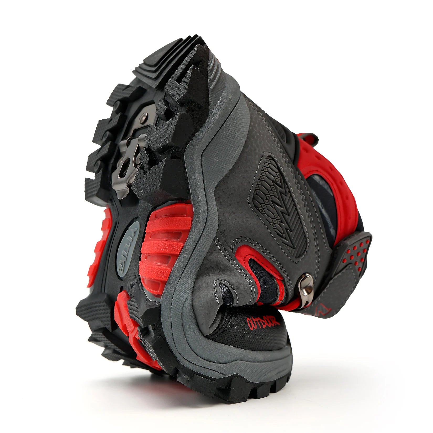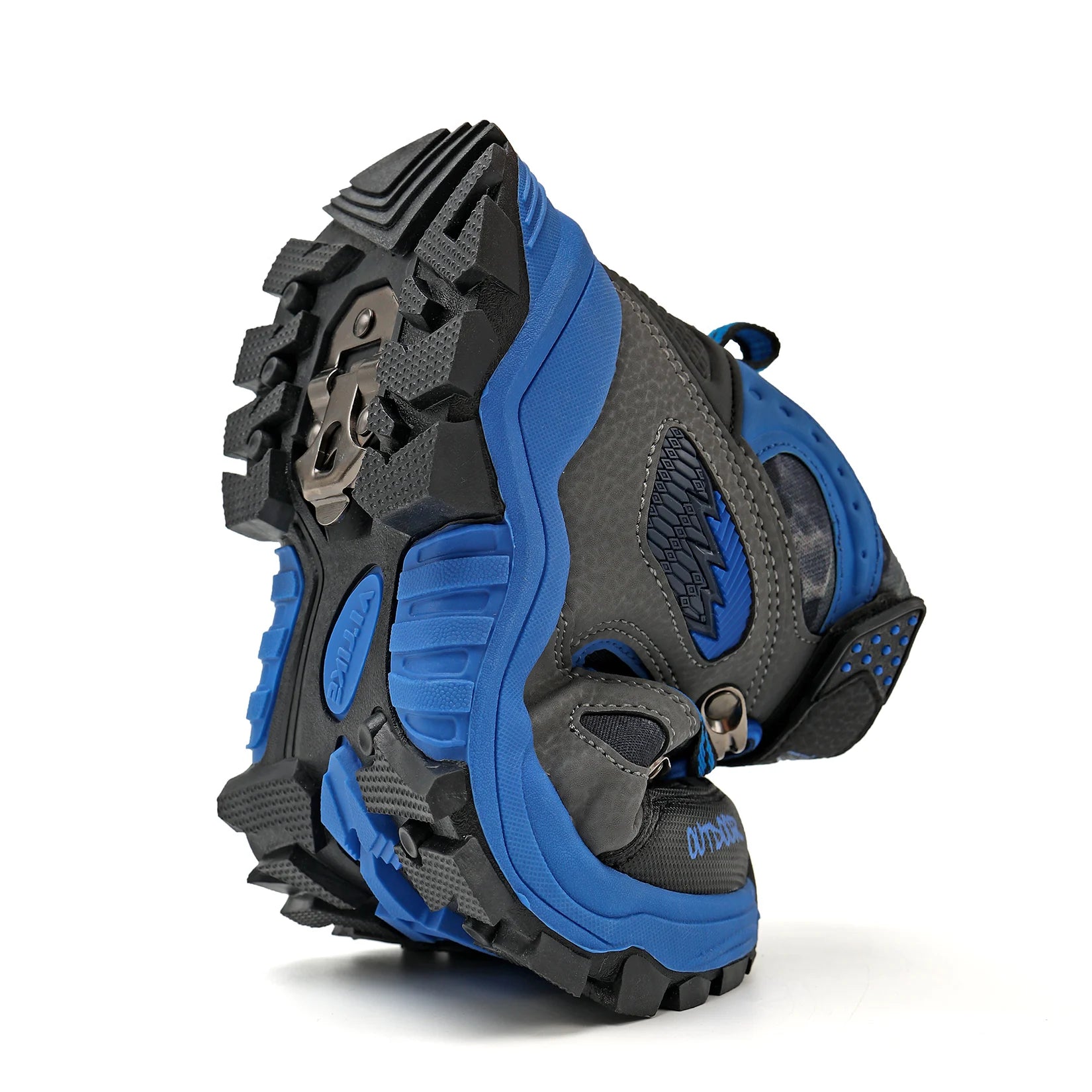 Kids hiking shoes with non-slip metal claw and unique outsole pattern provides excellent traction and stability for various surfaces and terrains.