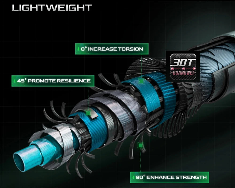 Made of 30T high elastic carbon fiber cloth, with light handle, good holding and high strength;