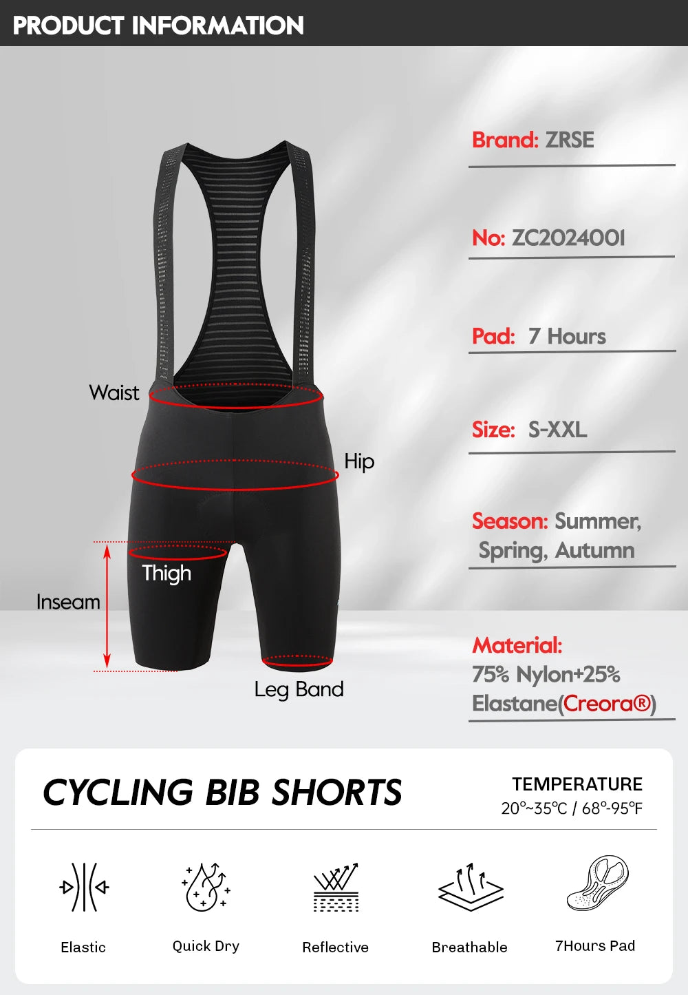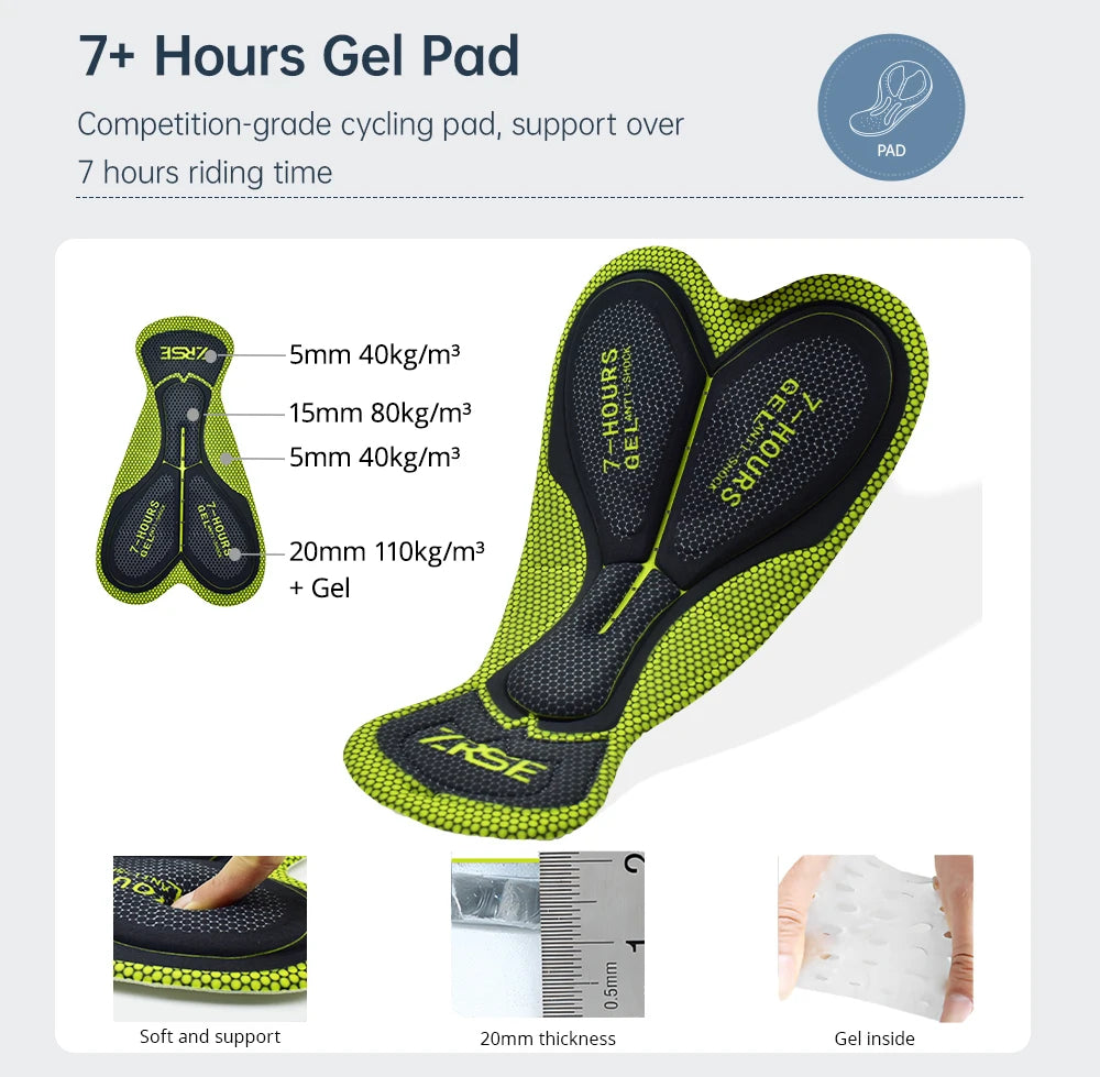 【7Hours Ergonomic Pad】 3D anatomical and perforated layer design for crotch padding. With high-density, foam inserts absorb shock and reduce skin irritation. Keeps you dry and fresh on about 7 hours long road rides.
