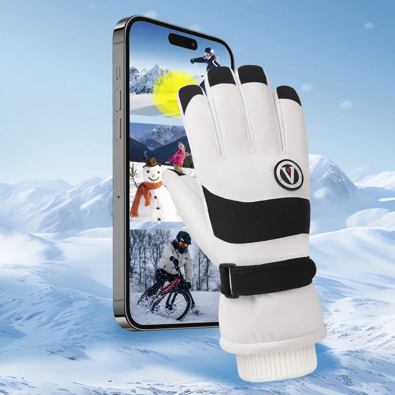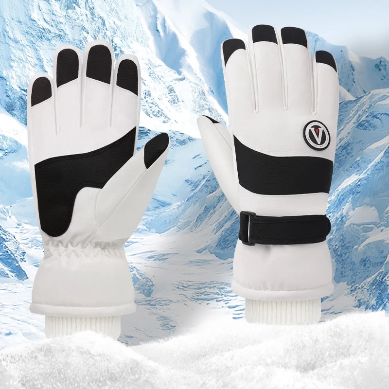 Minimalist Winter Warmth Thickened Fingerless Gloves Unisex Waterproof Fabric Fleece-Lined Ski Gloves Outdoor Sports Gloves