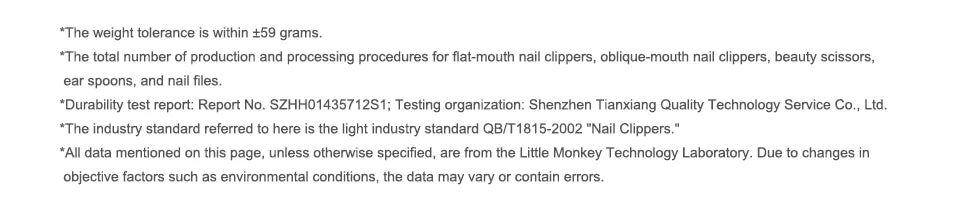 *The Industry standard referred to here is the light industry standard QB/T1815-2002 "Nail Clippers".