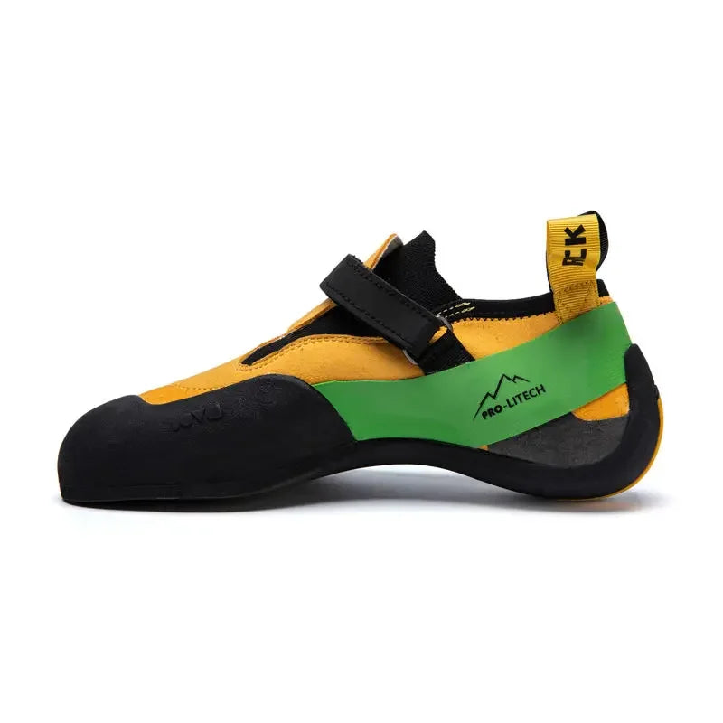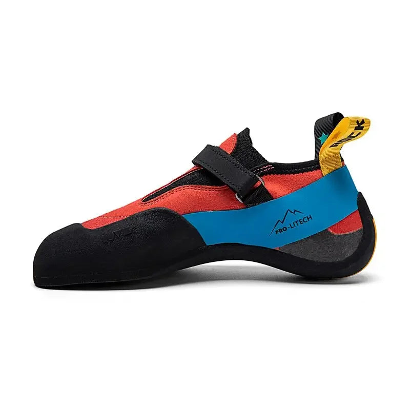 Crafted with a PU microfiber upper and durable rubber outsole, they ensure superior traction on both indoor walls and outdoor rocks. The hook & loop closure makes them easy to put on and secure, while the snug, professional-grade fit provides better control for edging, smearing, and crack climbing.