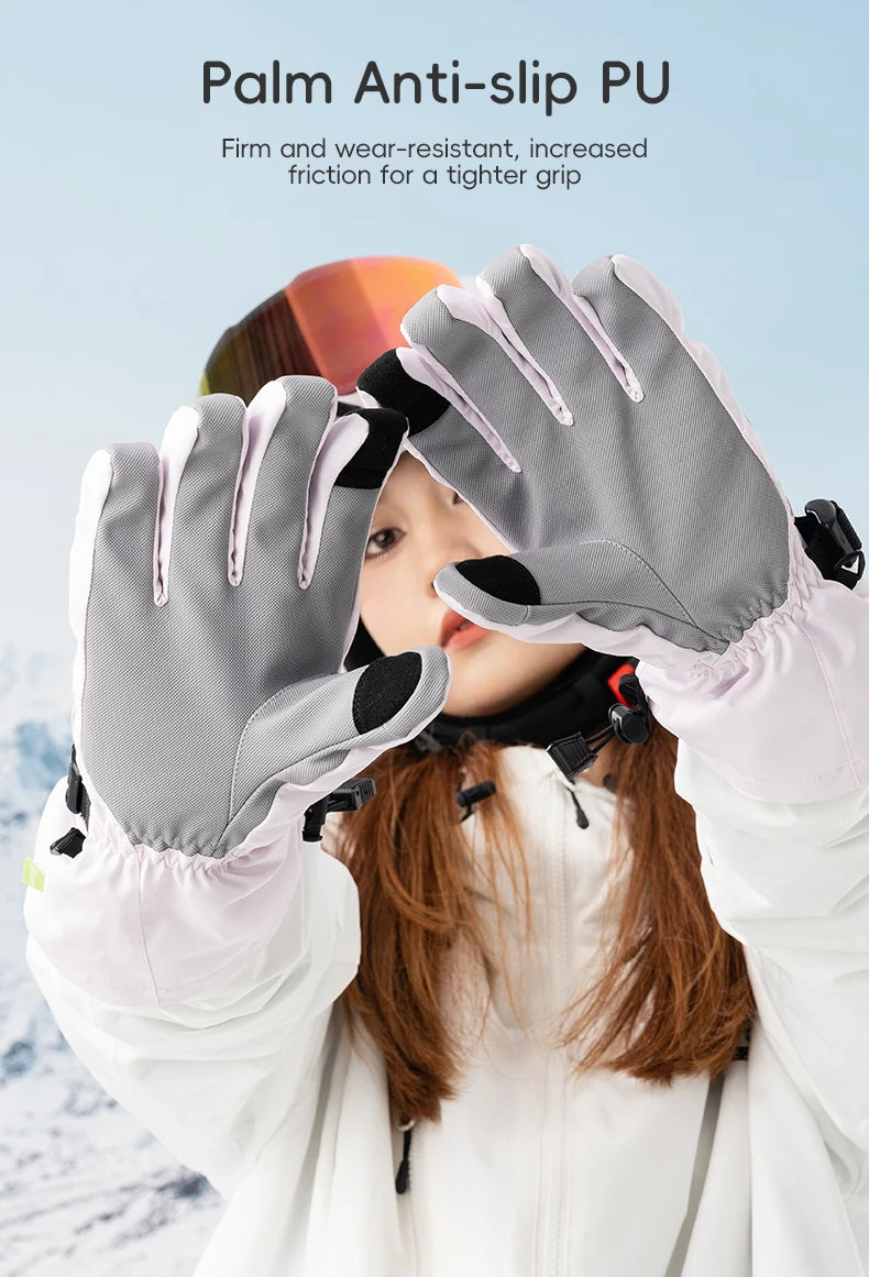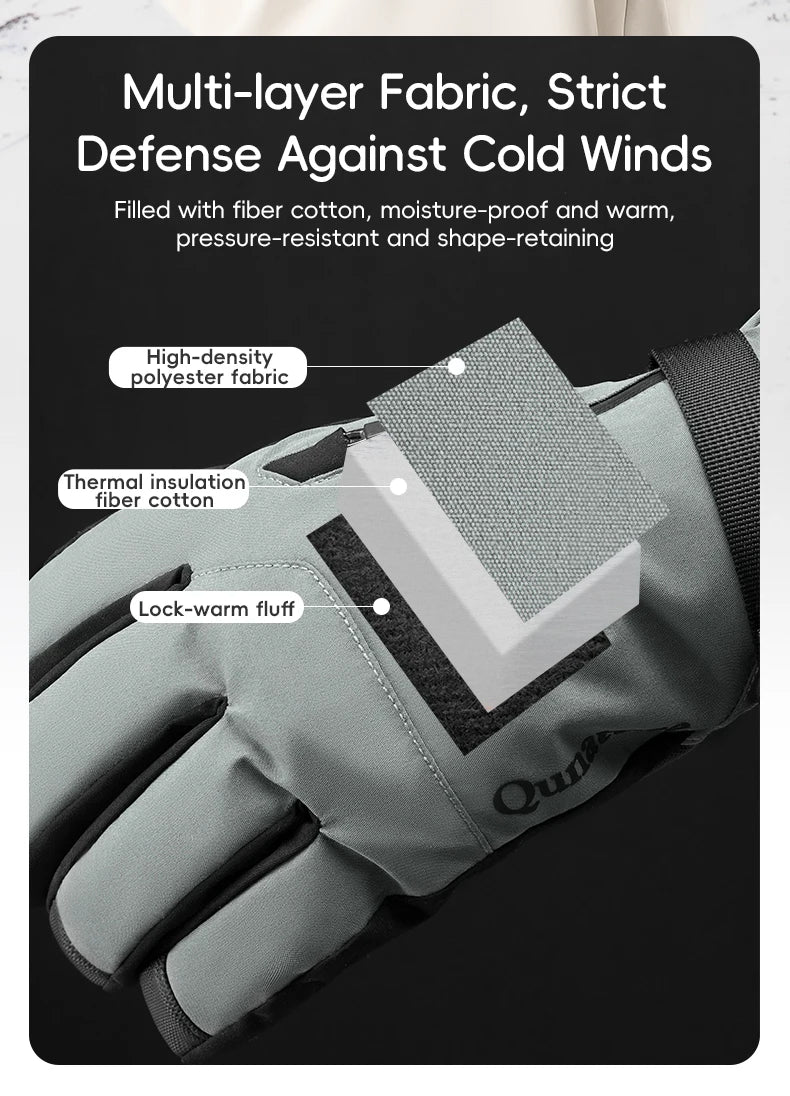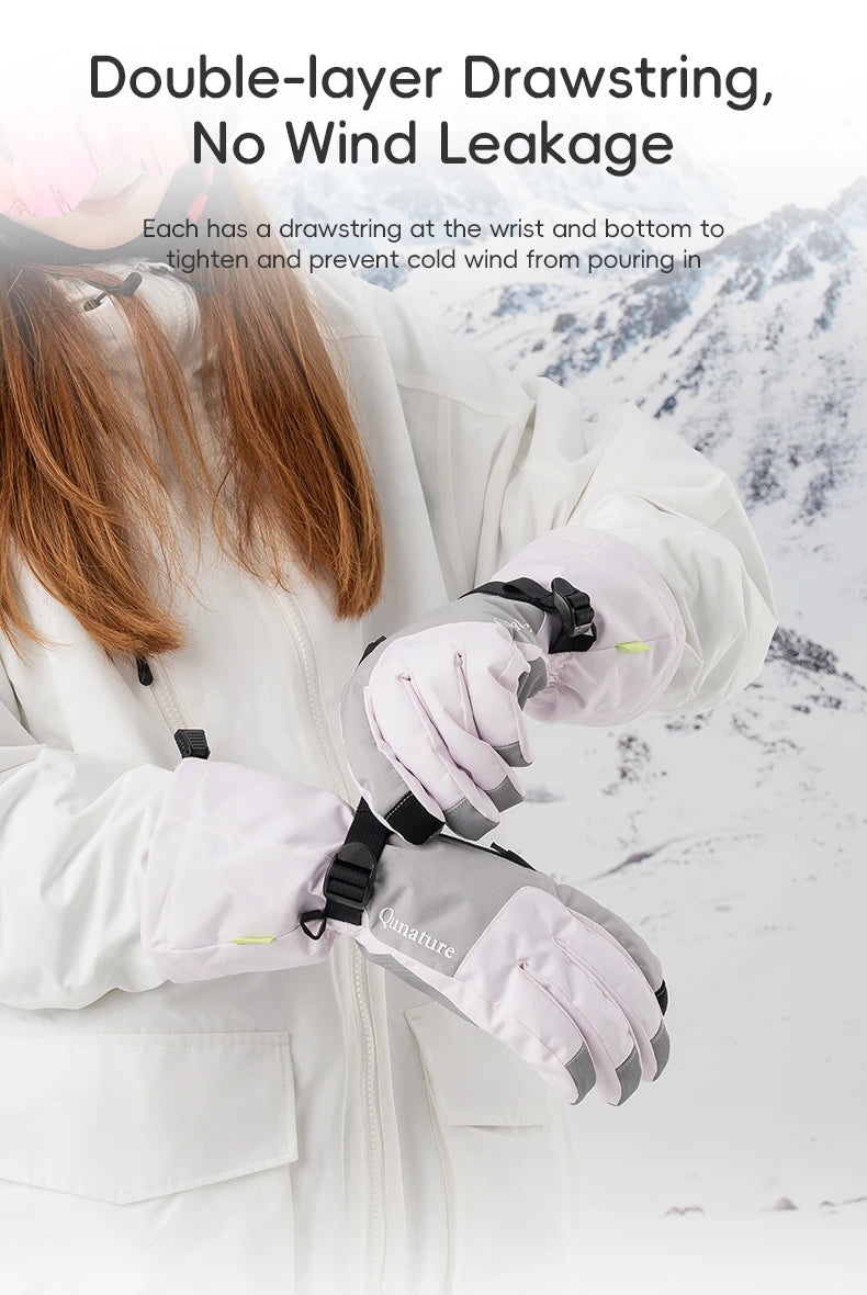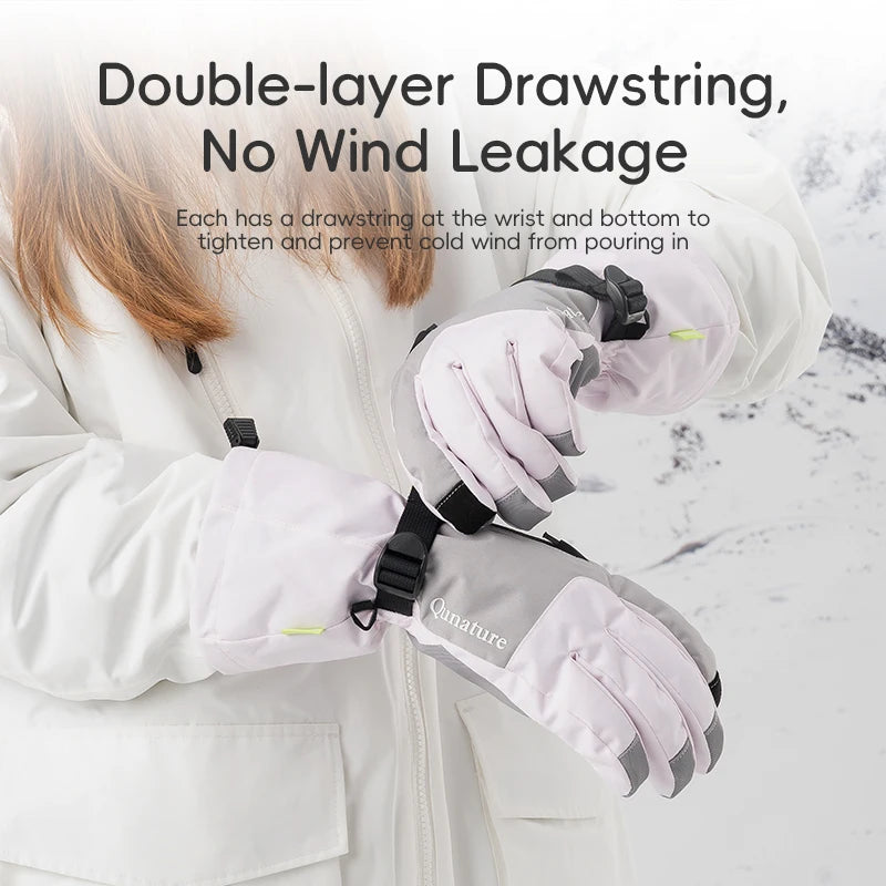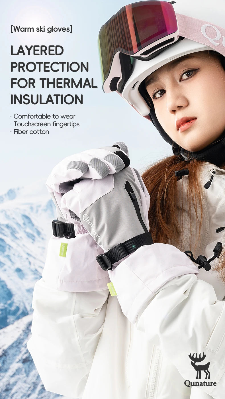 Qunature Ski Gloves Touchscreen Waterproof Keep Warm Ski Gloves Extended Wrist Palm anti-slip PU Snowboard Gloves Windproof