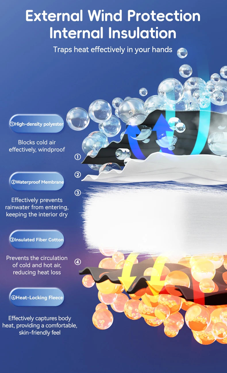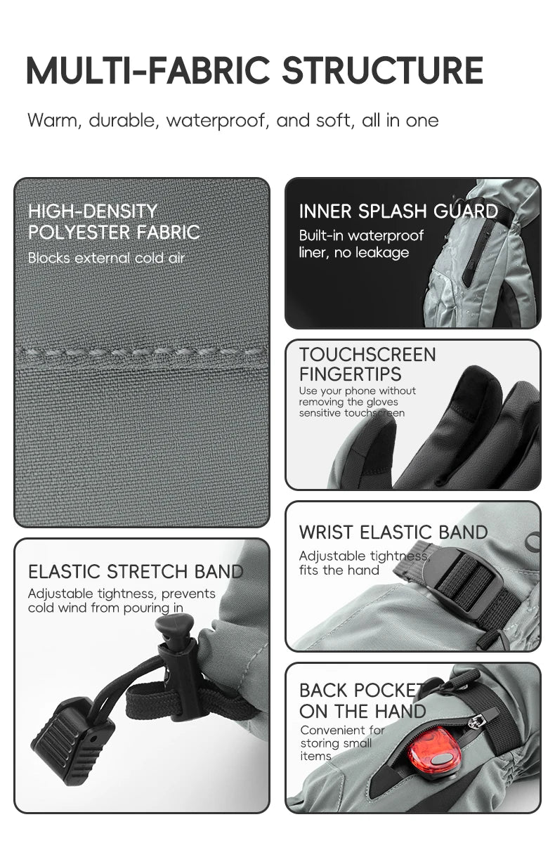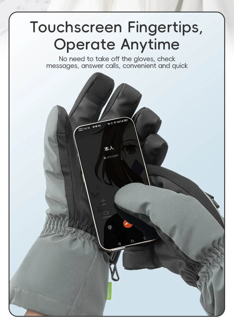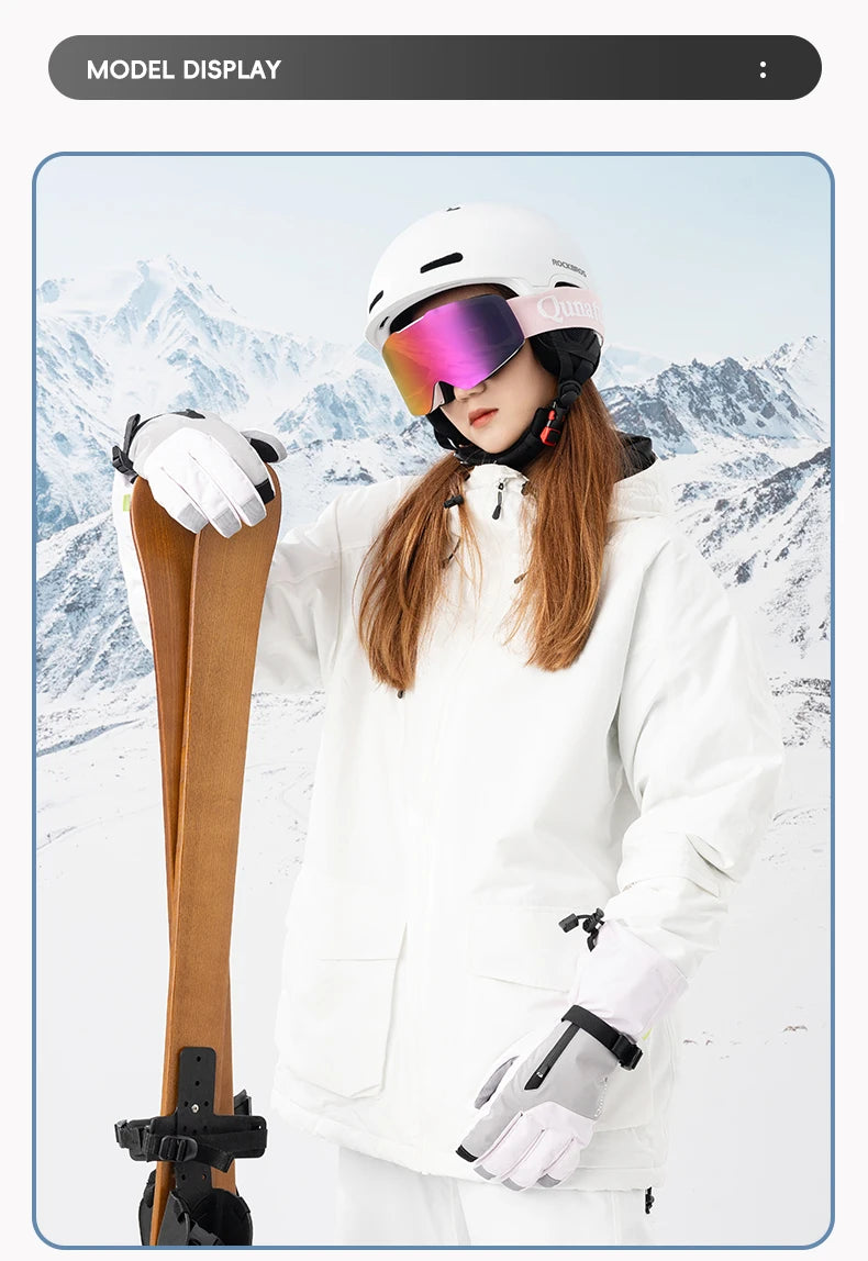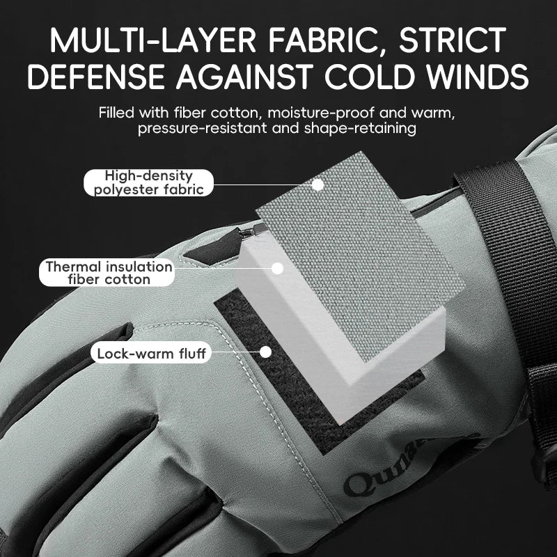 Qunature Ski Gloves Touchscreen Waterproof Keep Warm Ski Gloves Extended Wrist Palm anti-slip PU Snowboard Gloves Windproof