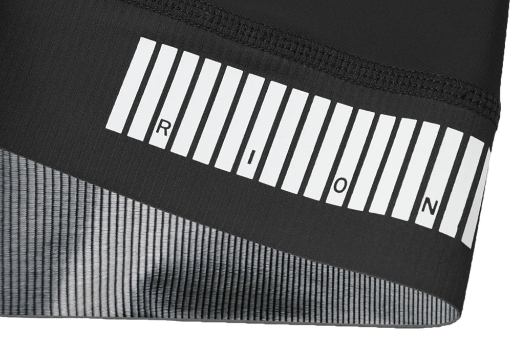 -Reflective patches and seams on the back of the thighs for low-light visibility. Laser-cut 5cm wide elasticized compression band gripper to keep hem in place