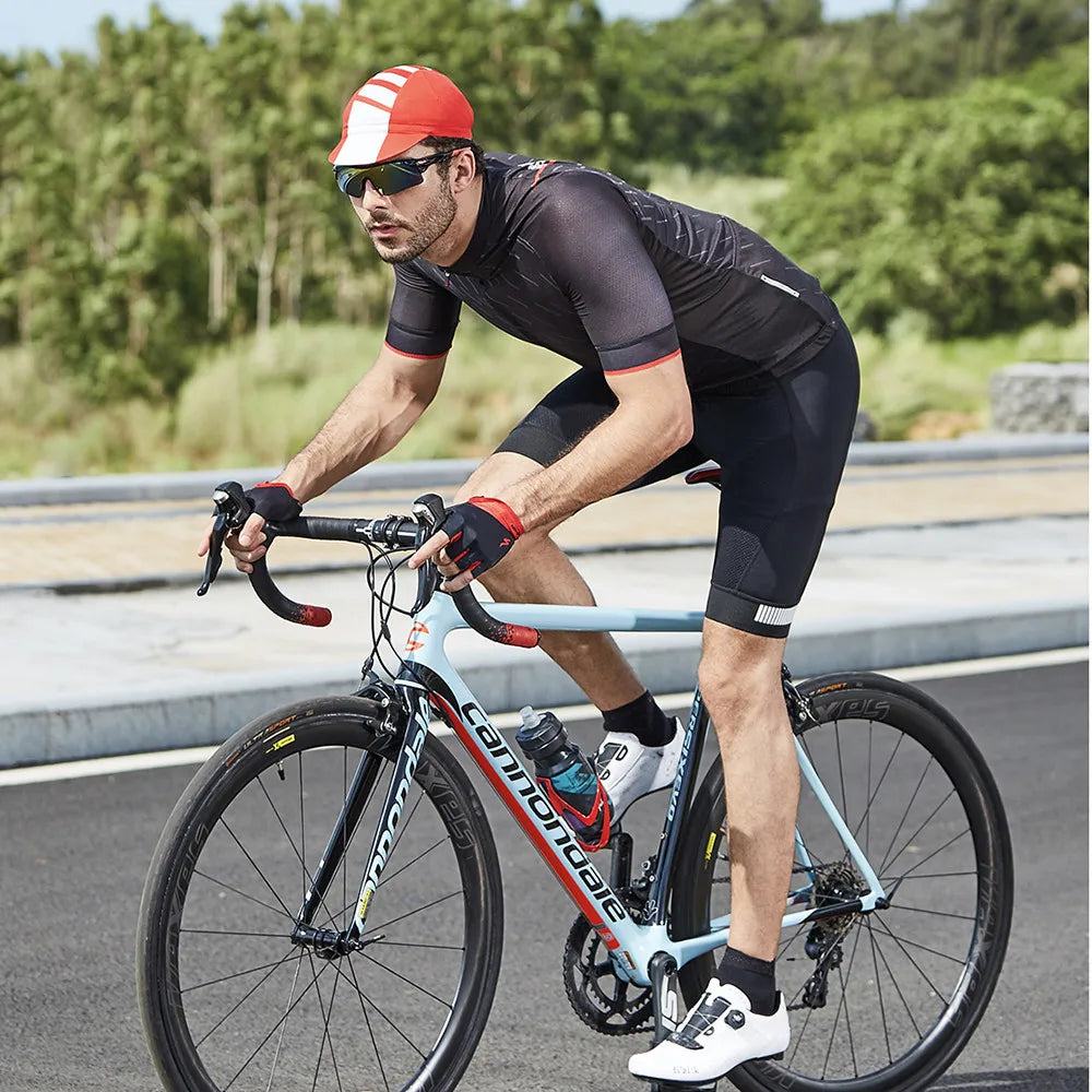 -Slim-Fit Cycling Bibs Shorts: provides better muscle control and reduces drag coefficient.