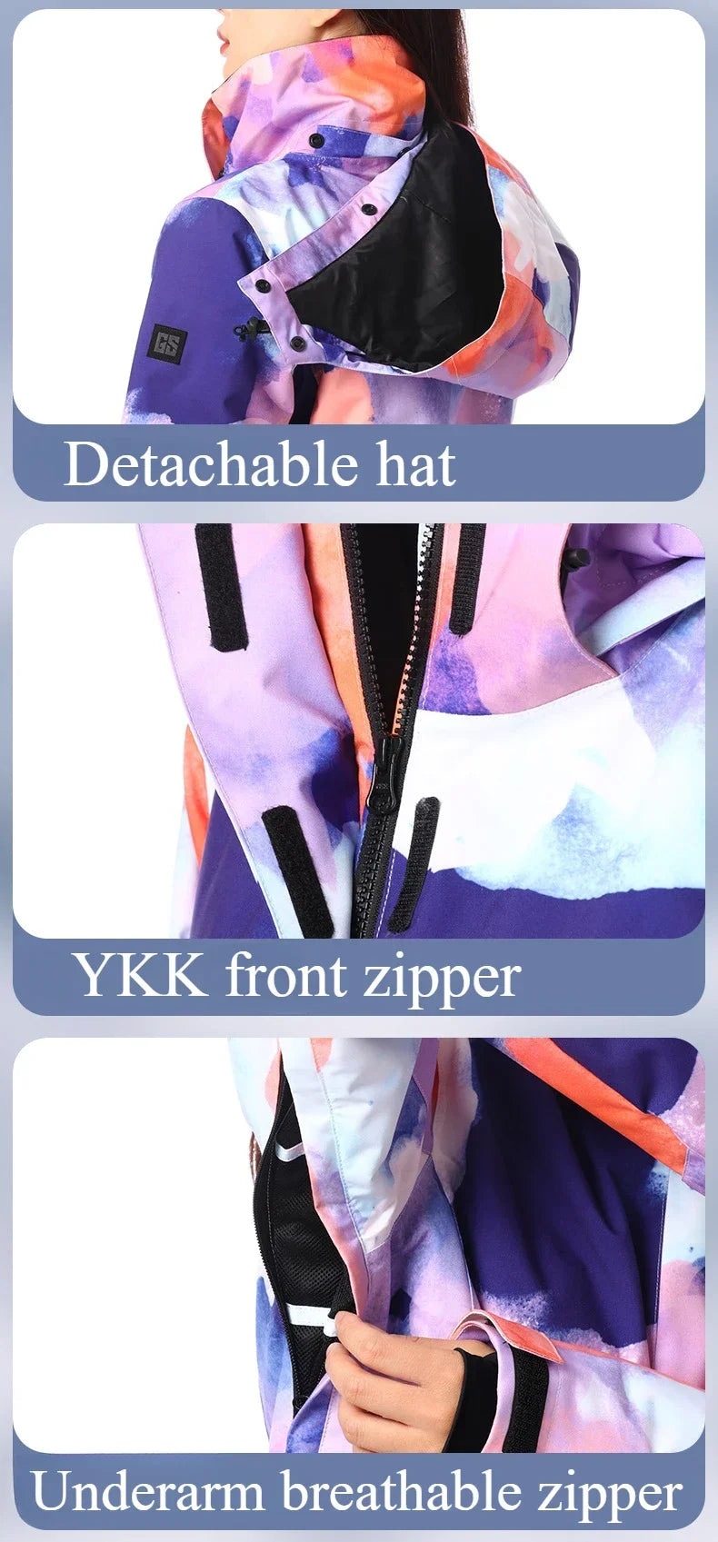 Skiing Hoodie Jacket Outdoor Warm Ski Coats Windproof Waterproof Ski Tops Women Sports Snowboard Jacket Winter New Snow Clothing