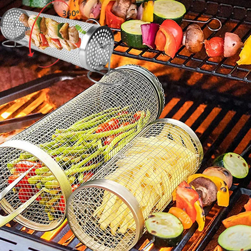 Stainless Steel Portable Barbecue Grill Net, Barbecue Basket for Outdoor Grilling, Outdoor Camping Barbecue Grill