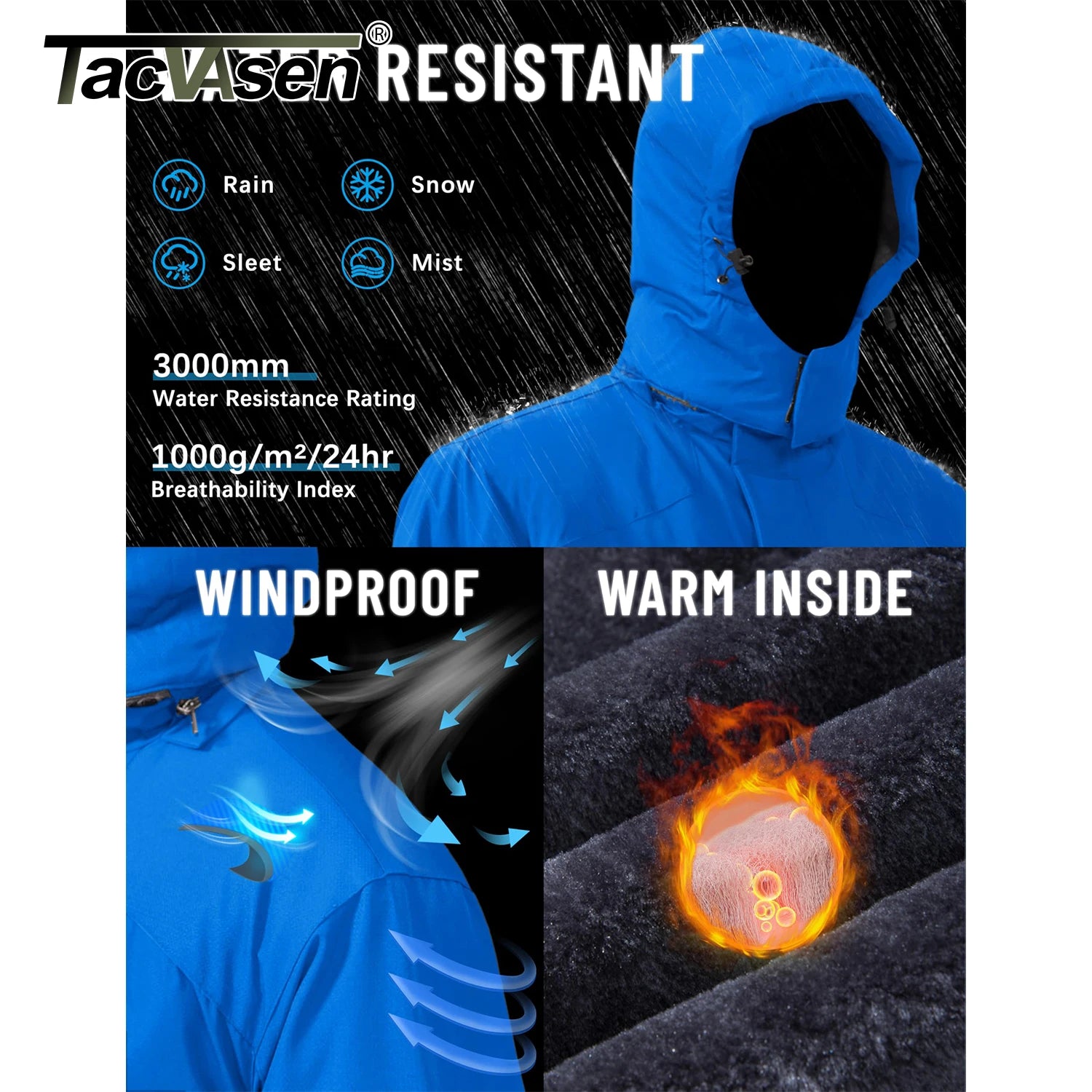 TACVASEN Winter Thicken Ski Snowboard Jacket Mens Fleece Waterproof Hiking Jackets Outdoor Mountain Trekking Windbreaker Parka