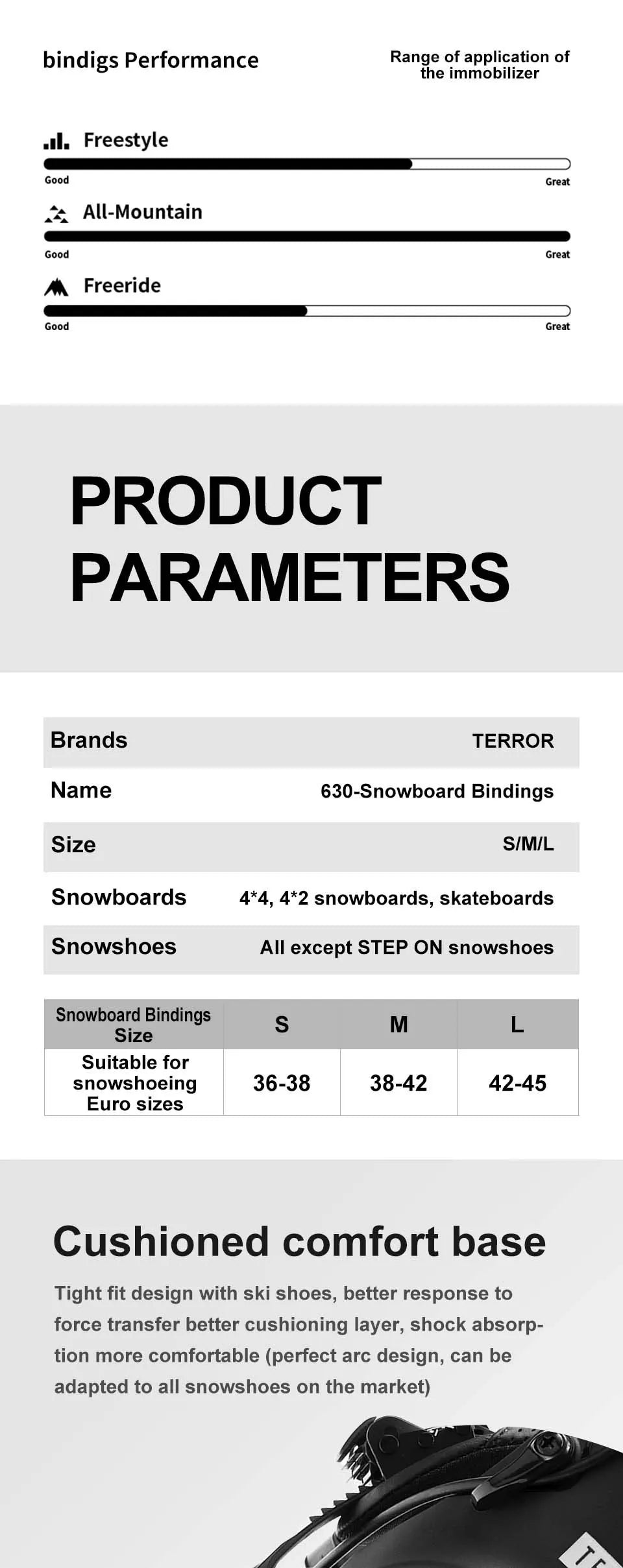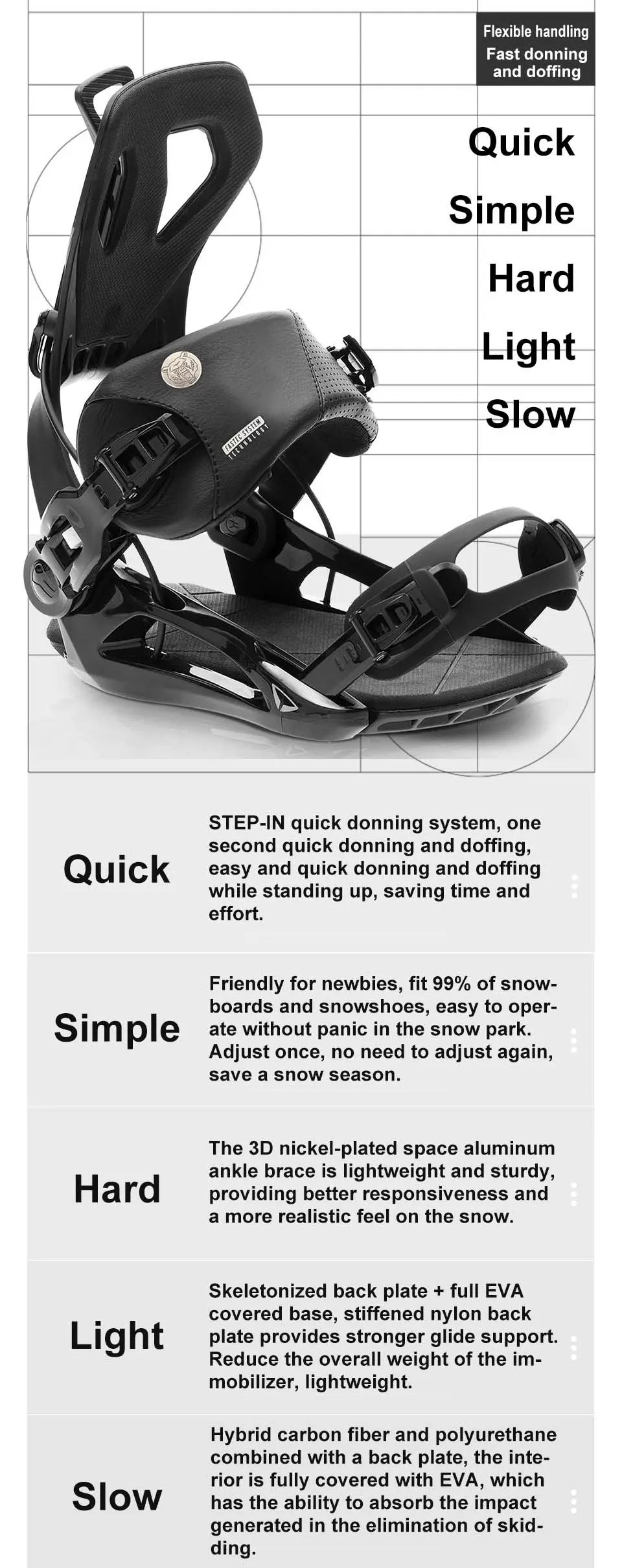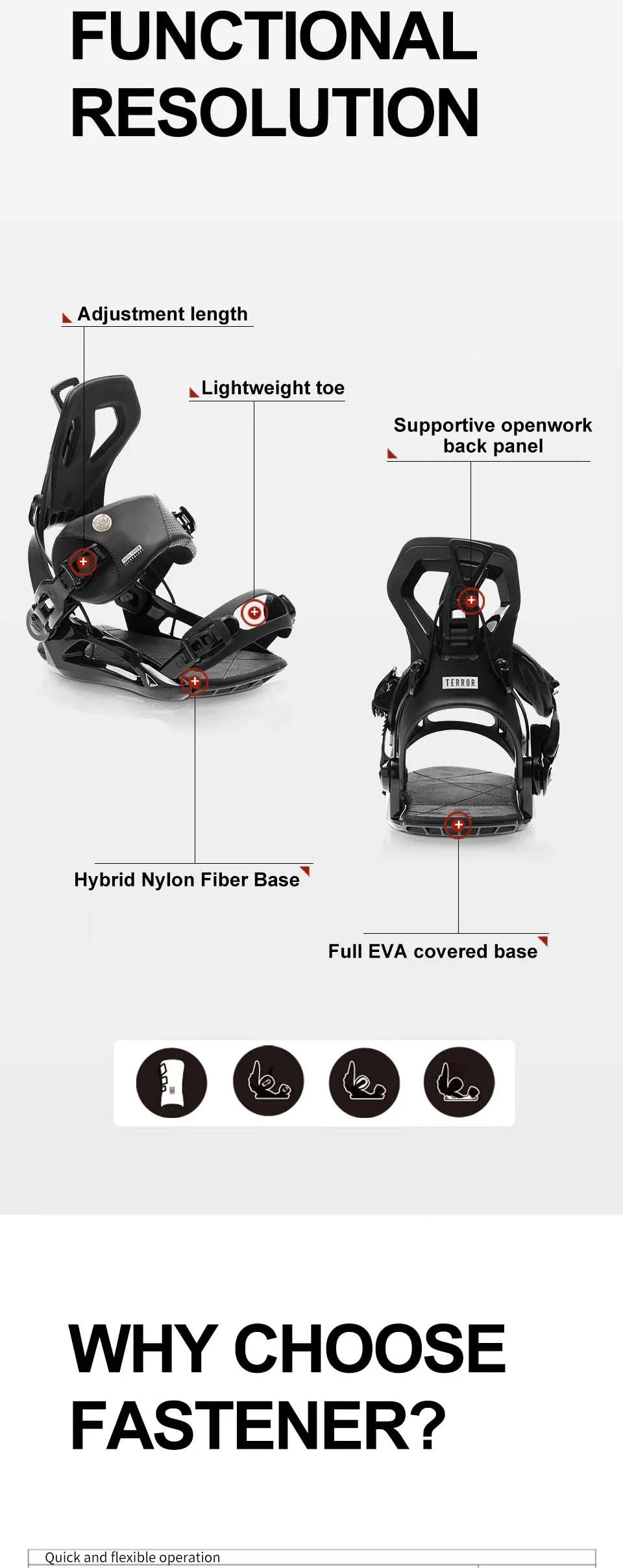 TERROR FS630 Step-In Snowboard Bindings Men Women 3D Highback EVA Shock Absorption Freestyle All-Mountain Quick Entry