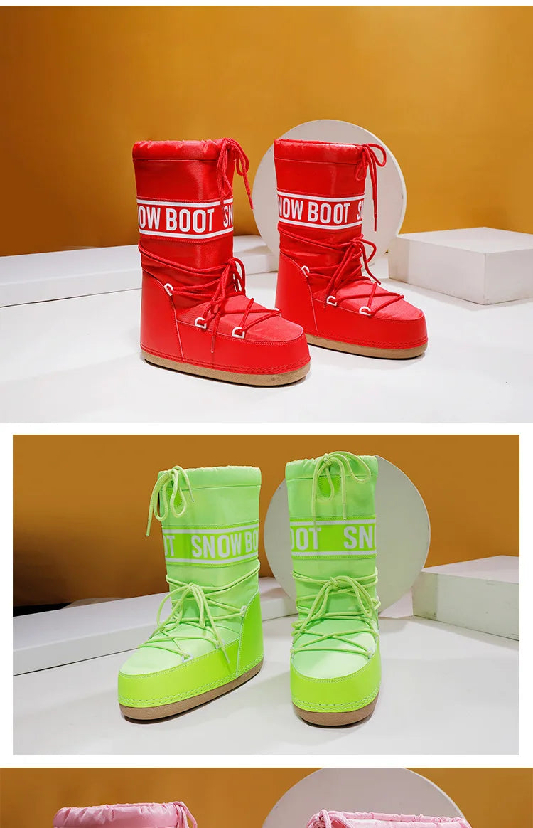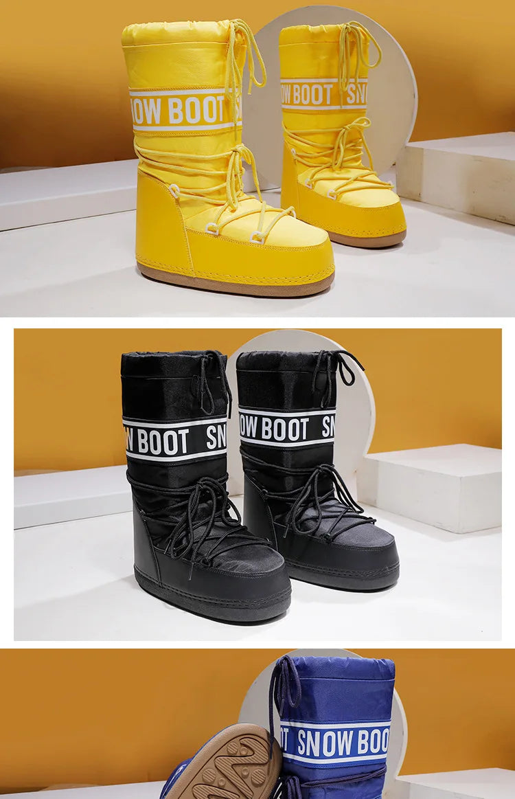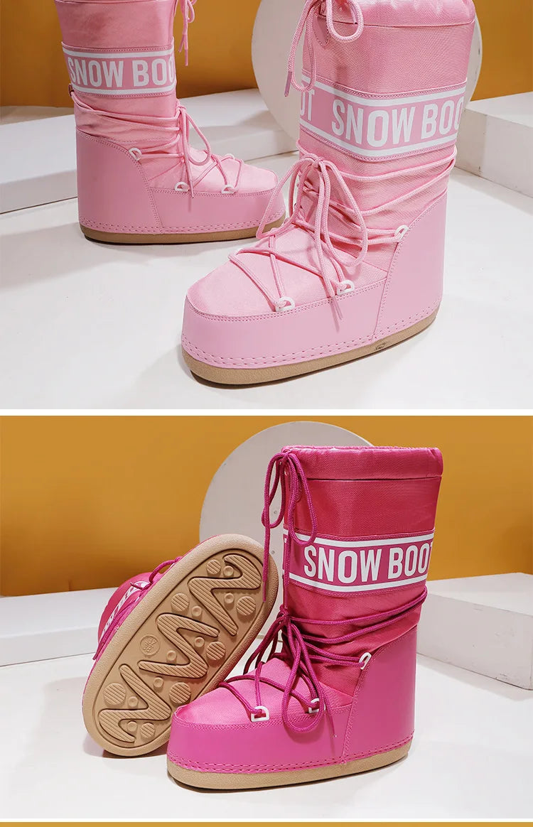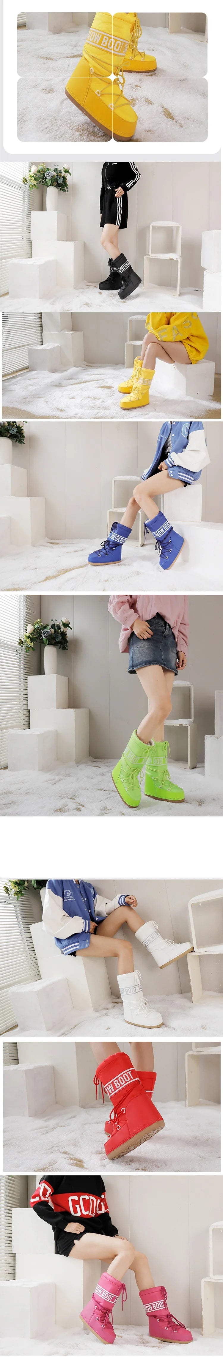 Winter Boots Women Snow Boots Mid-calf Cold-proof Antiskid Thicken Plush Waterproof Thick Platform Space Ski Boots Size 35-43