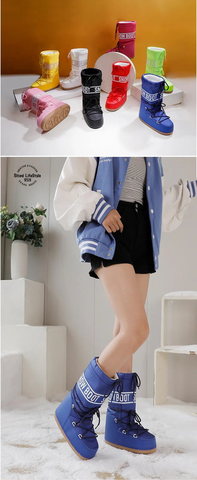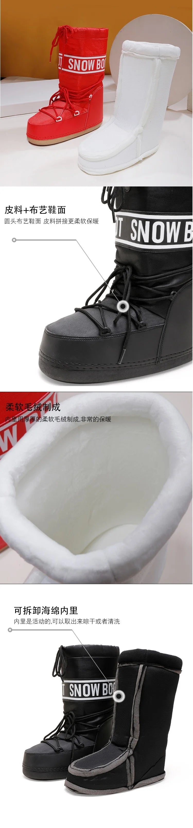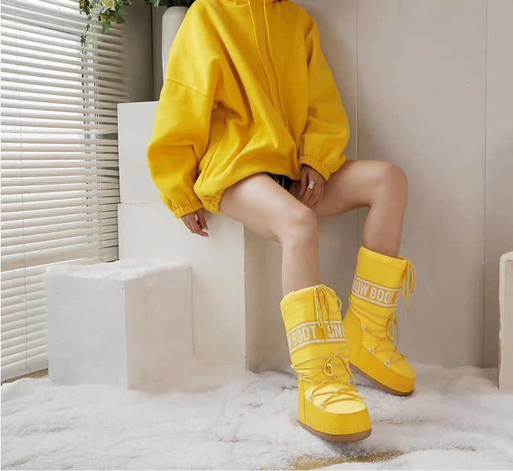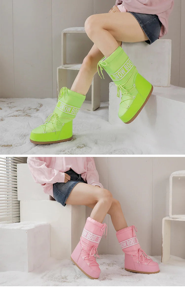 Winter Boots Women Snow Boots Mid-calf Cold-proof Antiskid Thicken Plush Waterproof Thick Platform Space Ski Boots Size 35-43
