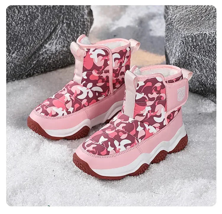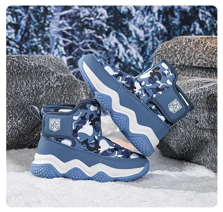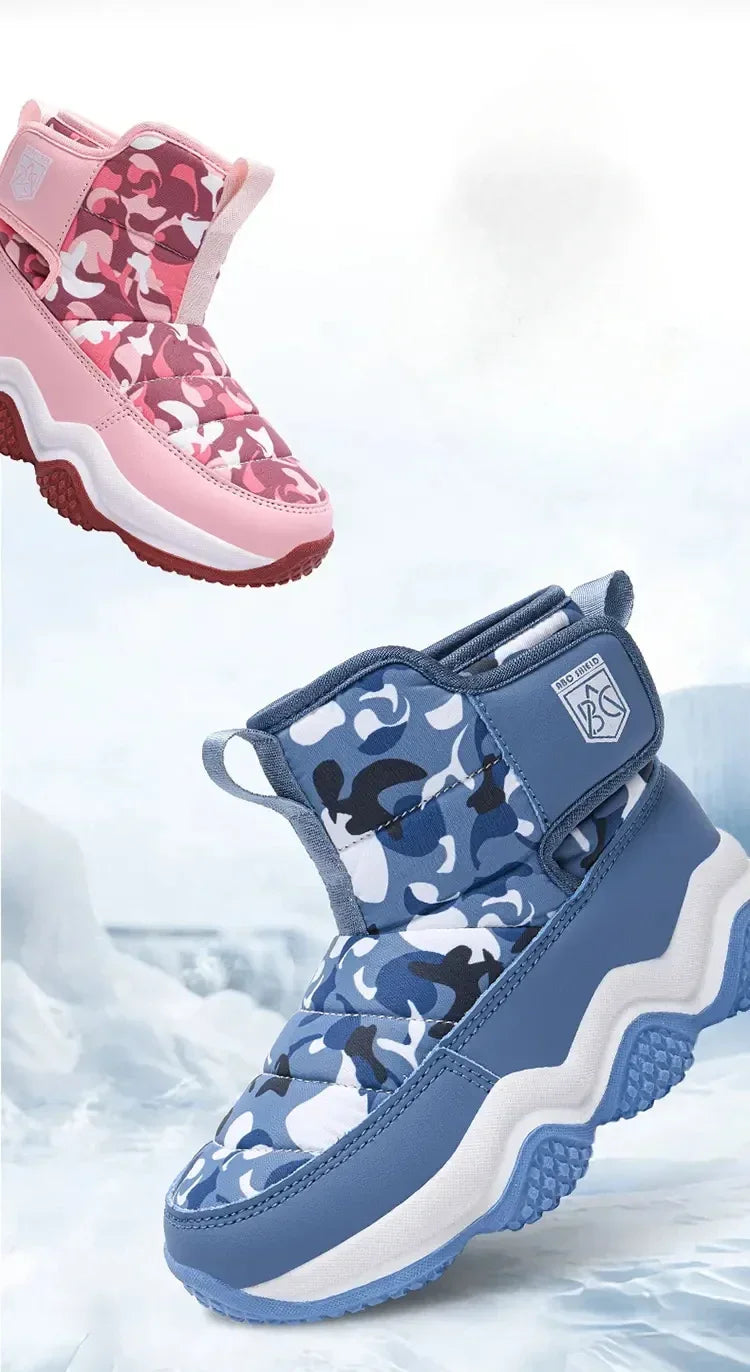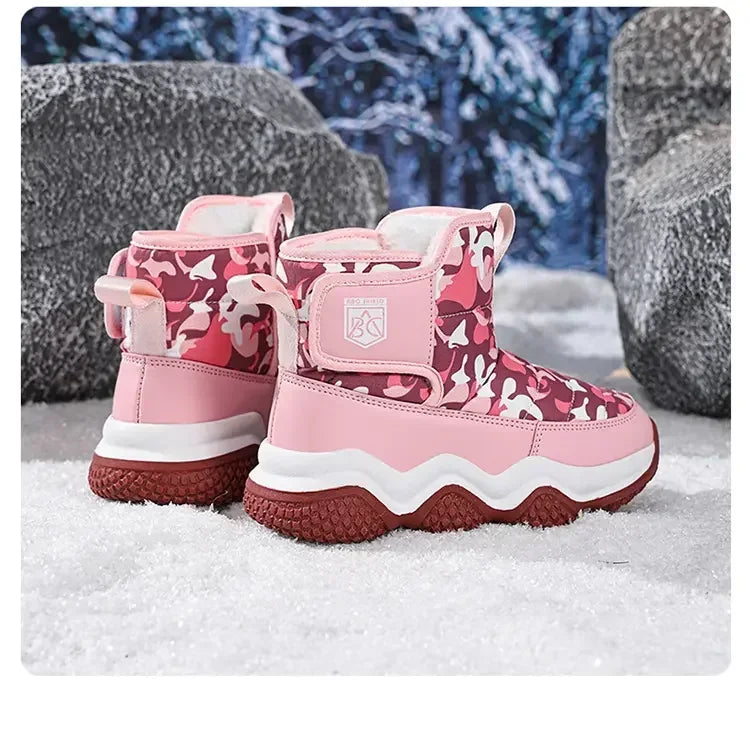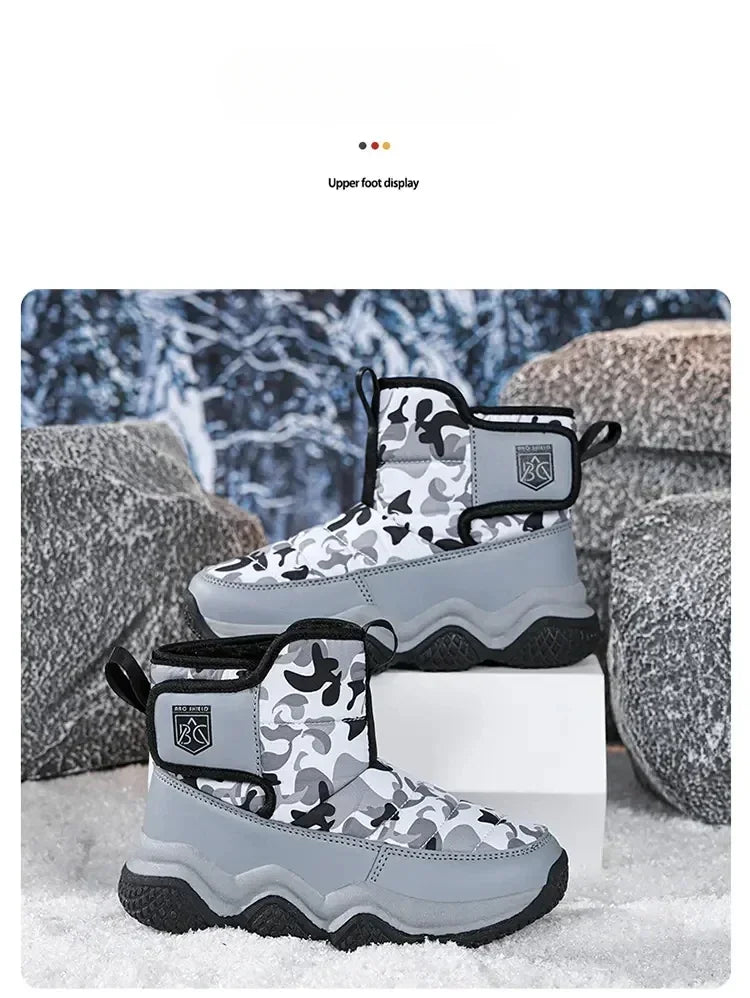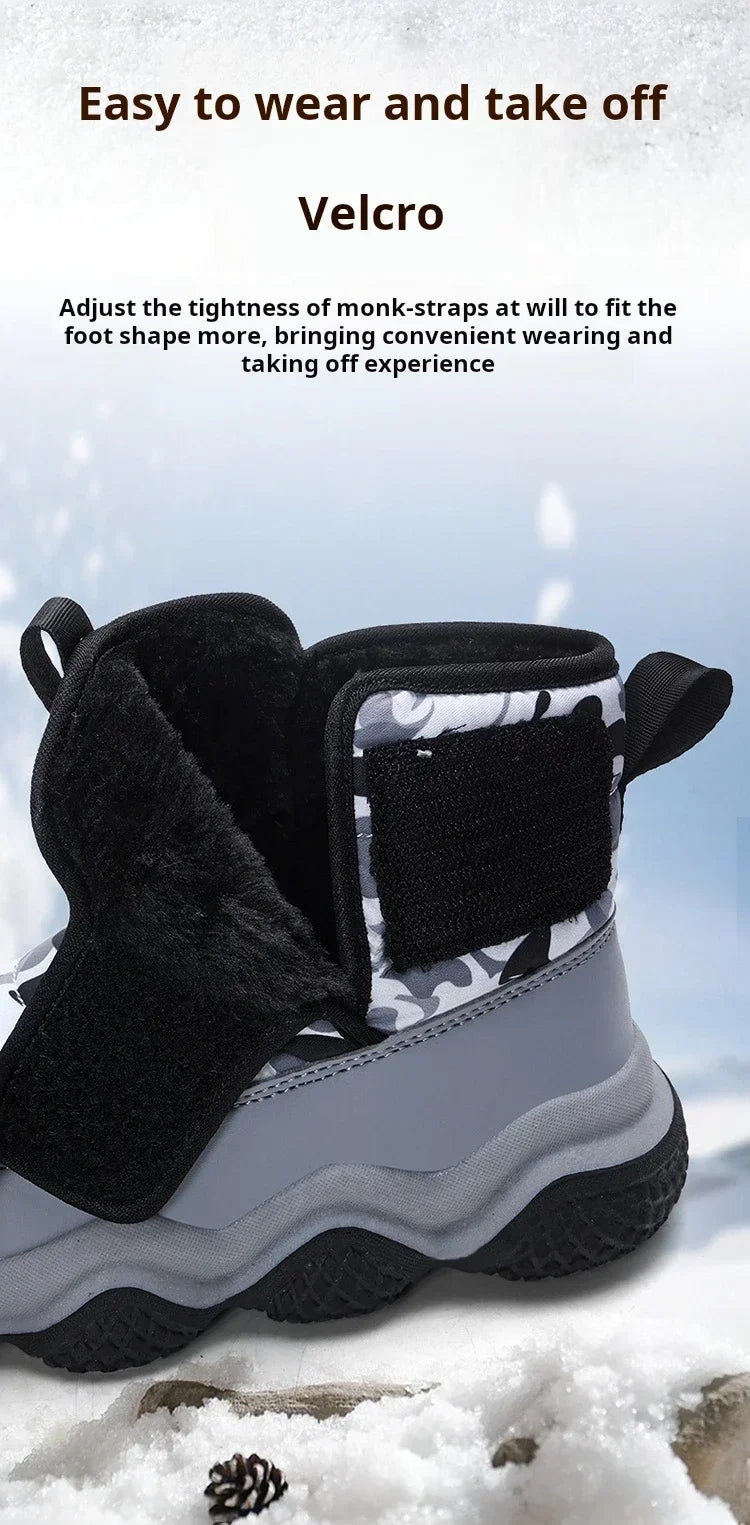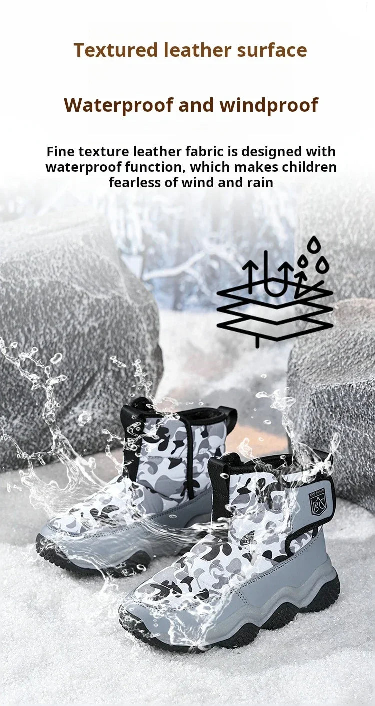 Winter Children Snow Warm Boots Fur Shoes Boys Sneaker Rubber Hiking Shoe Fashion Children Shoes Waterproof Leather Boots Kids
