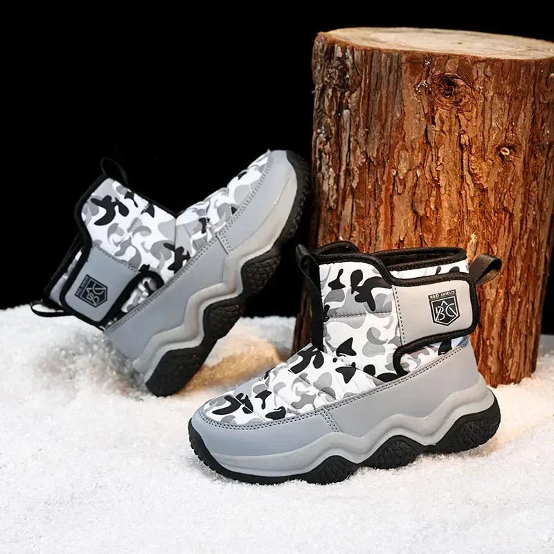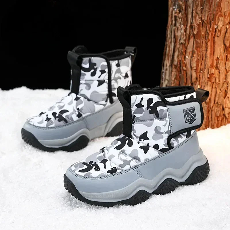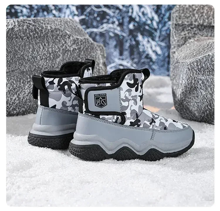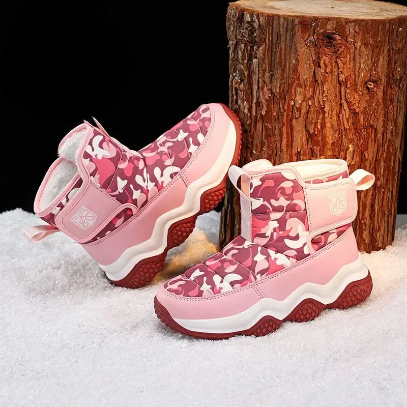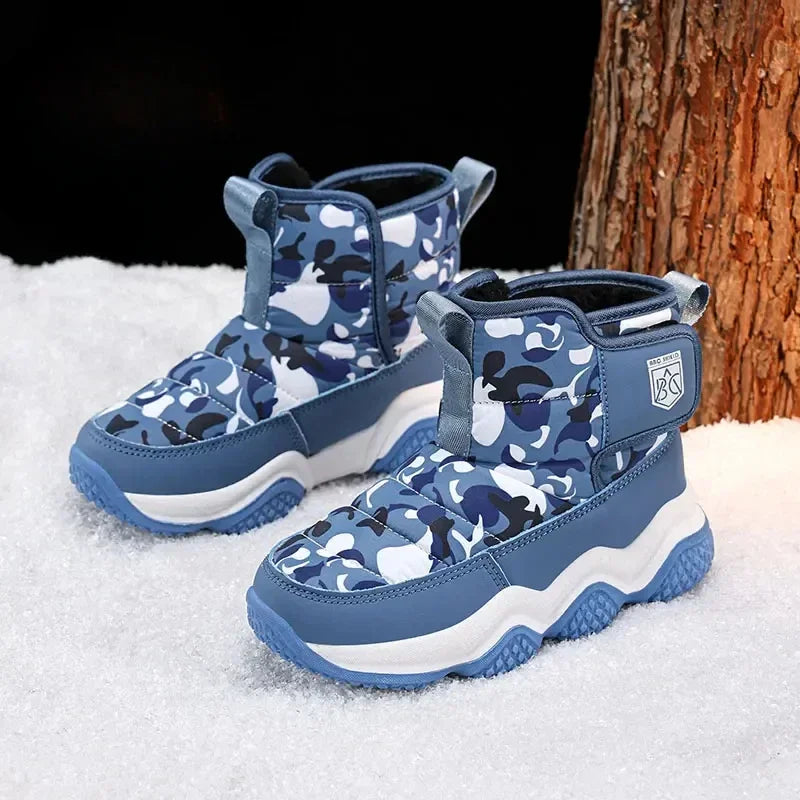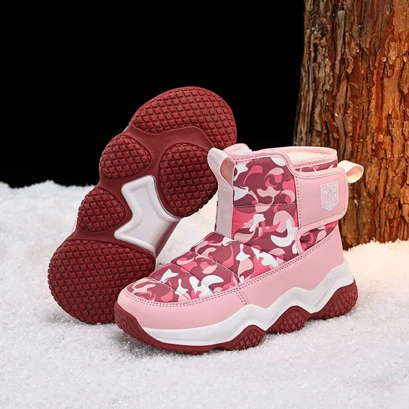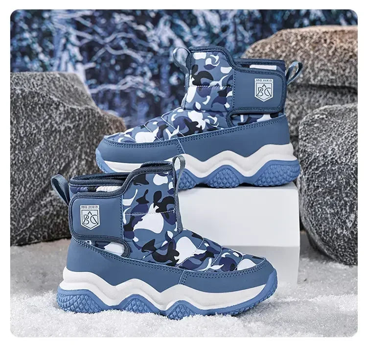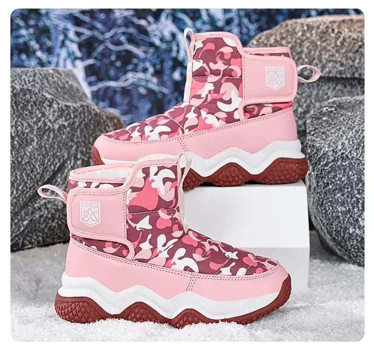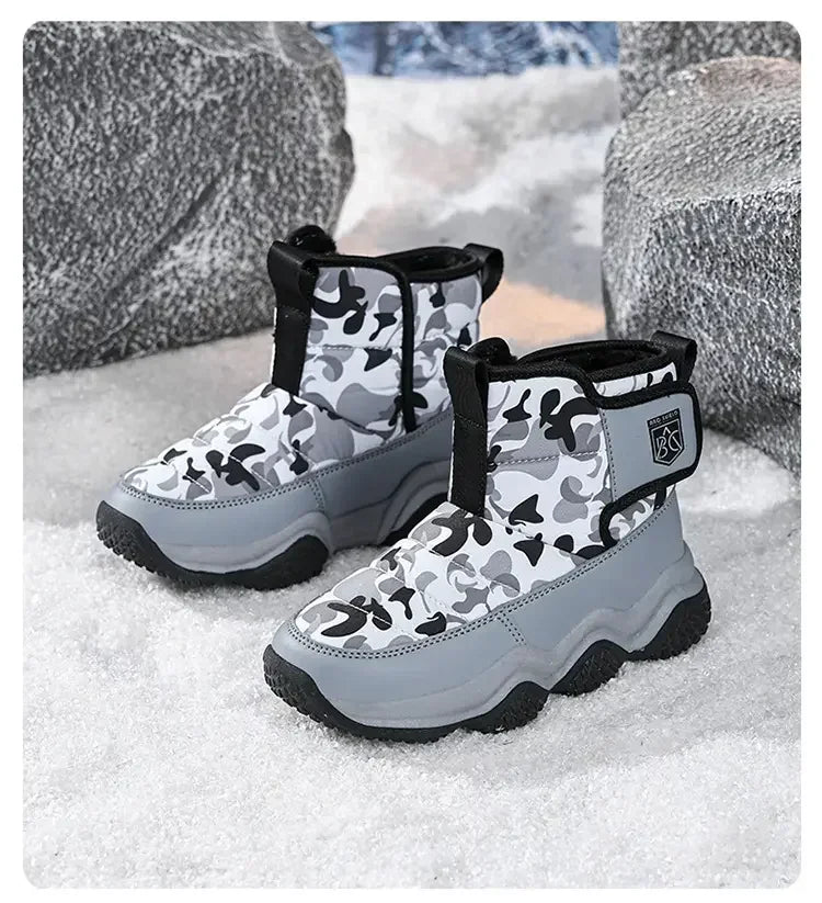 Winter Children Snow Warm Boots Fur Shoes Boys Sneaker Rubber Hiking Shoe Fashion Children Shoes Waterproof Leather Boots Kids