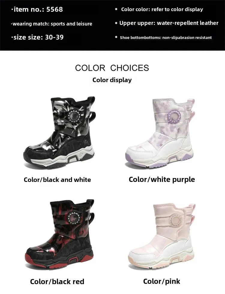 Winter Children's Cotton Shoes Anti-Slip Ice Claw High-Top Waterproof Fleece-Lined Snow Boots for Girls And Boys Hot Sale Of The