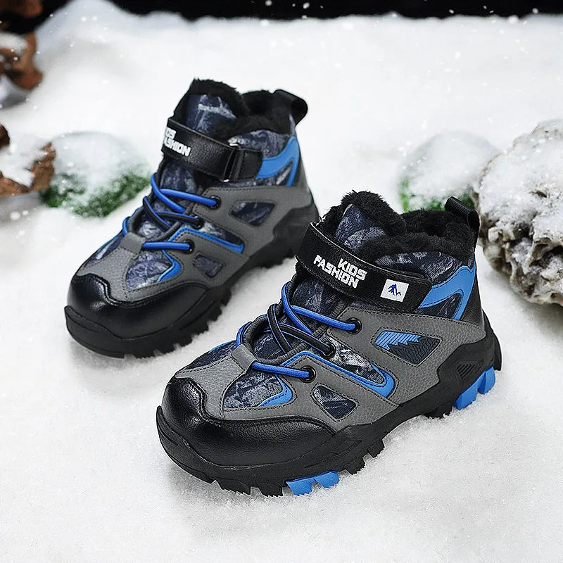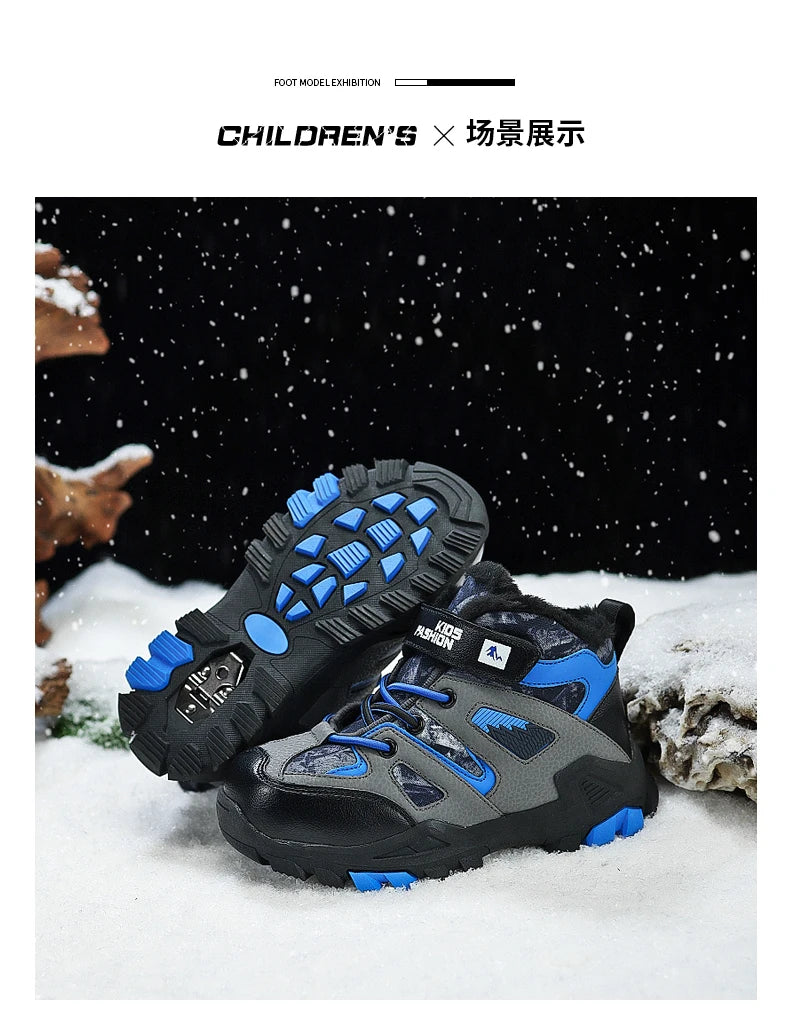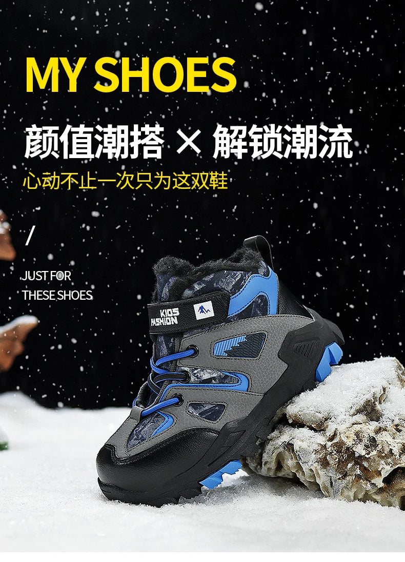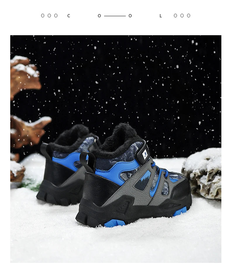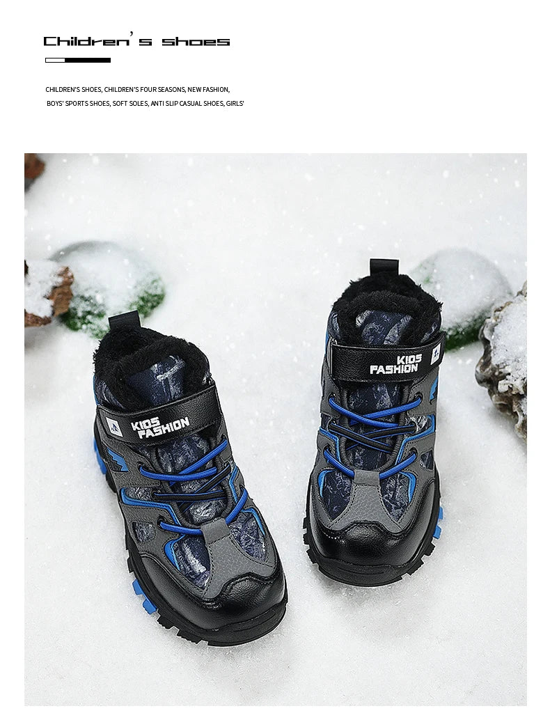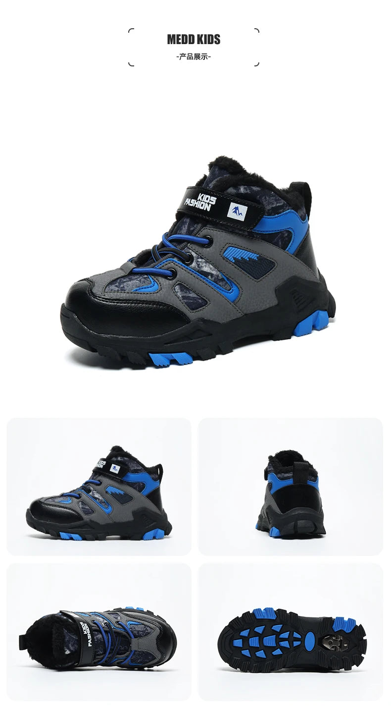 Winter Fur Hiking Shoes Kids Non-slip Claw Sports Shoes Outdoor Warm Velvet Snow Boots Children High Top Platform Sneakers Boys