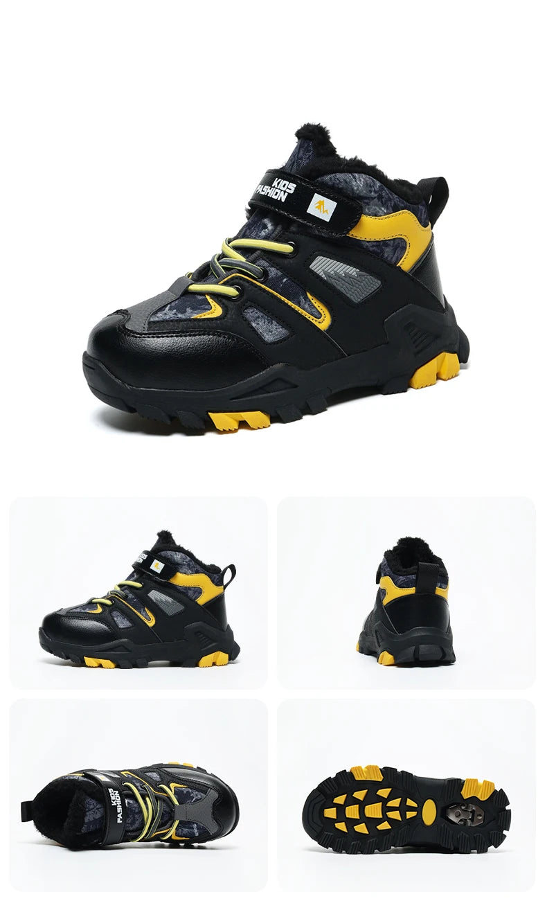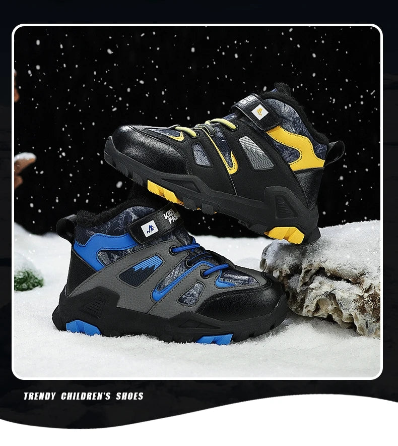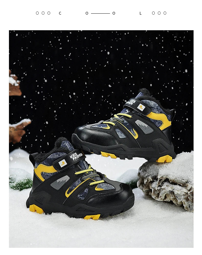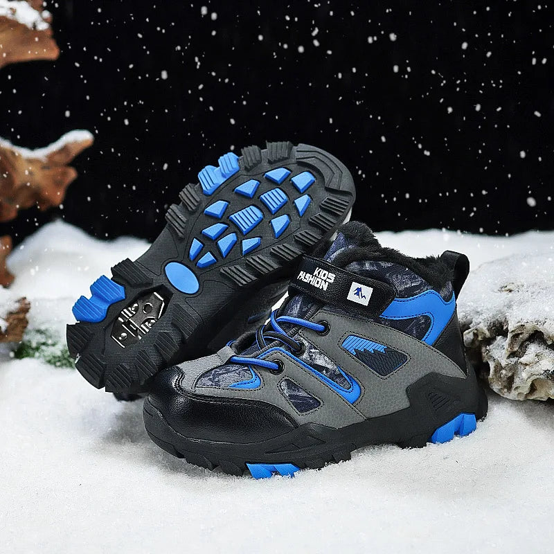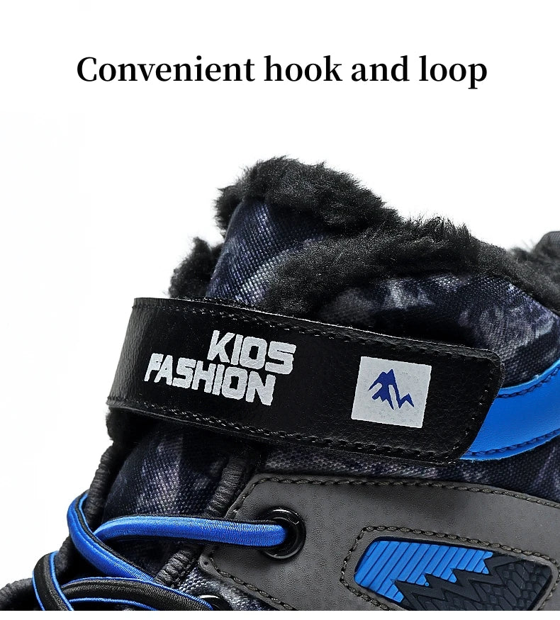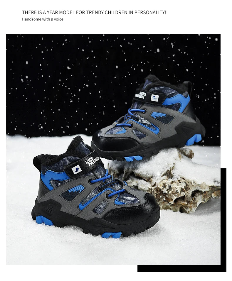 Winter Fur Hiking Shoes Kids Non-slip Claw Sports Shoes Outdoor Warm Velvet Snow Boots Children High Top Platform Sneakers Boys