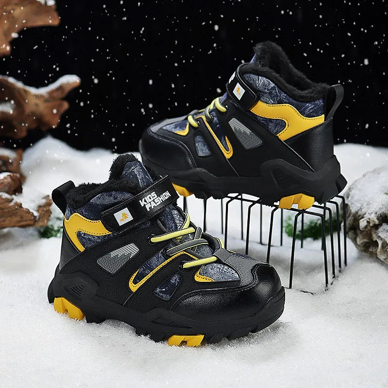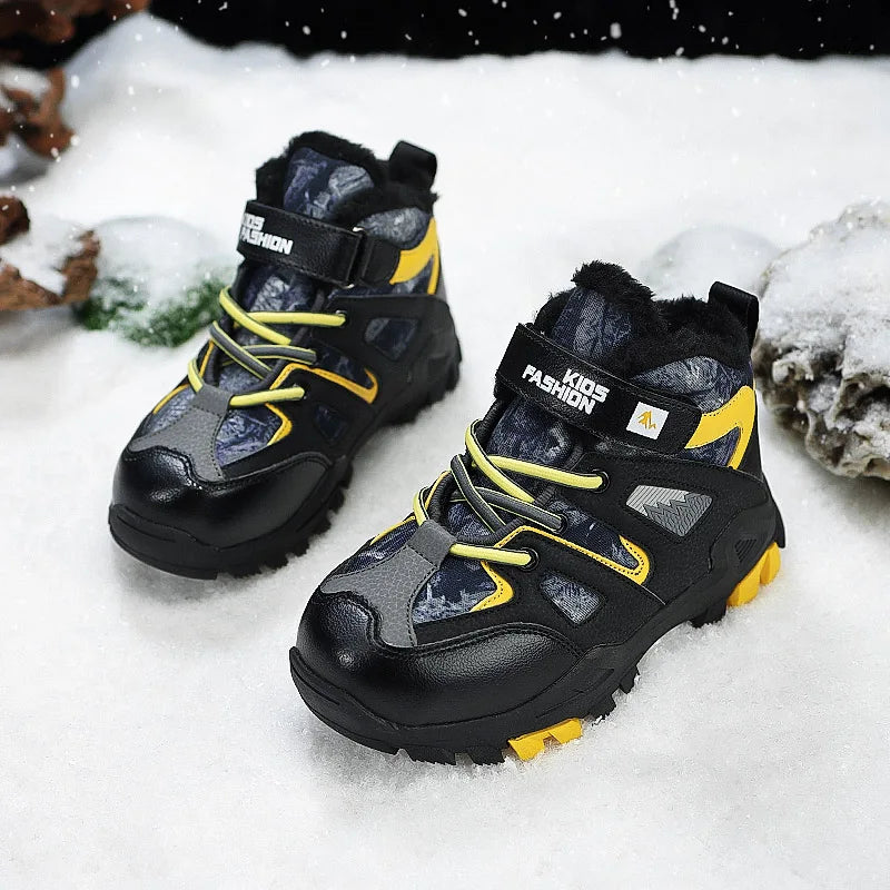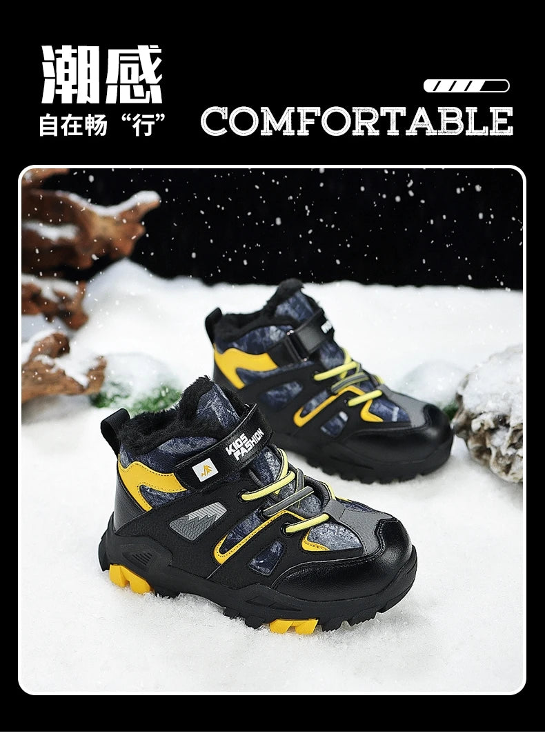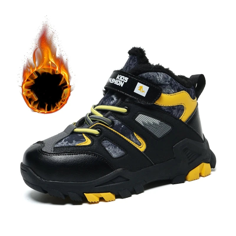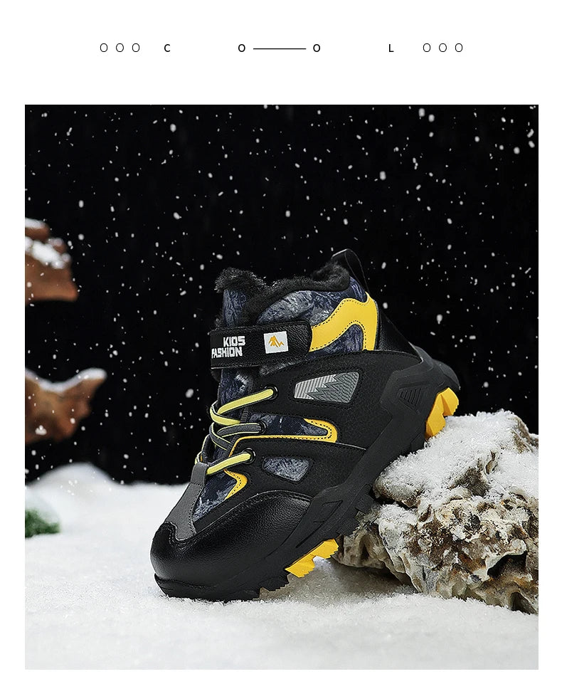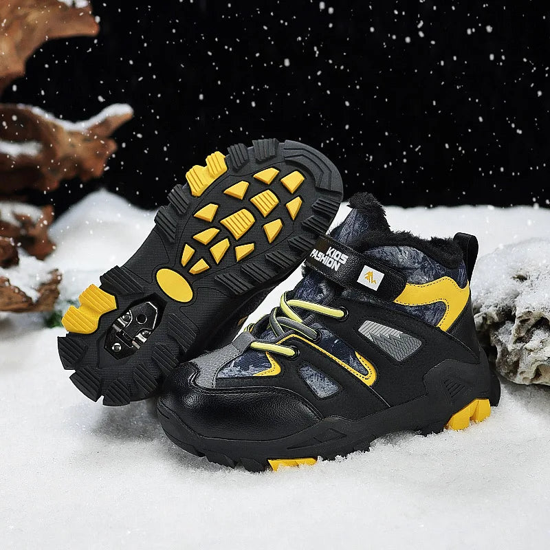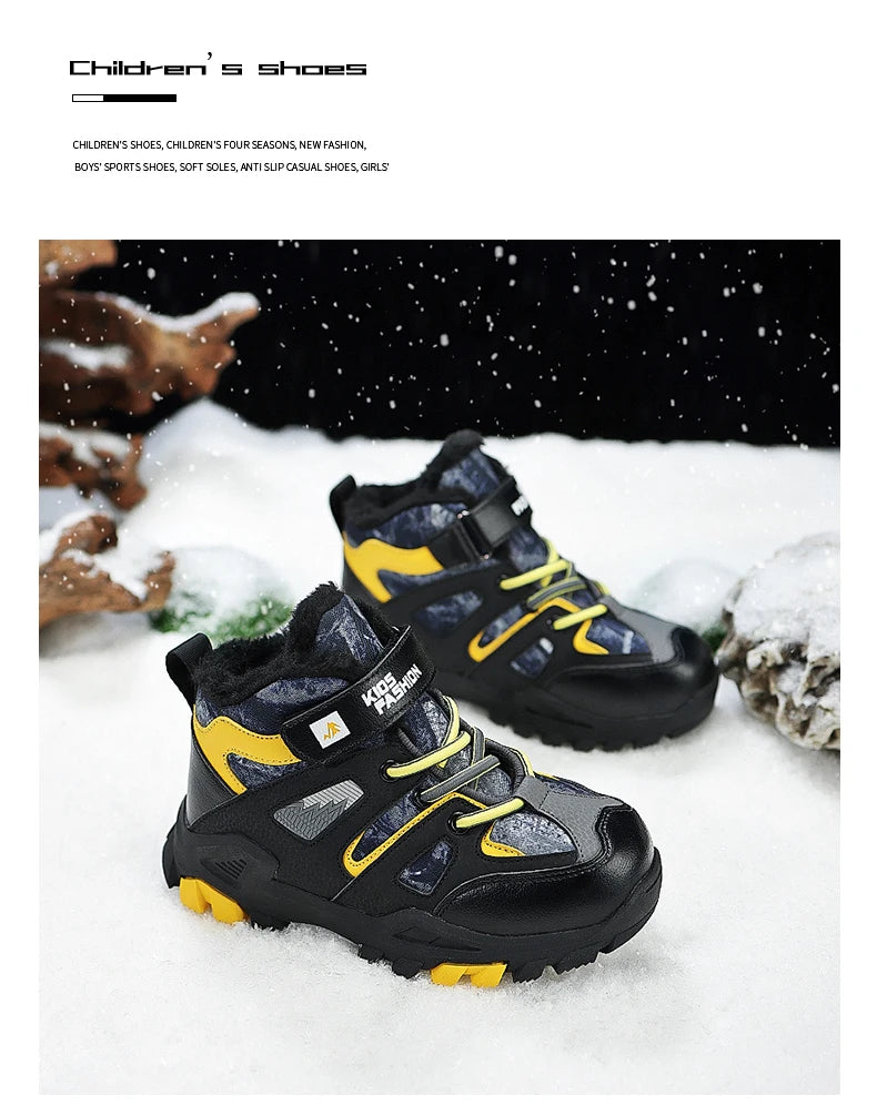 Winter Fur Hiking Shoes Kids Non-slip Claw Sports Shoes Outdoor Warm Velvet Snow Boots Children High Top Platform Sneakers Boys