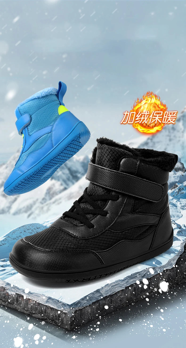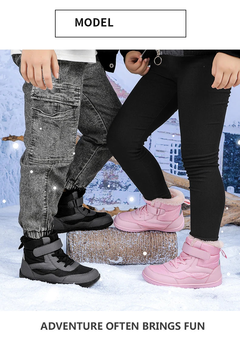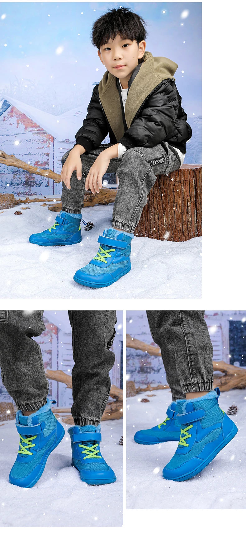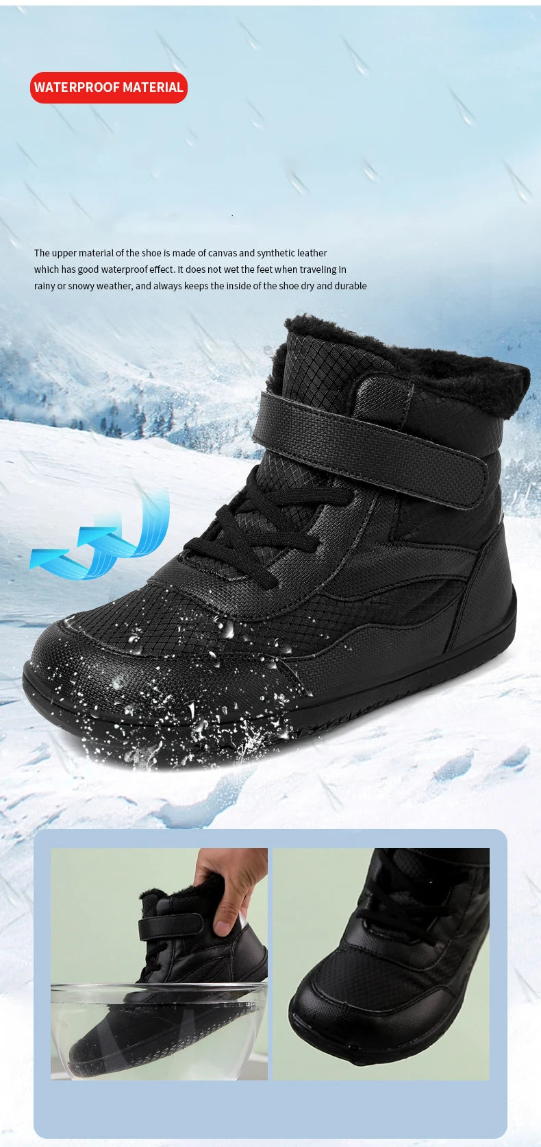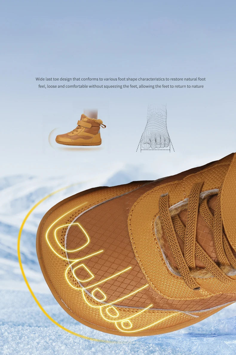 Winter Kids Wide Toe Barefoot Shoes Waterproof Snow Boots Outdoor Girls' Boy Comfortable and Warm Fur Snow Hiking Boot Warm Boot