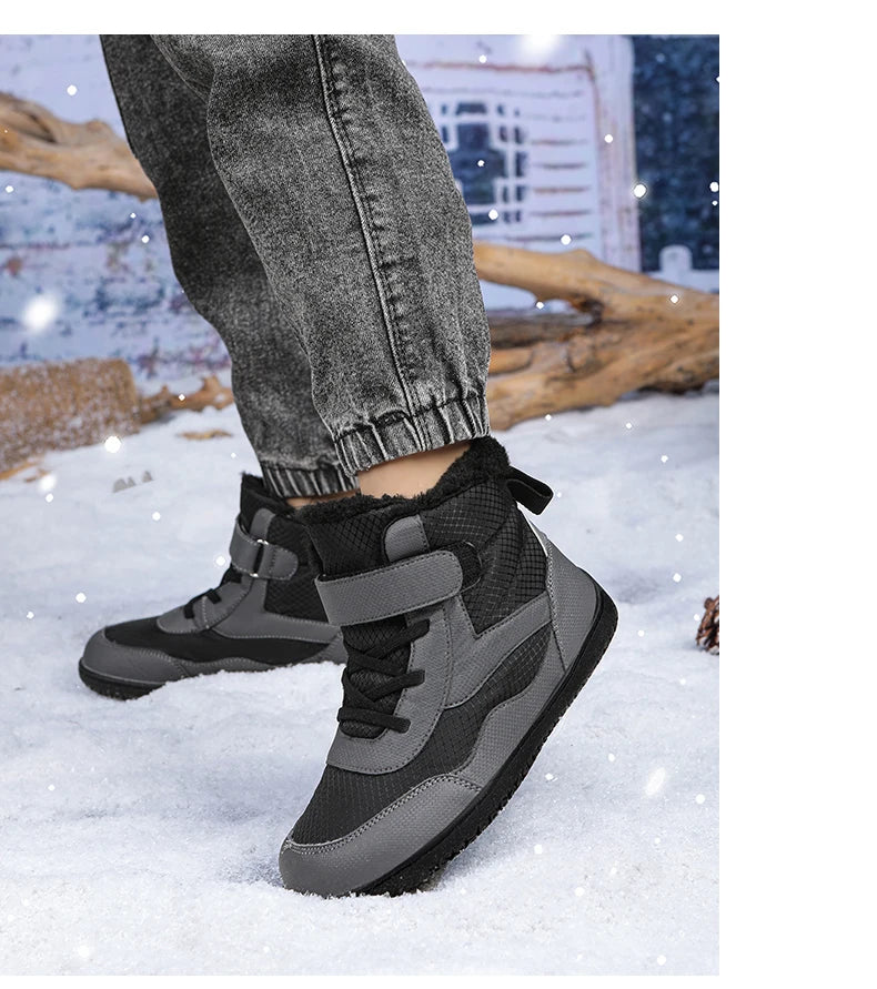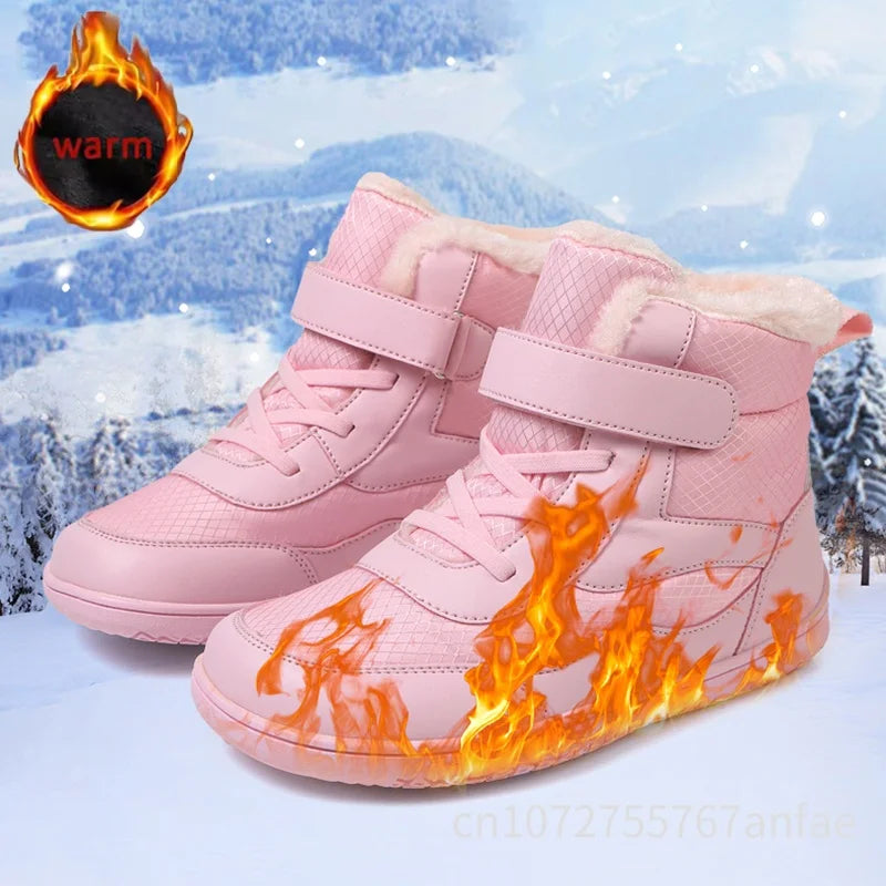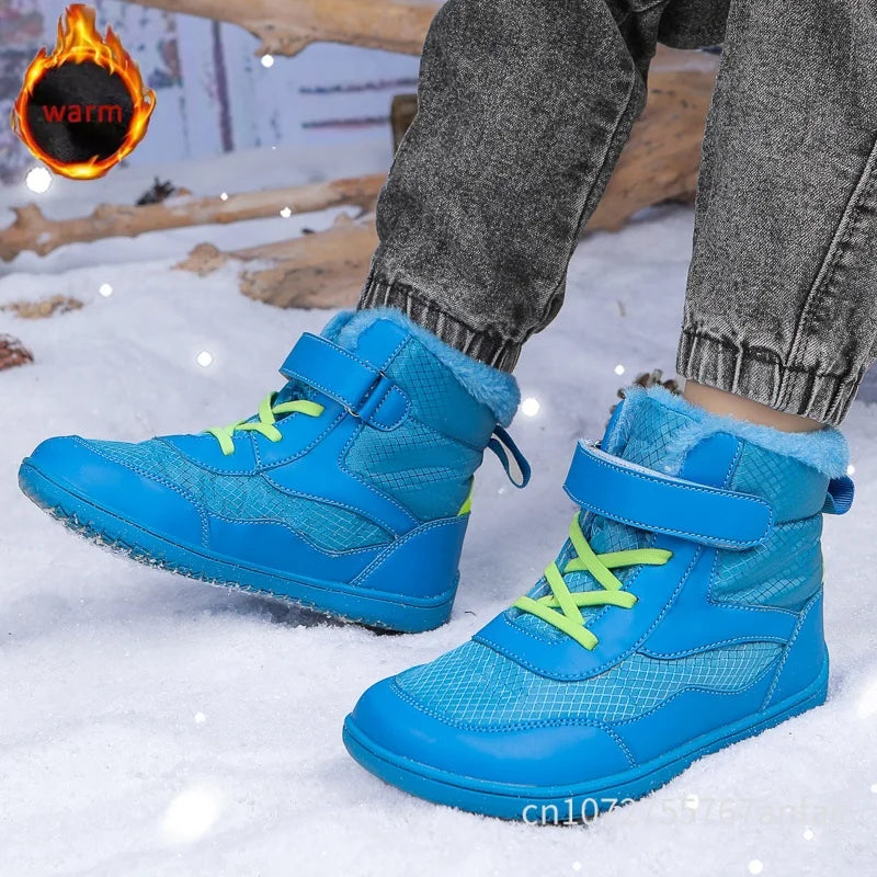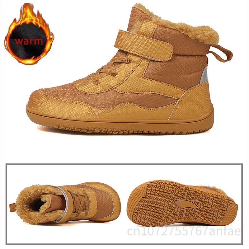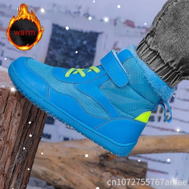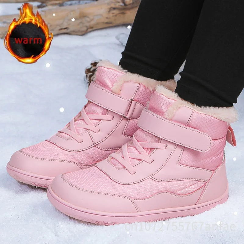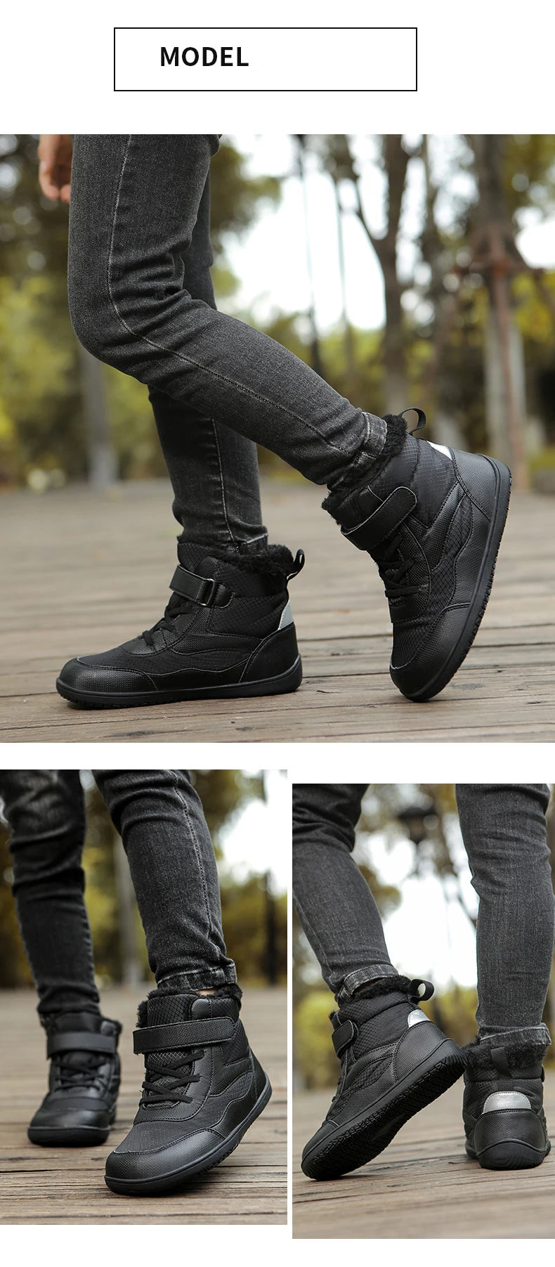 Winter Kids Wide Toe Barefoot Shoes Waterproof Snow Boots Outdoor Girls' Boy Comfortable and Warm Fur Snow Hiking Boot Warm Boot