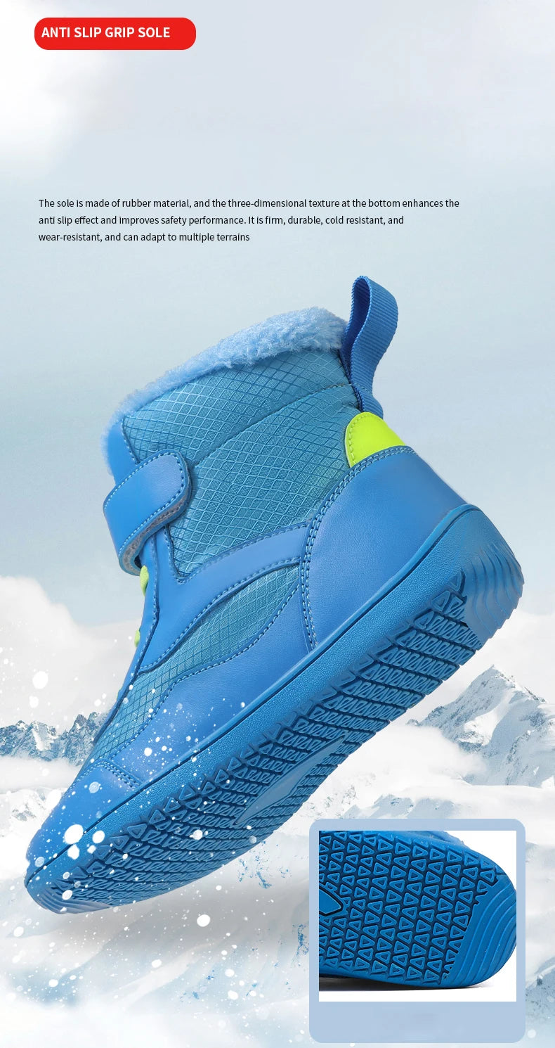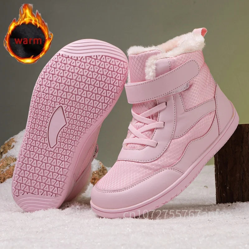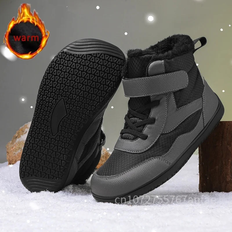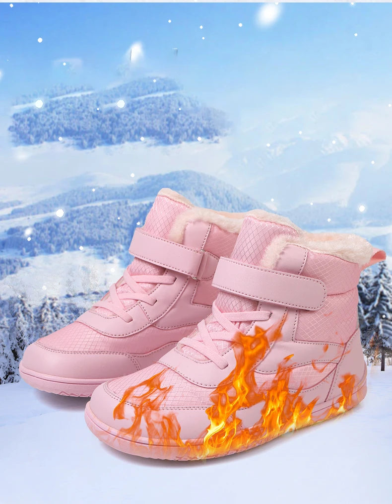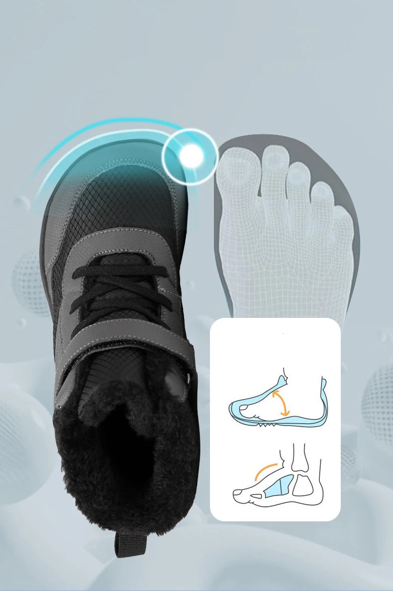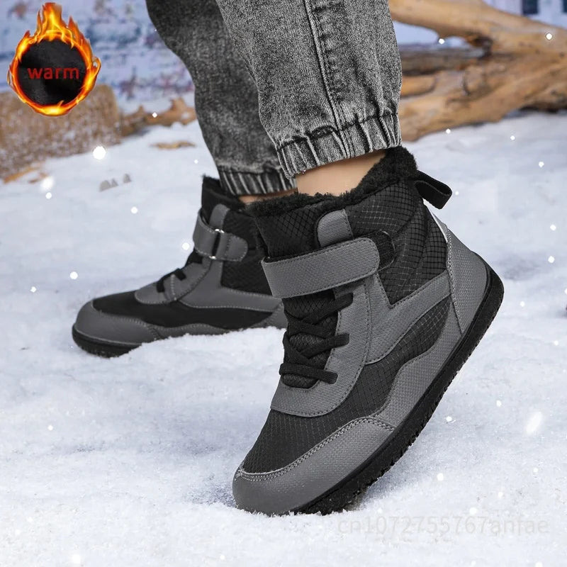 Winter Kids Wide Toe Barefoot Shoes Waterproof Snow Boots Outdoor Girls' Boy Comfortable and Warm Fur Snow Hiking Boot Warm Boot