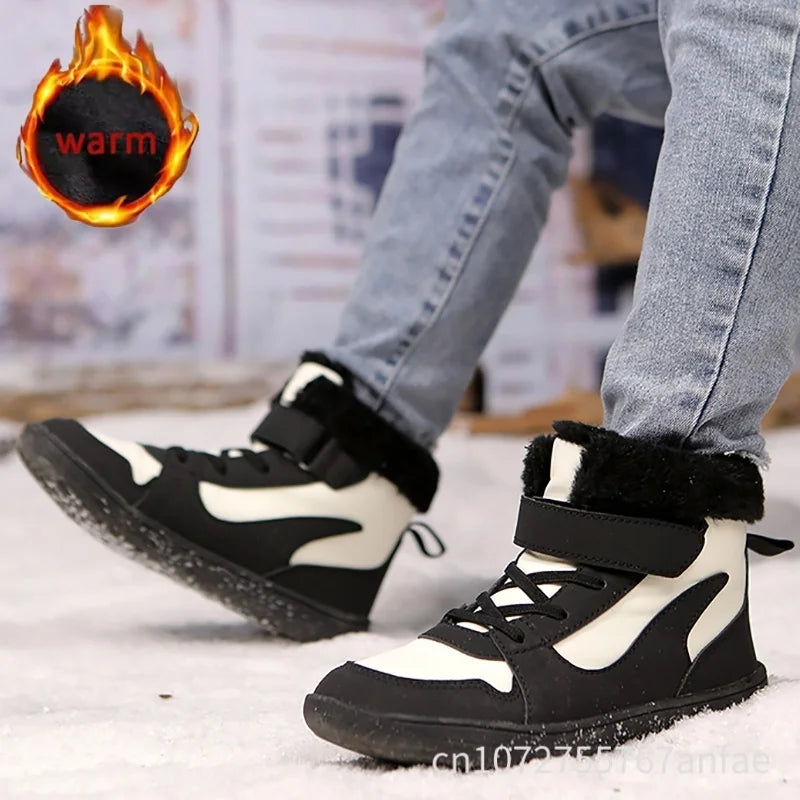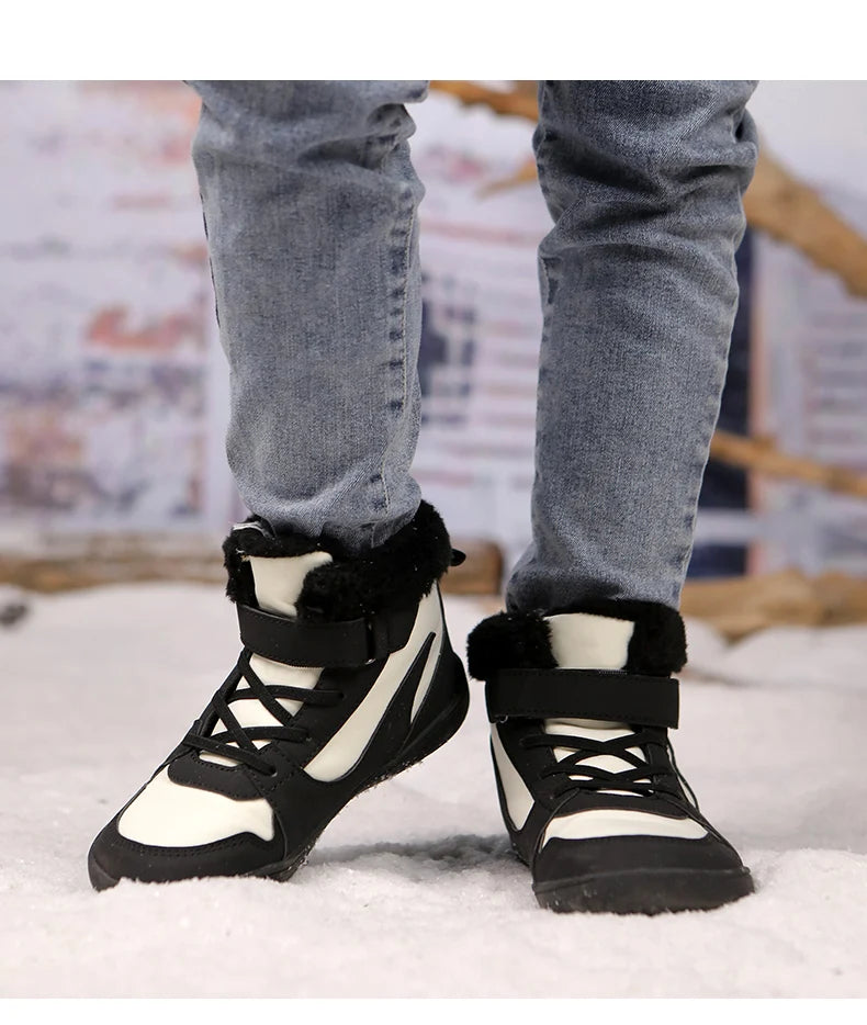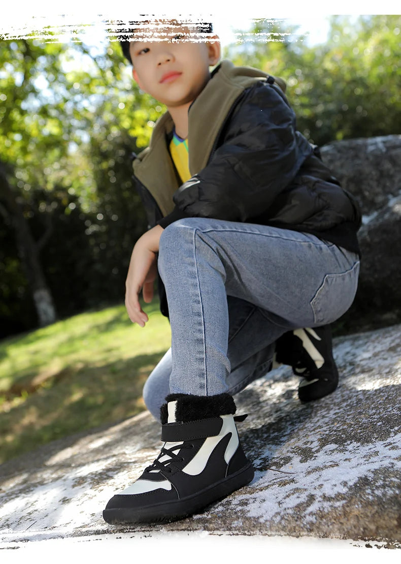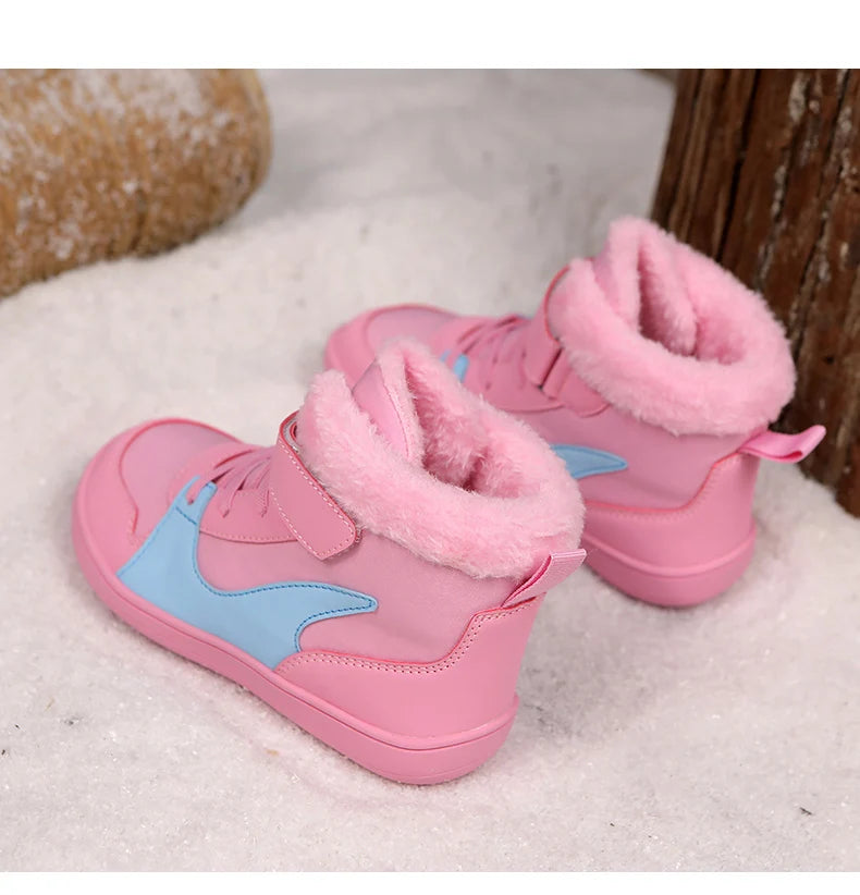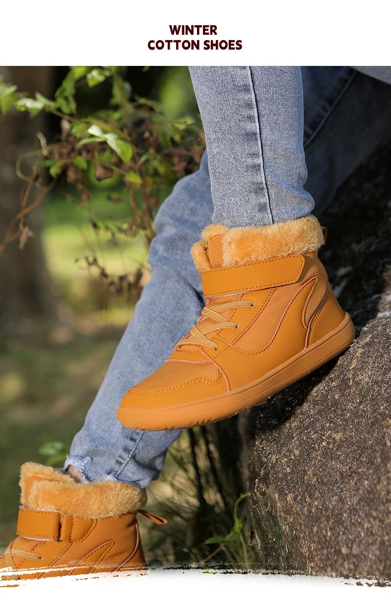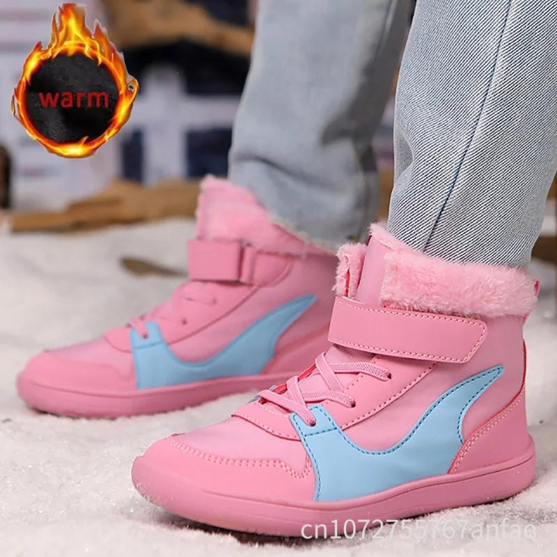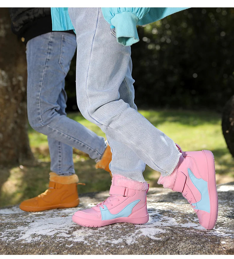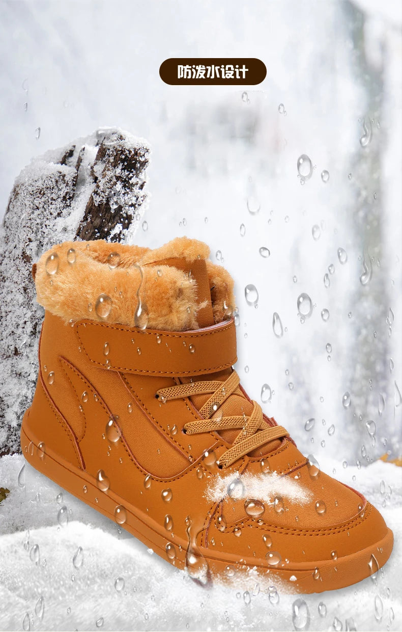 Winter Kids Wide Toe Barefoot Snow Boots Outdoor Waterproof Anti-slip Hiking Shoes Thickened Warm Plush Boots Comfortable