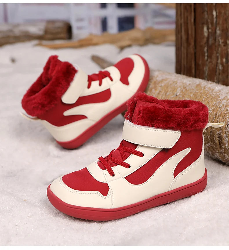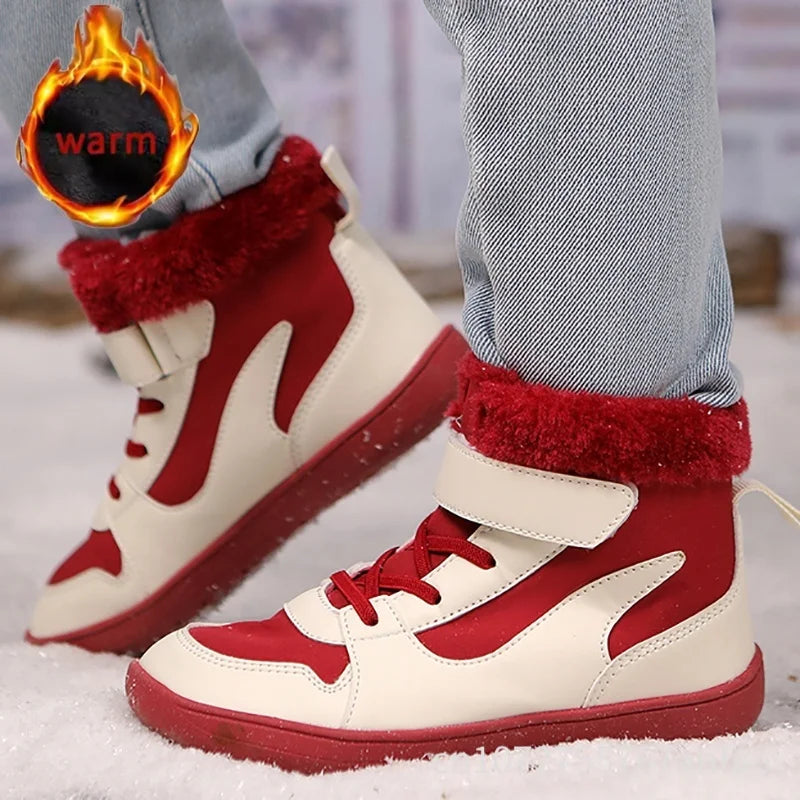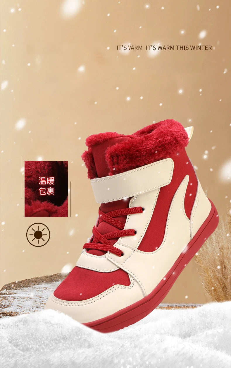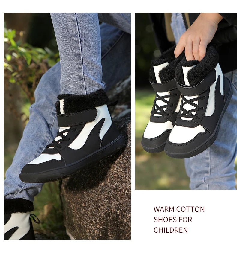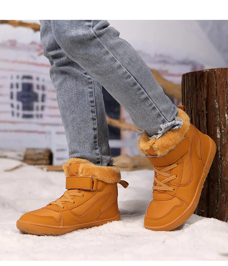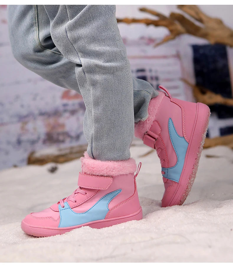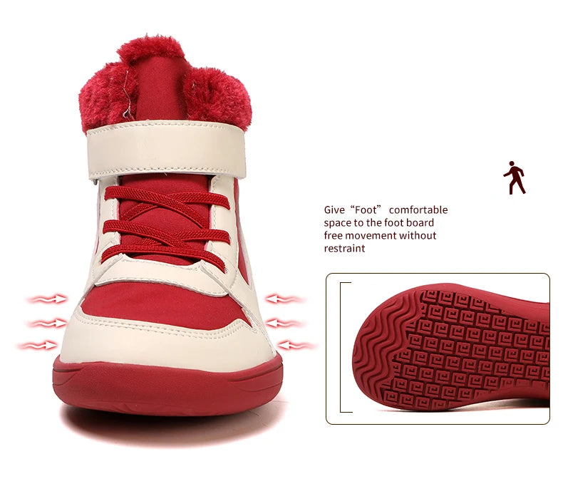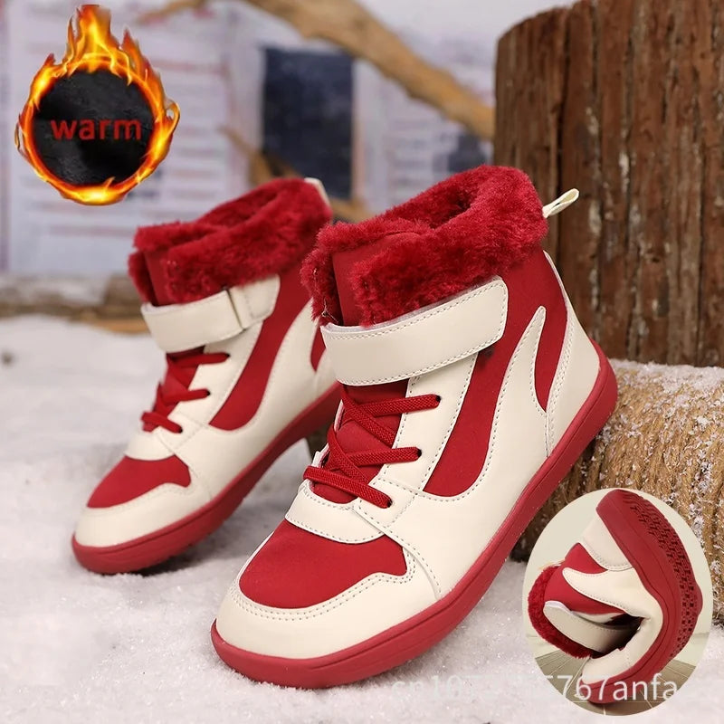 Winter Kids Wide Toe Barefoot Snow Boots Outdoor Waterproof Anti-slip Hiking Shoes Thickened Warm Plush Boots Comfortable