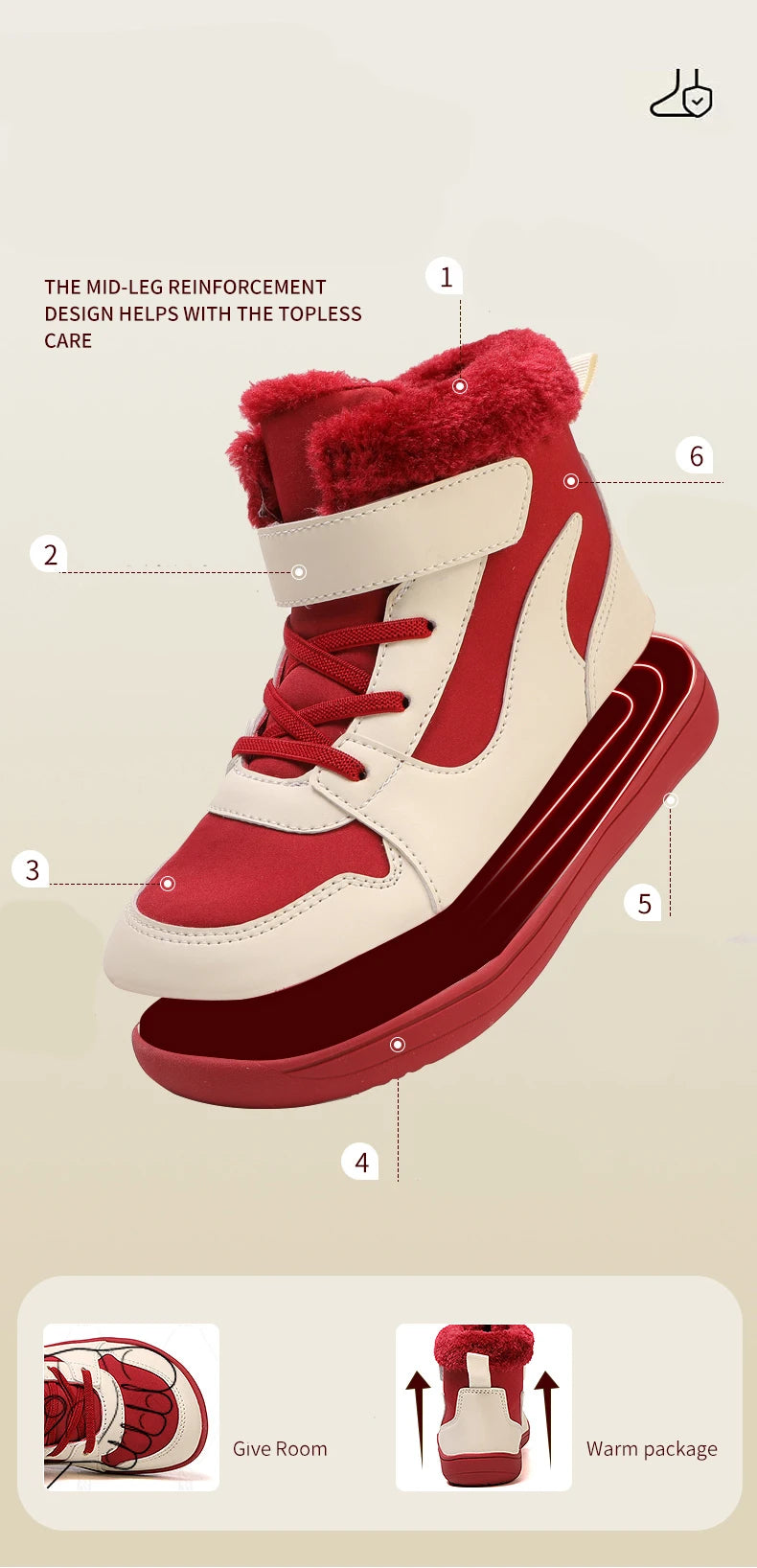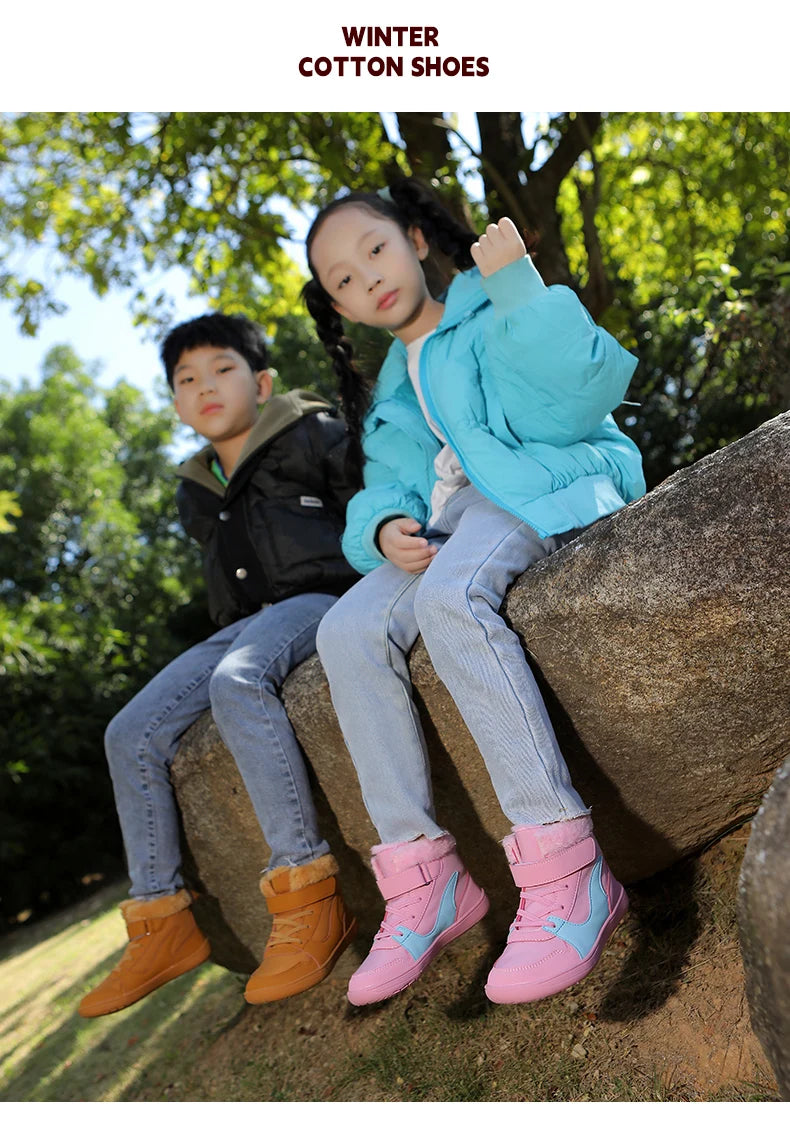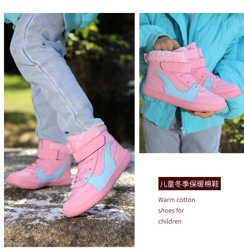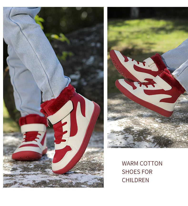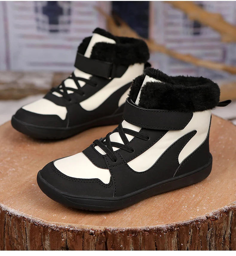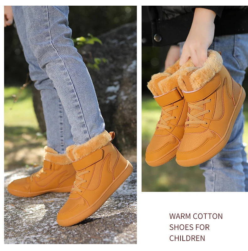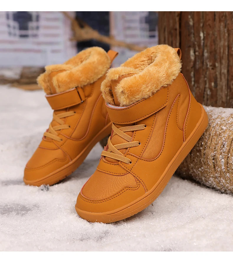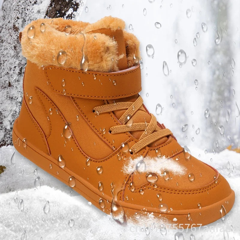 Winter Kids Wide Toe Barefoot Snow Boots Outdoor Waterproof Anti-slip Hiking Shoes Thickened Warm Plush Boots Comfortable