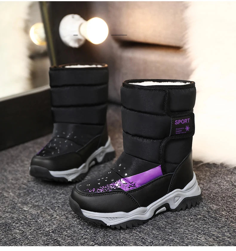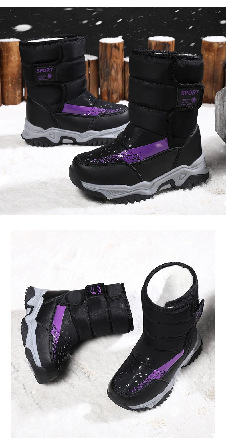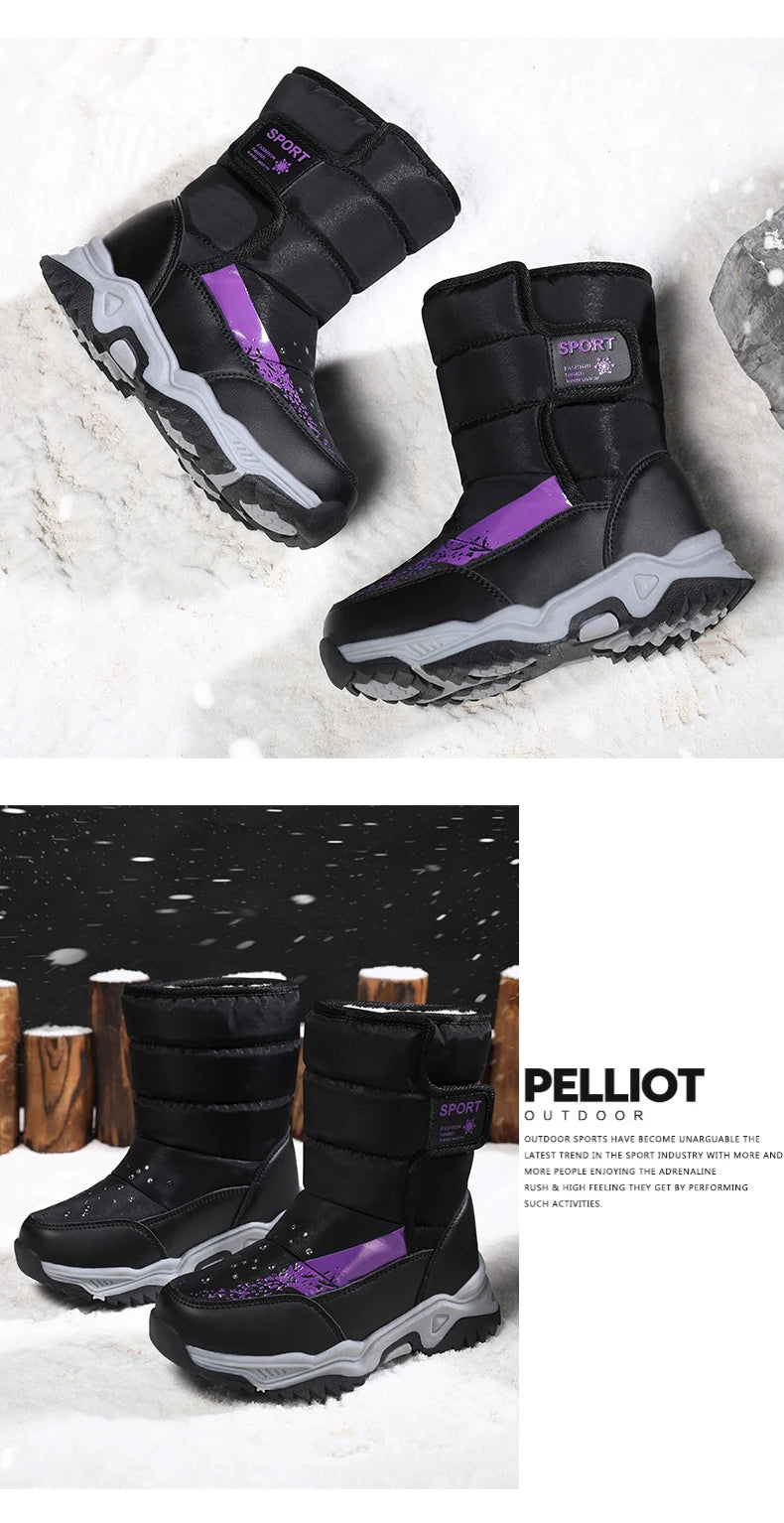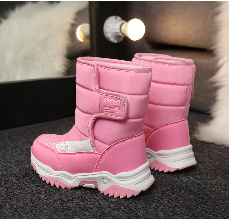 Winter Outdoor Children Boots Princess Elegant Girls Shoes Water Proof Girl Boy Snow Boots Kids Warm High Quality Plush Boots